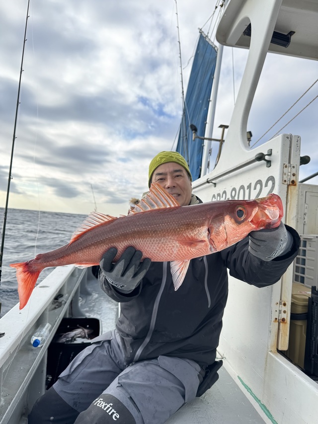 (マエソ)30cm 合計1匹 12/17午前近海スロー船 流れの良い間は反応に入ると ムツやカンコ、オニ、ヒメダイ、沖メバル などヒットあり! マハタらしきデカヒットもありましたが 惜しくもブレイクでした 後半は二枚潮キツくなりアタリ 失速してしまいました 良い流れに期待して次回もデカイの狙って いきましょう!
