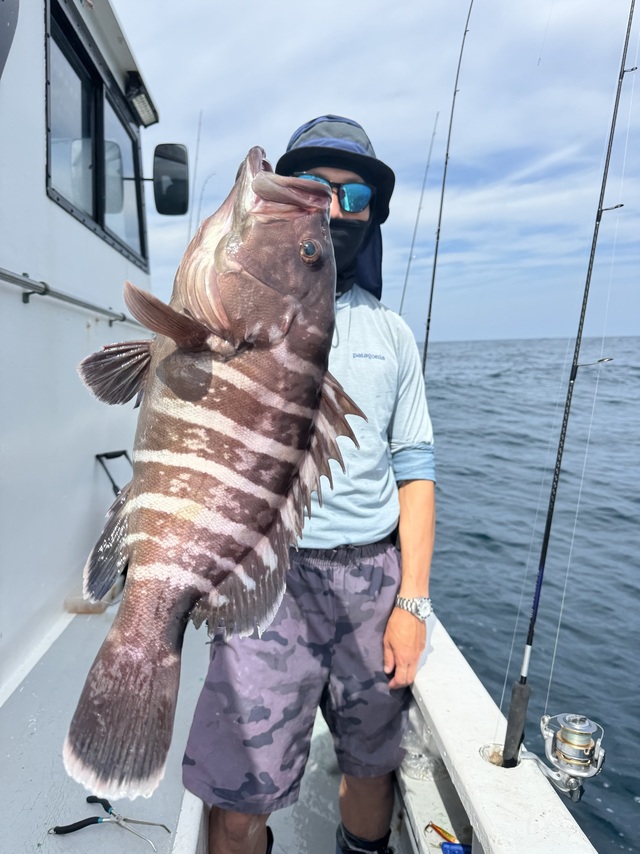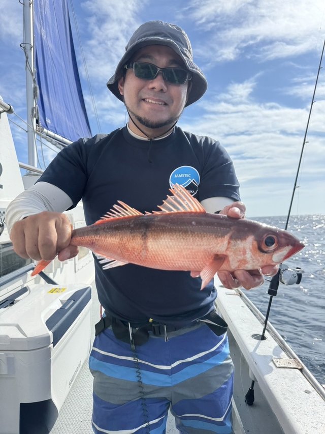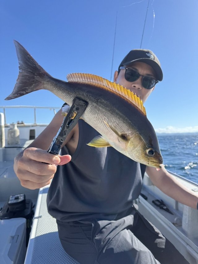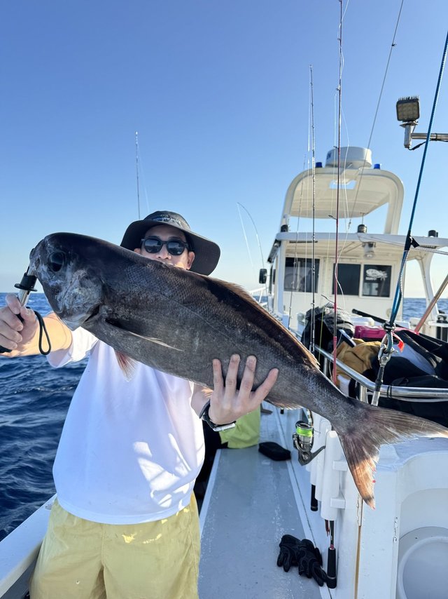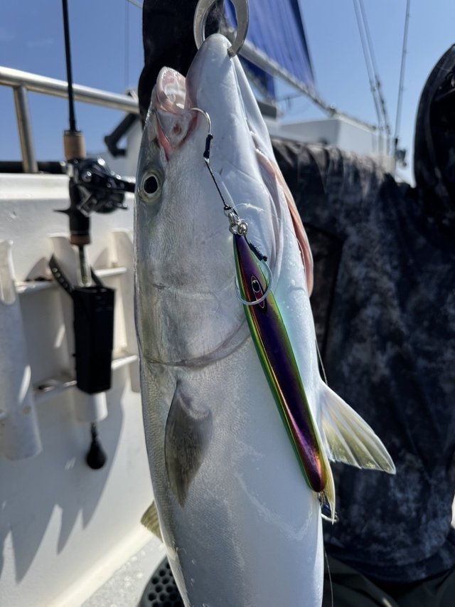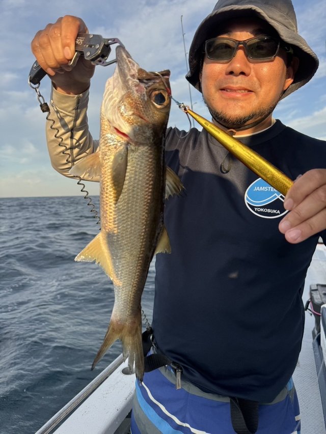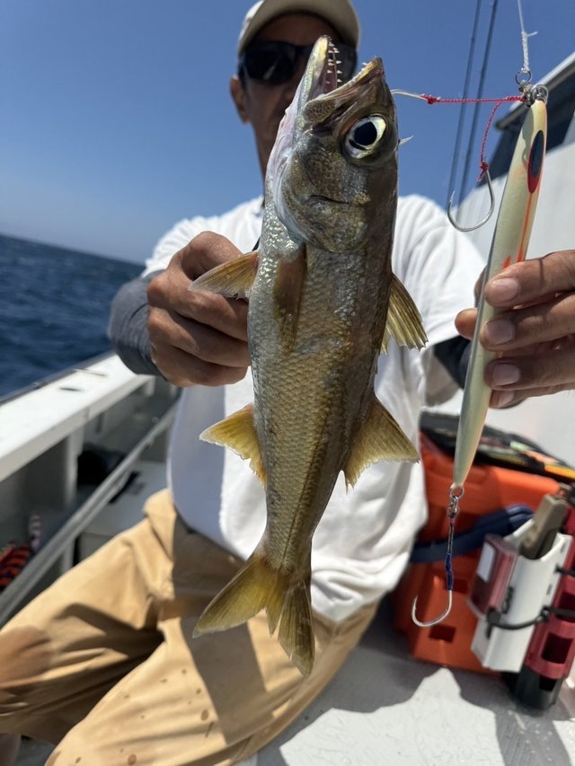(マエソ)30cm 合計1匹 8/8近海スロー船 潮動かず活性も上がりきらない感じでしたがムツにウッカリ、ハチビキと! 途中大型ヒットしましたが惜しくも バラシでした 潮が流れなかったり速かったりと毎日状況が違いますのでジグウエイトは幅広くご準備お願い致します! 明日9日(土) 午後テンヤルアー船空席多数