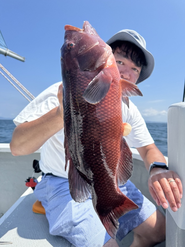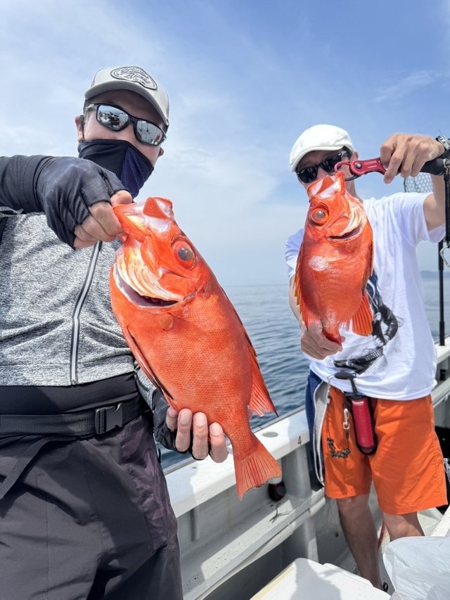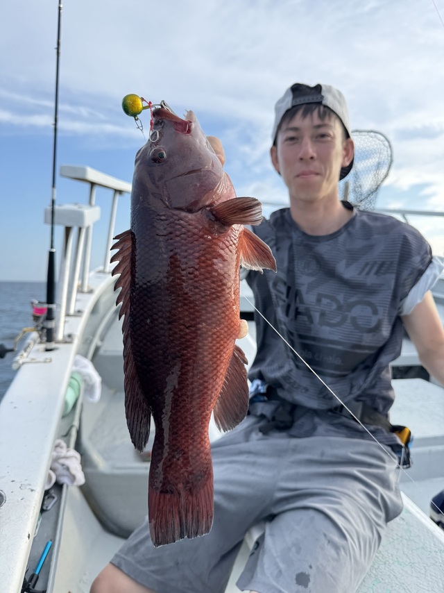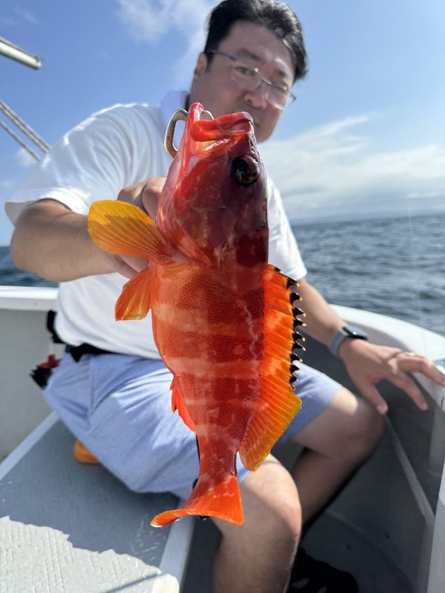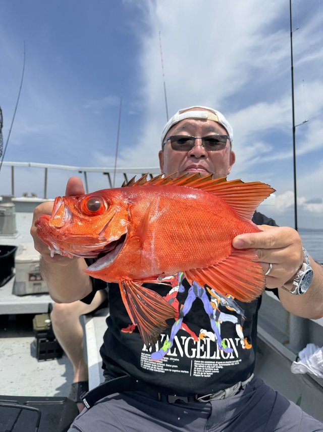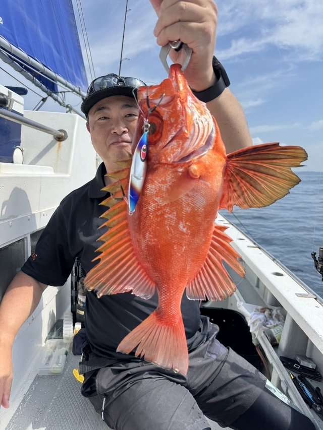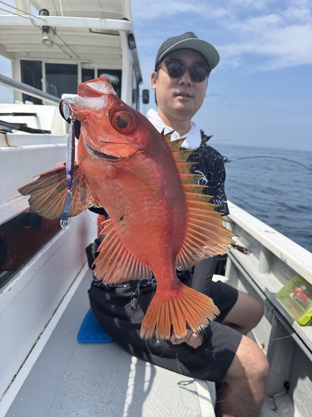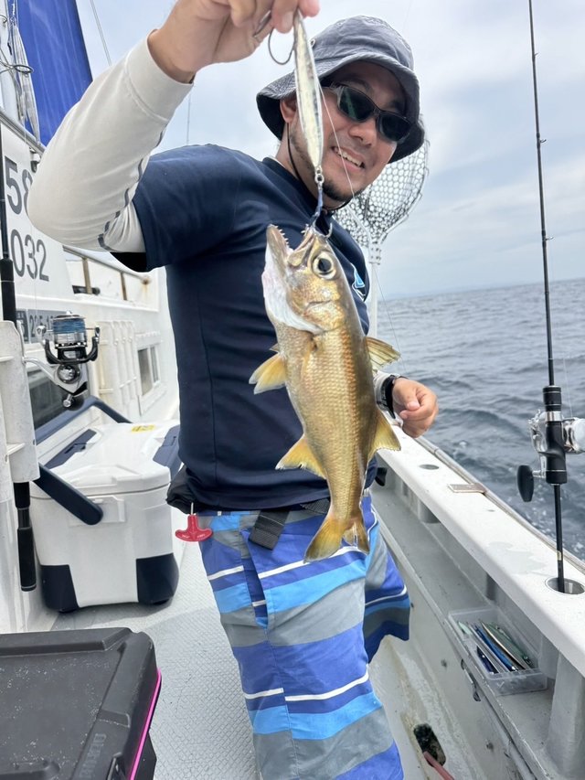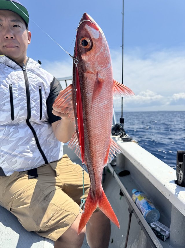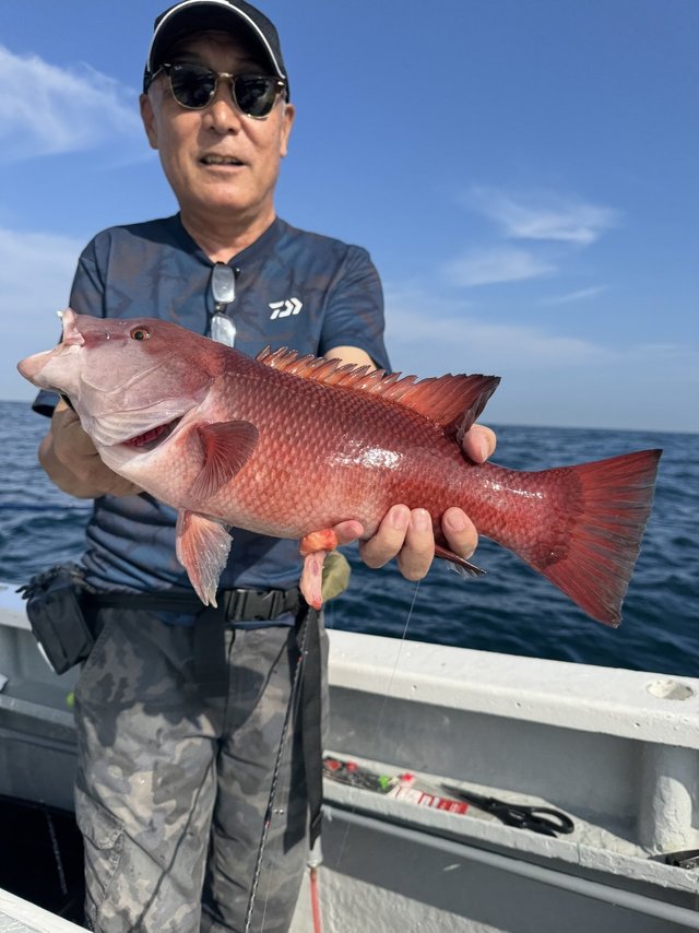 (マエソ)30cm 合計1匹 8/9テンヤルアー船 開始からカサゴアカハタがポツポツと顔見せてキジハタもキャッチ!! 途中青物のナブラもありましたが 移動が速くノーヒットでした! ポイント転々としながら キントキの群れに当たりバタバタとヒットしたタイミングも! 活性あがって 良型のマハタも浮上しました!! 明日10日(日)はシケ予報の為中止に! 11日12日も予報次第になります。 13日~15日は定休とお盆お休みです。 16日(土) 午前テンヤルアー船満席 午後テンヤルアー船受付中 17日(日) 午前近海スロー船空席多数 午前テンヤルアー船空席多数 18日(月) 午前テンヤルアー船空席多数 19日~23日まで地域祭礼休みになります。 24日(日) 午前近海スロー船空席多数 午前テンヤルアー船空席多数