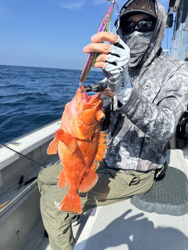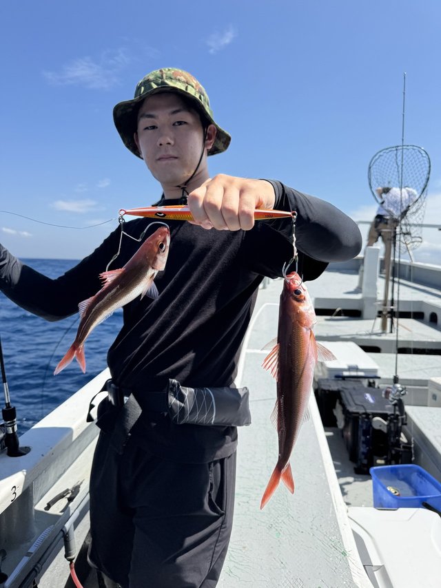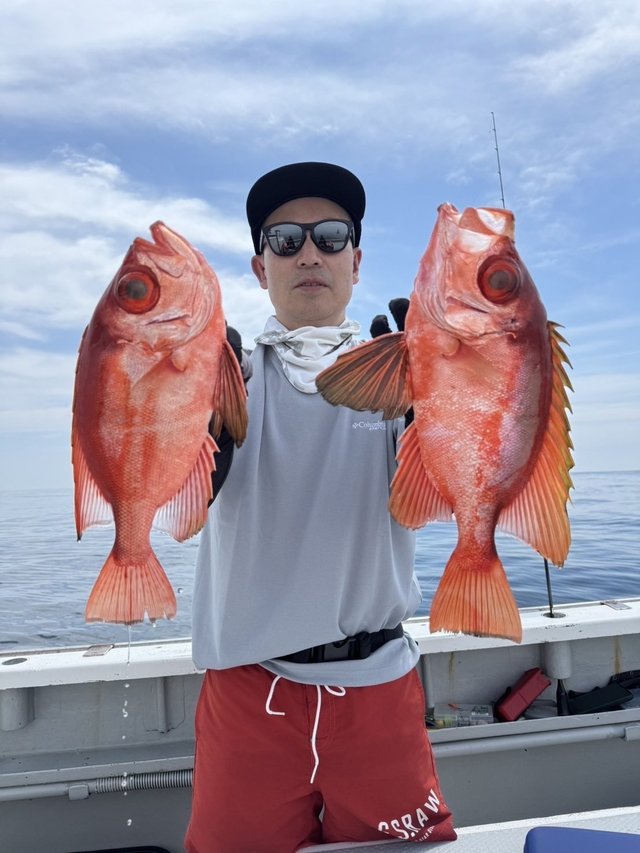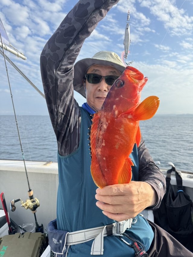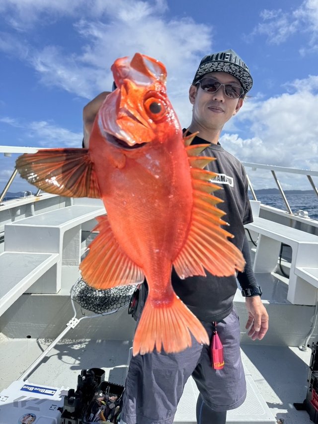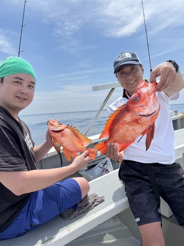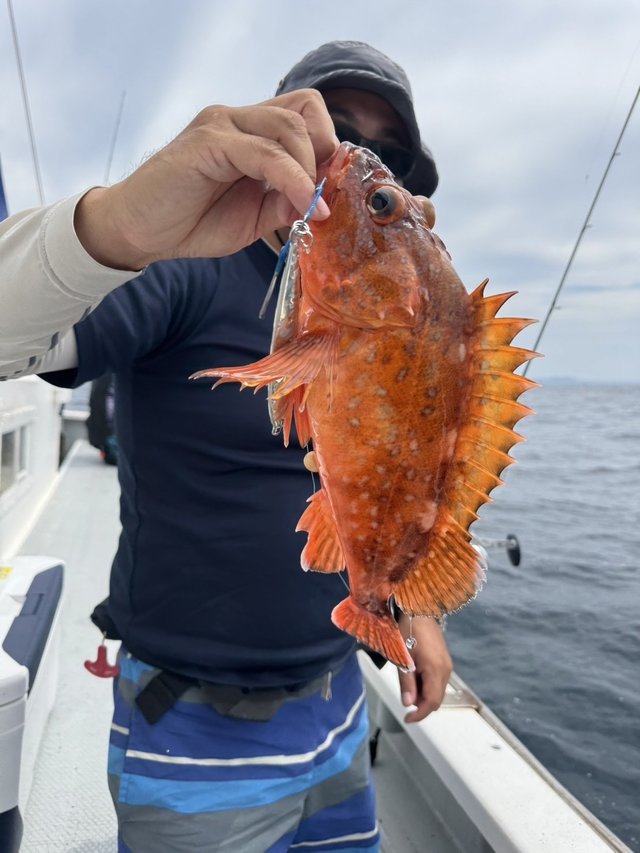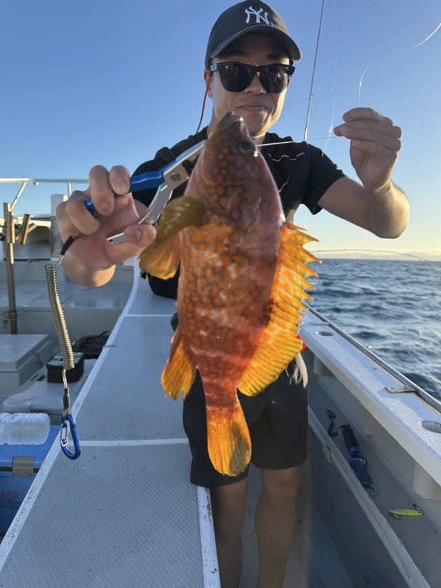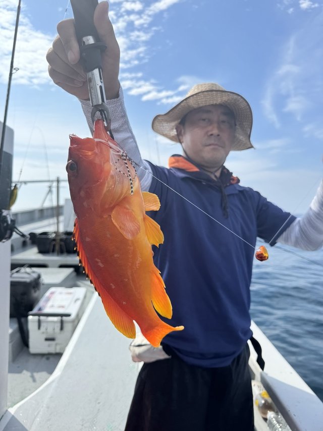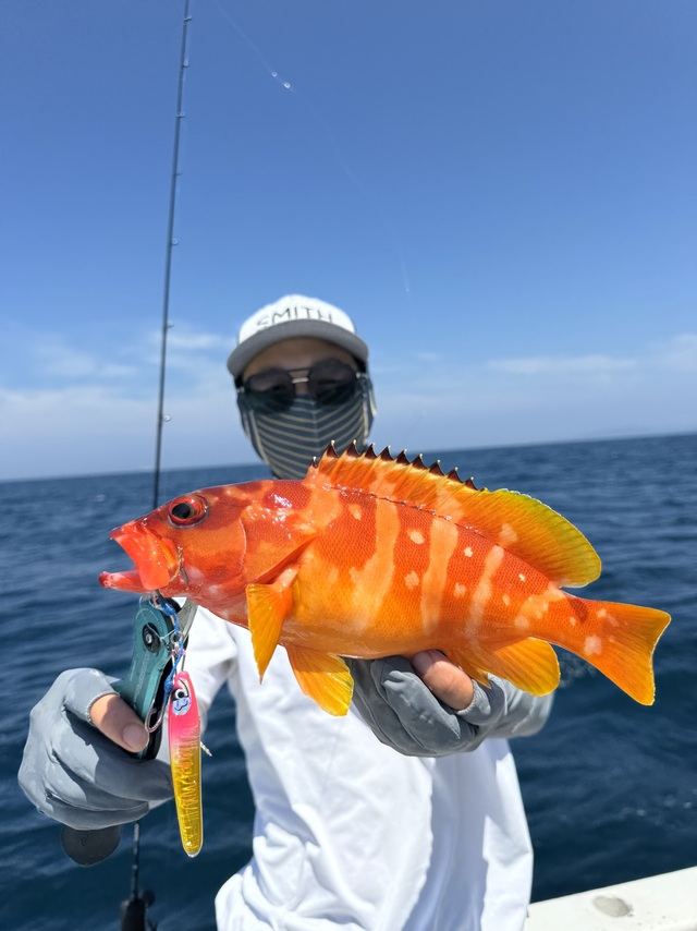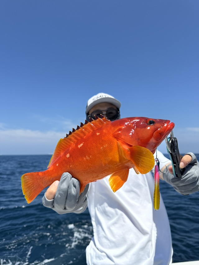(マエソ)30cm 合計1匹 8/9テンヤルアー船 開始からカサゴアカハタがポツポツと顔見せてキジハタもキャッチ!! 途中青物のナブラもありましたが 移動が速くノーヒットでした! ポイント転々としながら キントキの群れに当たりバタバタとヒットしたタイミングも! 活性あがって 良型のマハタも浮上しました!! 明日10日(日)はシケ予報の為中止に! 11日12日も予報次第になります。 13日~15日は定休とお盆お休みです。 16日(土) 午前テンヤルアー船満席 午後テンヤルアー船受付中 17日(日) 午前近海スロー船空席多数 午前テンヤルアー船空席多数 18日(月) 午前テンヤルアー船空席多数 19日~23日まで地域祭礼休みになります。 24日(日) 午前近海スロー船空席多数 午前テンヤルアー船空席多数
