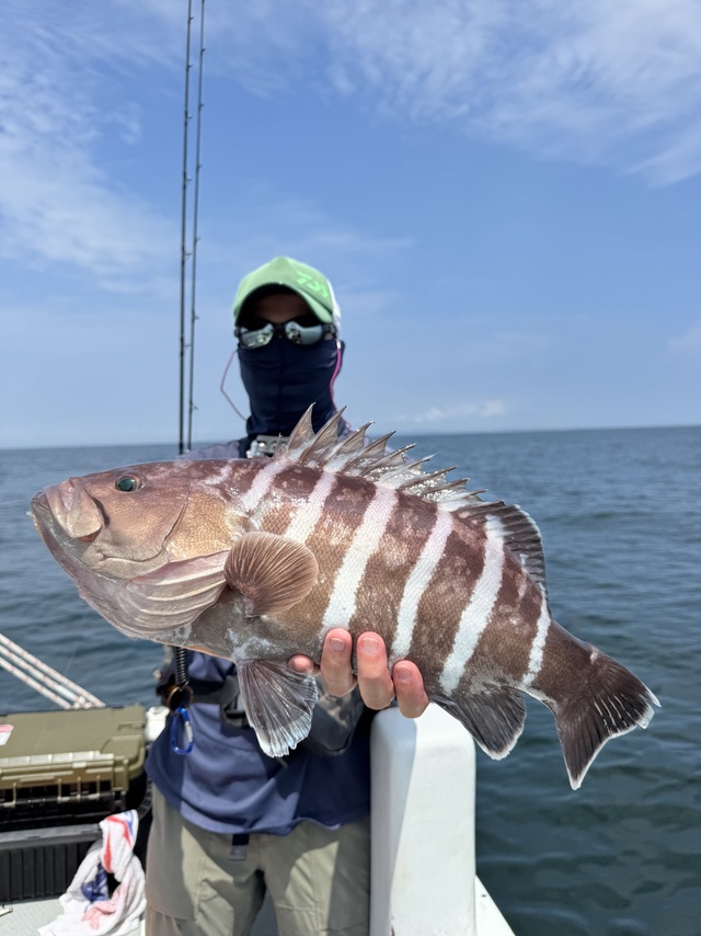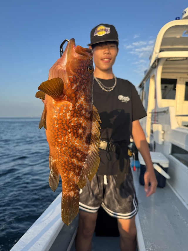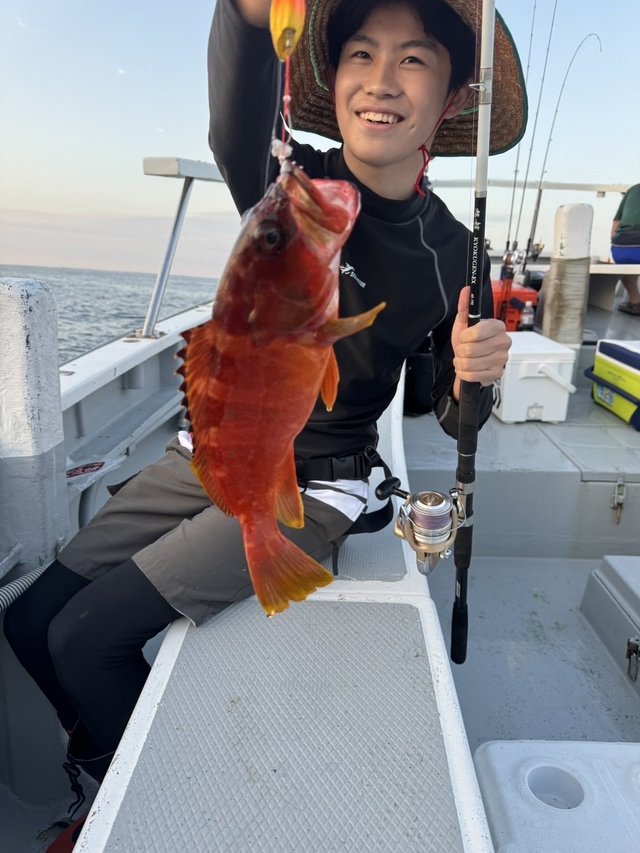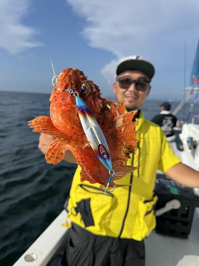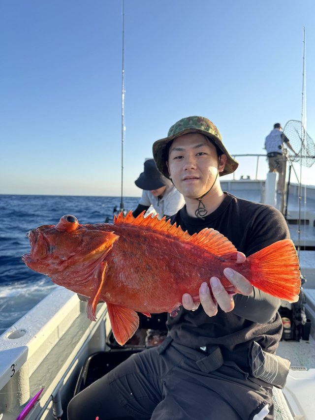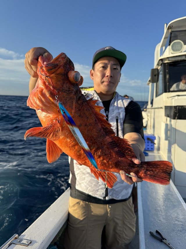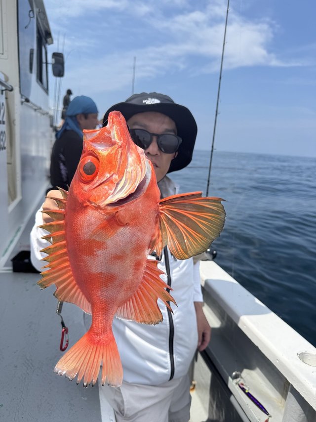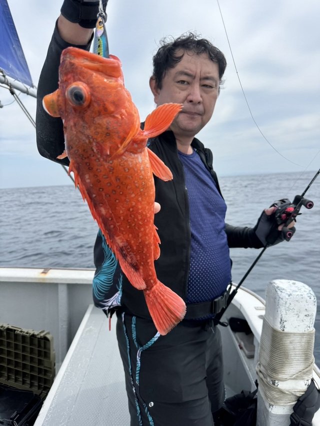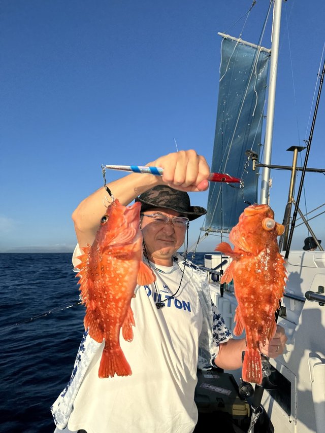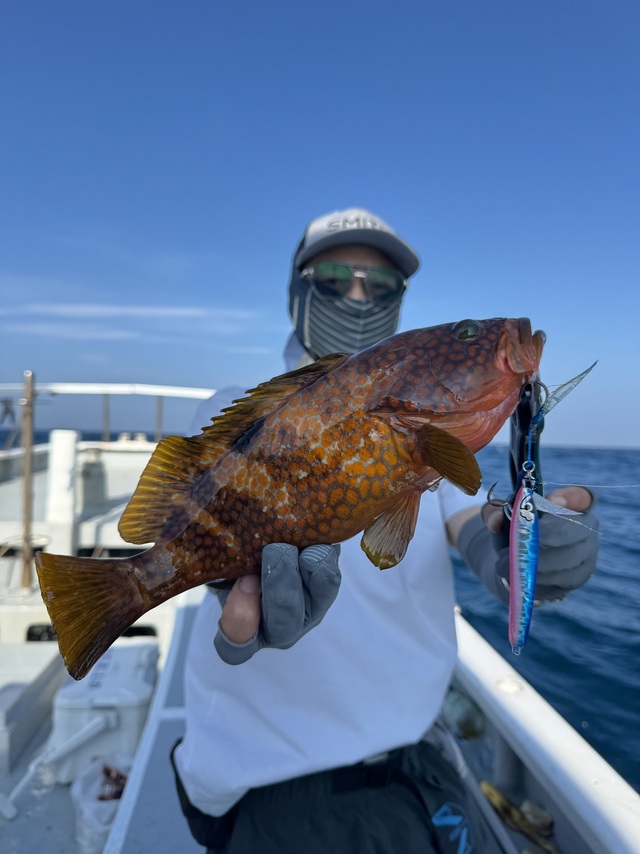 (マエソ)30cm 合計1匹 8/9テンヤルアー船 開始からカサゴアカハタがポツポツと顔見せてキジハタもキャッチ!! 途中青物のナブラもありましたが 移動が速くノーヒットでした! ポイント転々としながら キントキの群れに当たりバタバタとヒットしたタイミングも! 活性あがって 良型のマハタも浮上しました!! 明日10日(日)はシケ予報の為中止に! 11日12日も予報次第になります。 13日~15日は定休とお盆お休みです。 16日(土) 午前テンヤルアー船満席 午後テンヤルアー船受付中 17日(日) 午前近海スロー船空席多数 午前テンヤルアー船空席多数 18日(月) 午前テンヤルアー船空席多数 19日~23日まで地域祭礼休みになります。 24日(日) 午前近海スロー船空席多数 午前テンヤルアー船空席多数