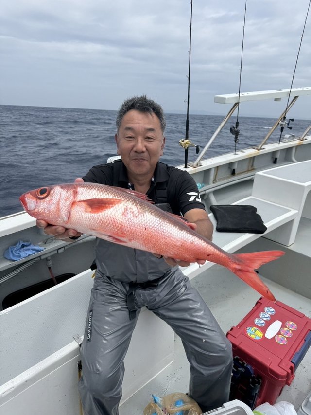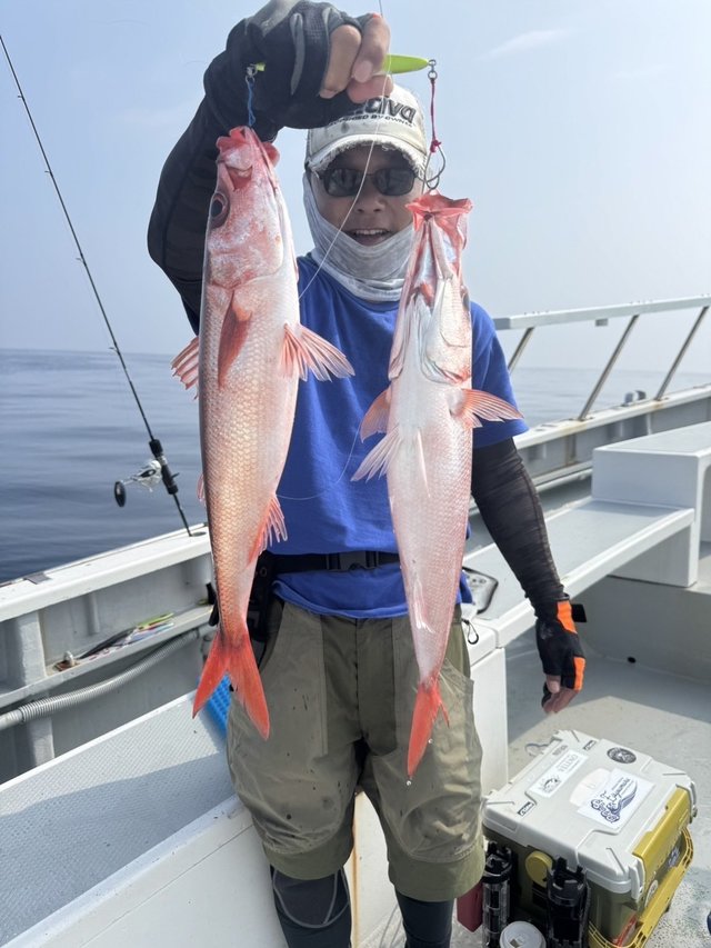 (マエソ)30cm 合計1匹 7/12近海スロー船 曇り空で涼しい1日でした! 今日も沖へチャレンジ! 潮緩く反応も良し! 転々と周りながら時折船中アタリも連発にラッシュあり! メダイにウッカリ、ムツ多数、キントキ、 アヤメ、ハチビキ、マトウダイなど多彩にキャッチ! これからも期待です! 明日13日(日)は テンヤルアー船のみ出船します!