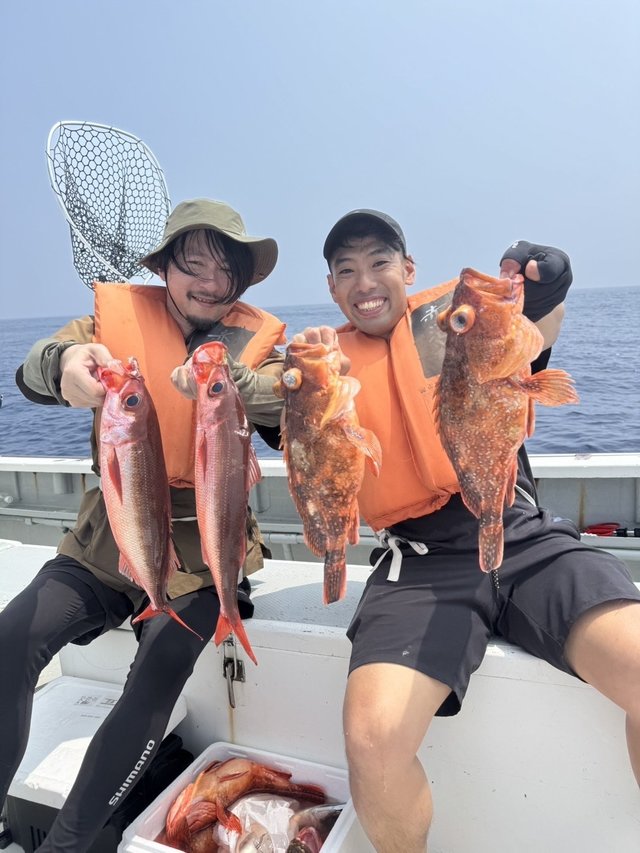 7/18近海スロー船 スロー船久しぶりの出船になりました! 潮の動かない1日でポイントを転々としながら周りました! 反応に当たるとムツ筆頭にハチビキなど パタパタとヒットするタイミングもあり根魚もジャンボサイズ混じりに! マハタやメダイもキャッチできました! 潮も緩くタックルセッティングや しゃくり方でヒットパターンを探っていきましょう! 今週末はスロー船お休みです 来週以降のご予約お待ちしてます! 来週26日土曜日は出船確定で募集中! 明日19日(土) 午後テンヤルアー船空席多数 20日(日) 受付終了 21日(月) 午前テンヤルアー船 空席多数