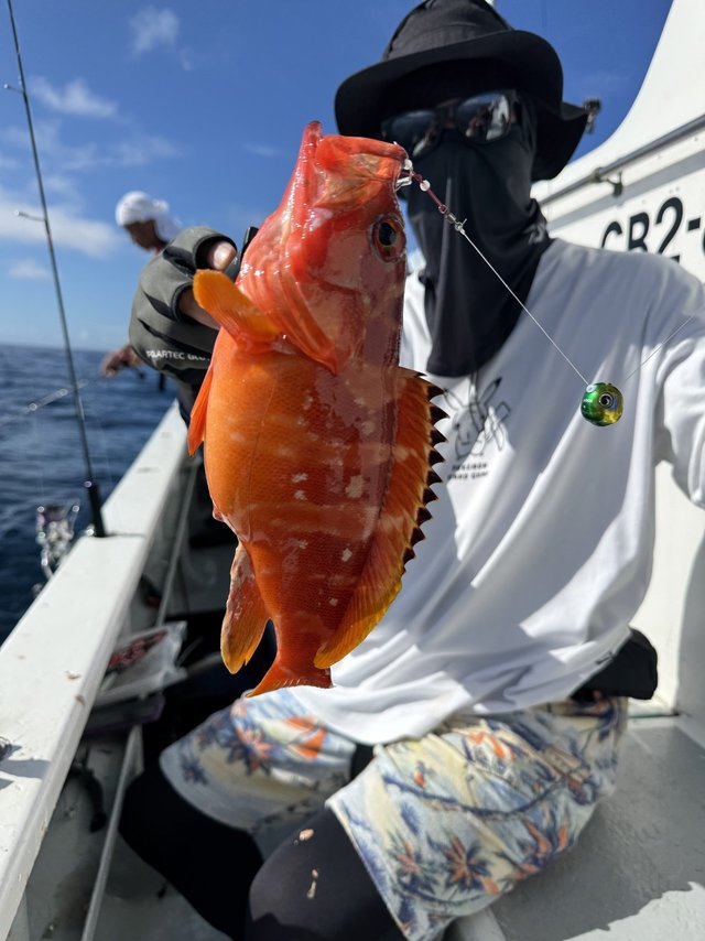 (マエソ)30cm 合計1匹 7/13午前テンヤルアー船 今日は2隻で行ってきました! ヒットパターン掴んだ方は底物中心に 最後までヒットありました! 青い南国モンスターも出現!笑