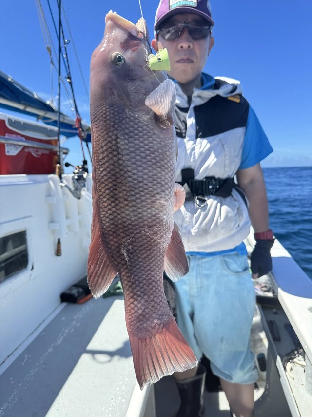(マエソ)30cm 合計1匹 7/12午後テンヤルアー船 午後からも行ってきました!! 大型ヒットも多くバラシ数回ありながら ヒゲダイ、コショウダイ、マハタ、 キジハタ、アカハタ、メイチ、ウツボ 魚種多彩に好調!好調! 明日からも期待していきましょー!! 明日13日(日)は テンヤルアー船のみ出船します!
