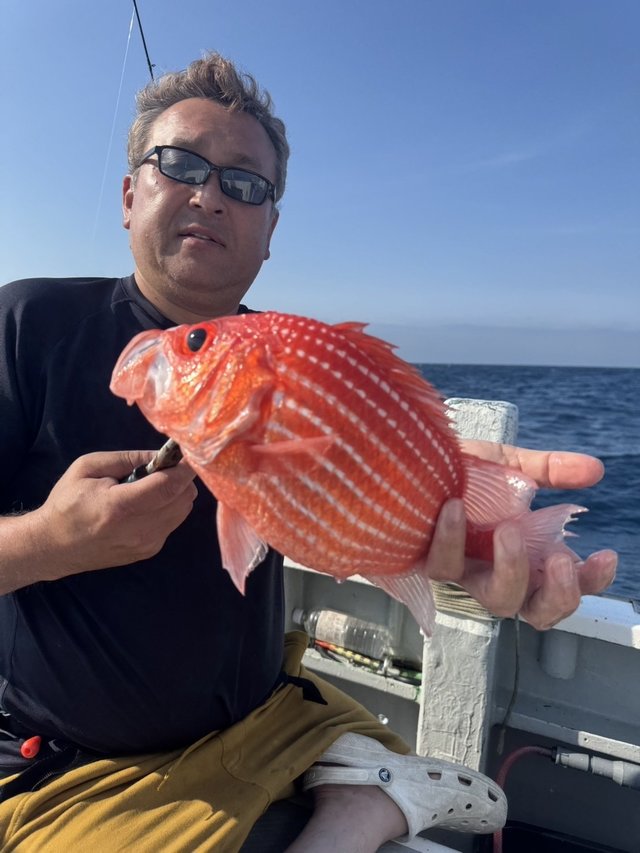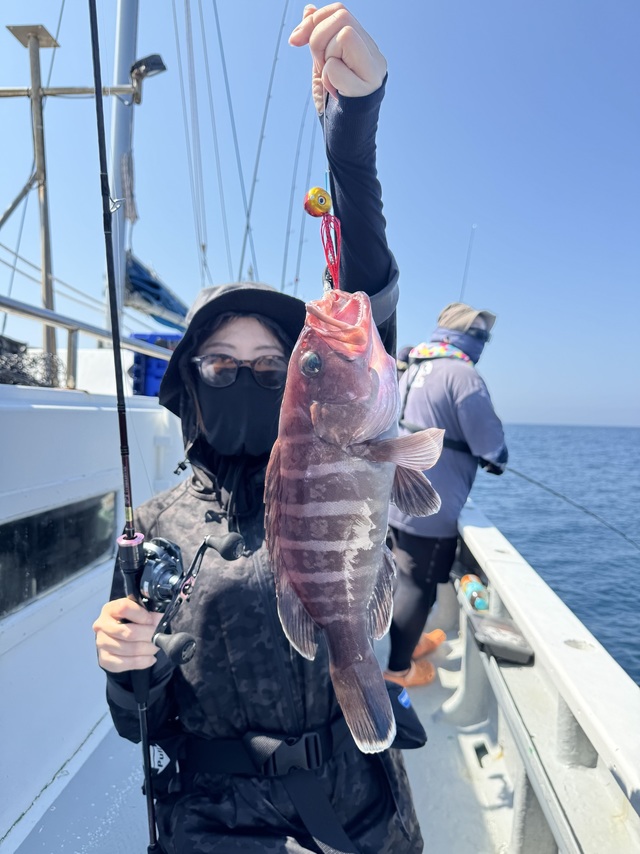 (マエソ)35cm 合計1匹 近海スロー船 本日も撮影でチャーター出船! 魚種多彩に好調でした(^^) 明日5日(土) 午前テンヤルアー船1名様空きあり 午前近海スロー船満席 午後テンヤルアー船空席多数 6日(日) 午前テンヤルアー船空席多数 午前近海スロー船空席多数