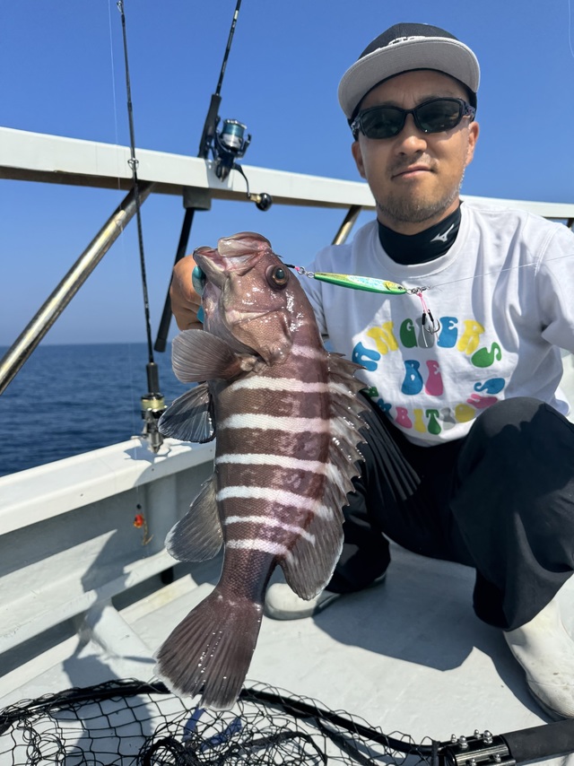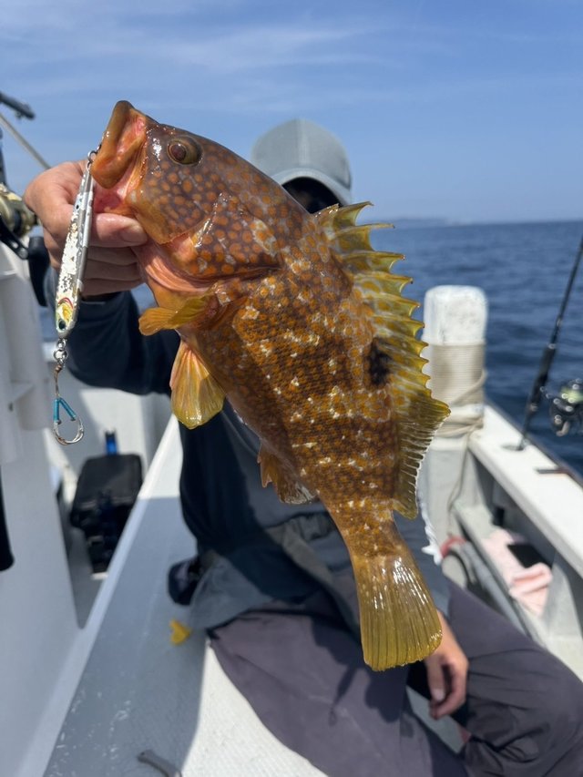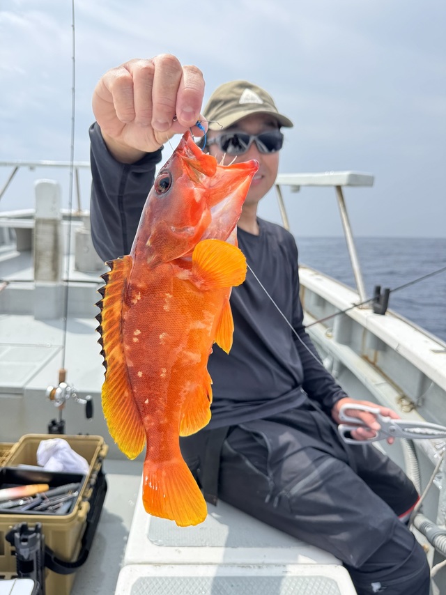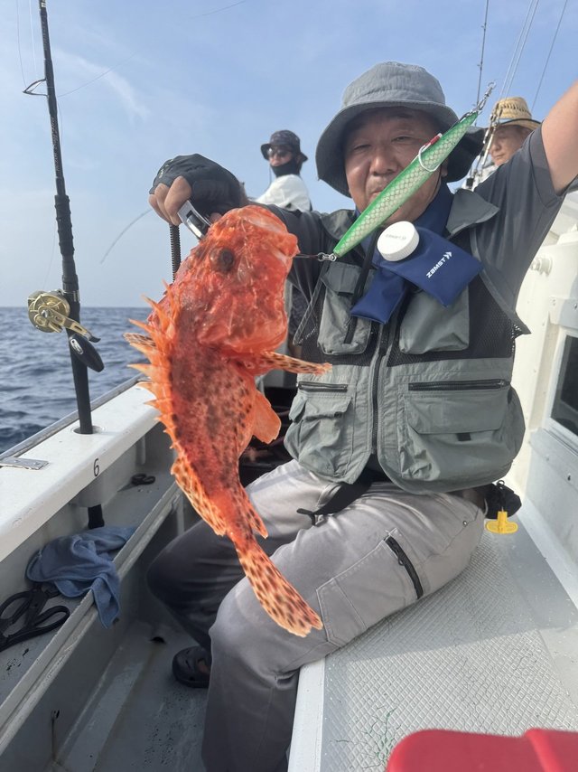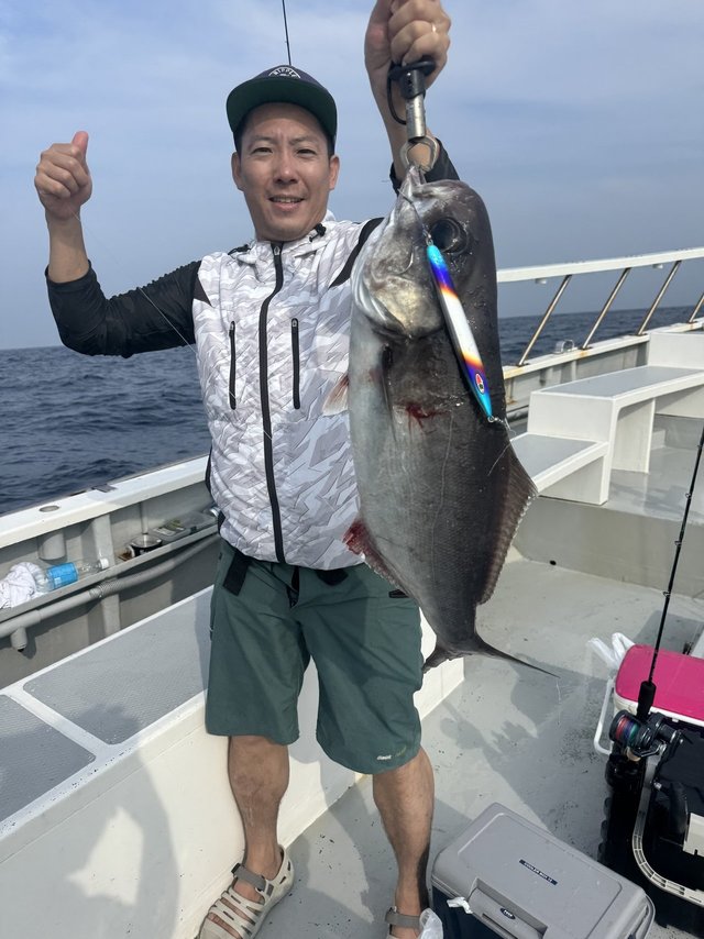 (マエソ)35cm 合計1匹 7/4テンヤルアー船 前半のうちは底物狙いからスタート してバリバリ当たるような活性は無く ポツリポツリとでしたがアカハタや メイチなどが顔見せて重量感たっぷり の大物ヒットもありましたが惜しくもあがりませんでした。 今日の青物は反応見れても中々ヒット してくれませんでした 明日からの潮流れに期待しましょう! 明日5日(土) 午前テンヤルアー船1名様空きあり 午前近海スロー船満席 午後テンヤルアー船空席多数 6日(日) 午前テンヤルアー船空席多数 午前近海スロー船空席多数