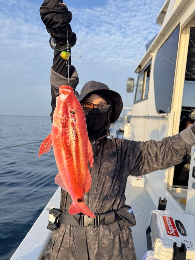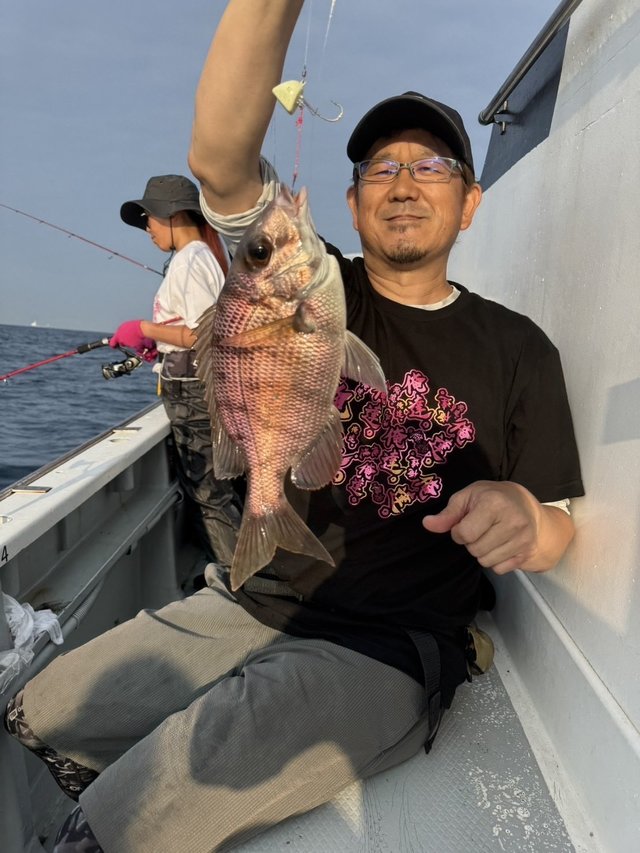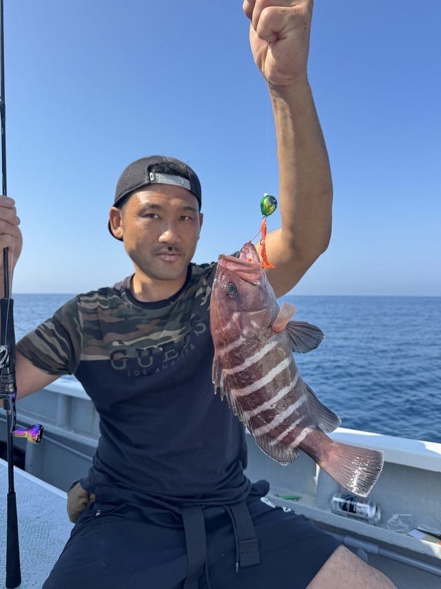 (マエソ)35cm 合計1匹 7/5近海スロー船 二枚潮気味ではあるものの 速い潮は緩んでくれてアタリ良し!! 反応モリモリで船中でパタパタと ヒットするタイミングもよくありました! 潮の変化にしっかりとタックルや シャクリ方を合わしていけるかが 重要です!! ジグは300g前後~400g位まで あると良いですよ! 明日からも色々狙っていきましょう! 明日6日(日)は 午前テンヤルアー船空席多数 午前近海スロー船空席多数 7日(月) 午前テンヤルアー船空席多数 午前近海スロー船空席多数 8日(火) 午前テンヤルアー船空席多数 午前近海スロー船受付中 9日(水) 定休日