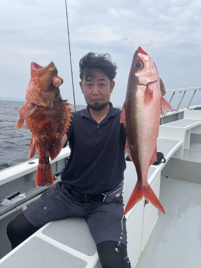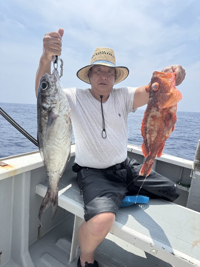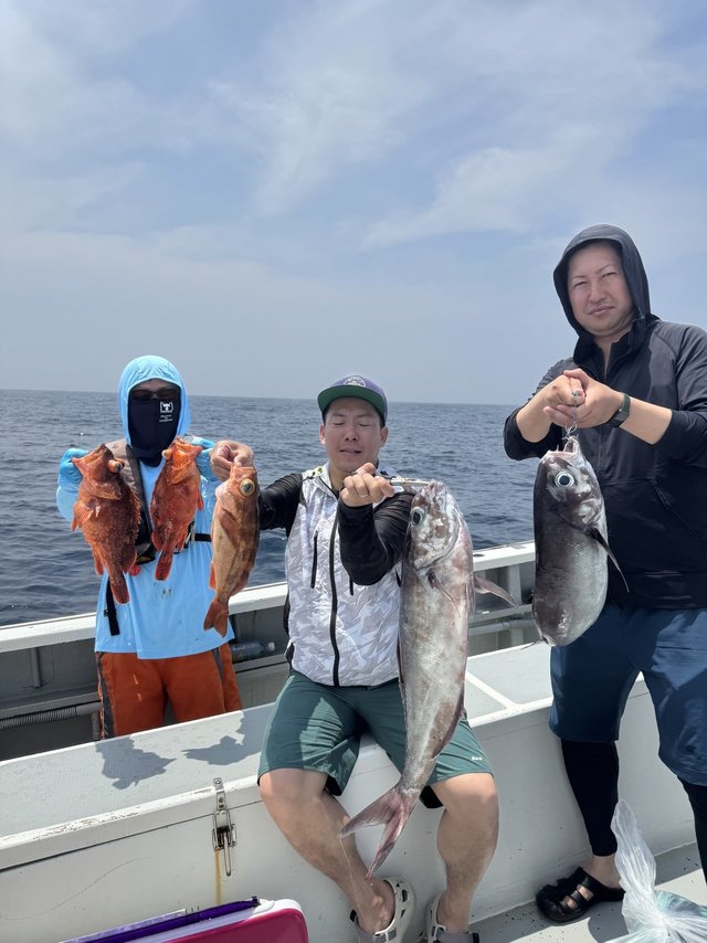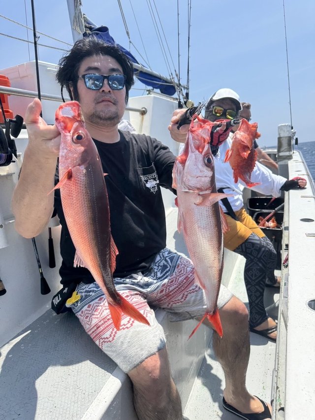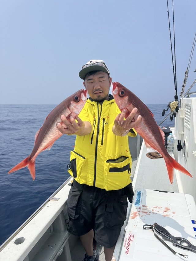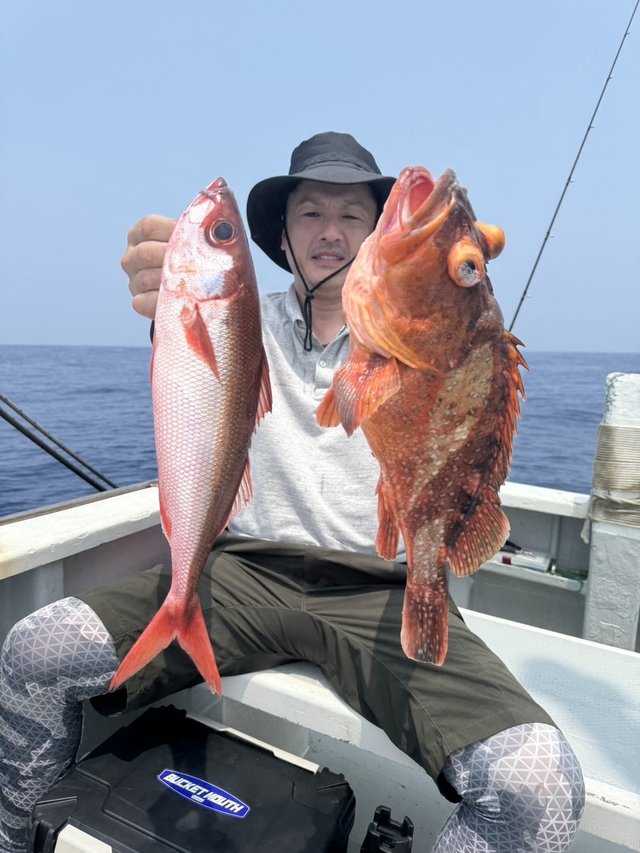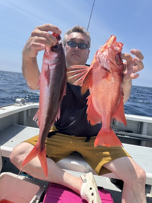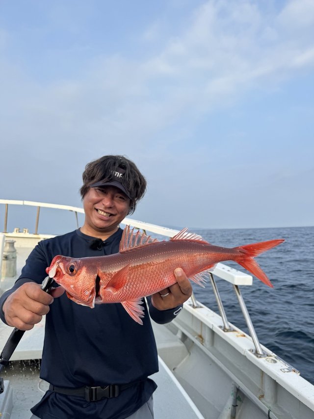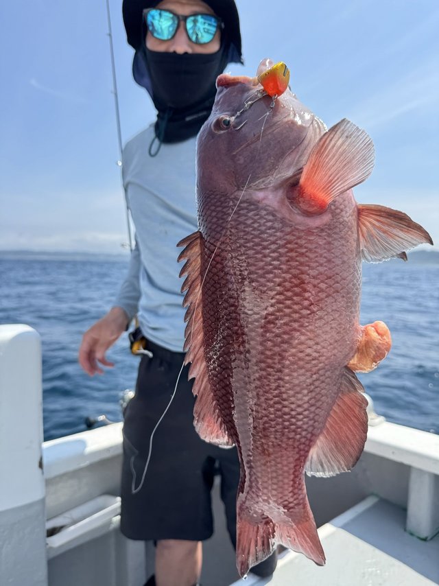 (マエソ)30cm 合計1匹 7/2近海スロー船 潮の流れ緩み 反応に入るとゲスト多彩にアタリ活発でした! 大物のアタリも数回あって 根に潜られたり切られたりもありましたが 久々にBIGな神龍も(^^) 土日のご予約も各船受付中です! チャレンジお待ちしております! 明日は 3日(木)の 乗合船はテンヤルアー船のみ出船! ガラガラです! 4日(金) 一隻チャーターの為 テンヤルアー船または近海スロー船 先にご予約集まった釣物で出船!受付中 5日(土) 午前近海スロー船空きあり 午前テンヤルアー船空きあり 午後テンヤルアー船空席多数 6日(日) 午前近海スロー船受付中空席多数 午前テンヤルアー船空席多数