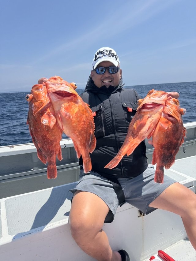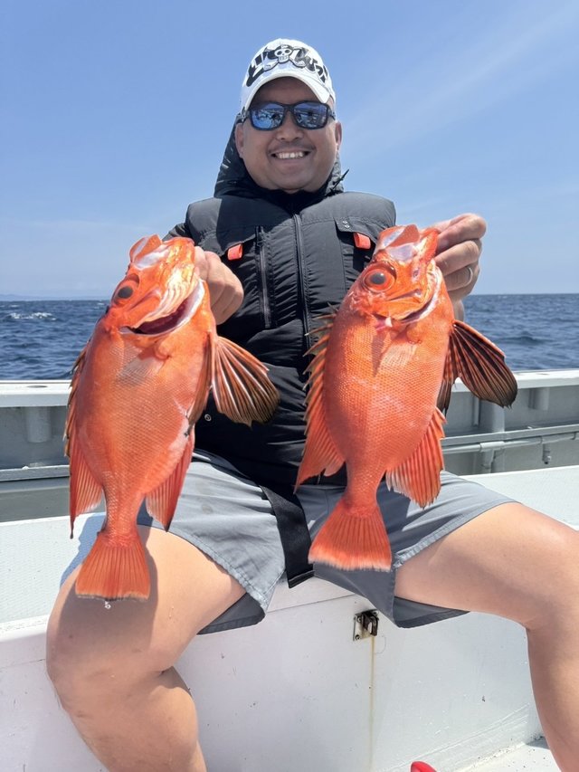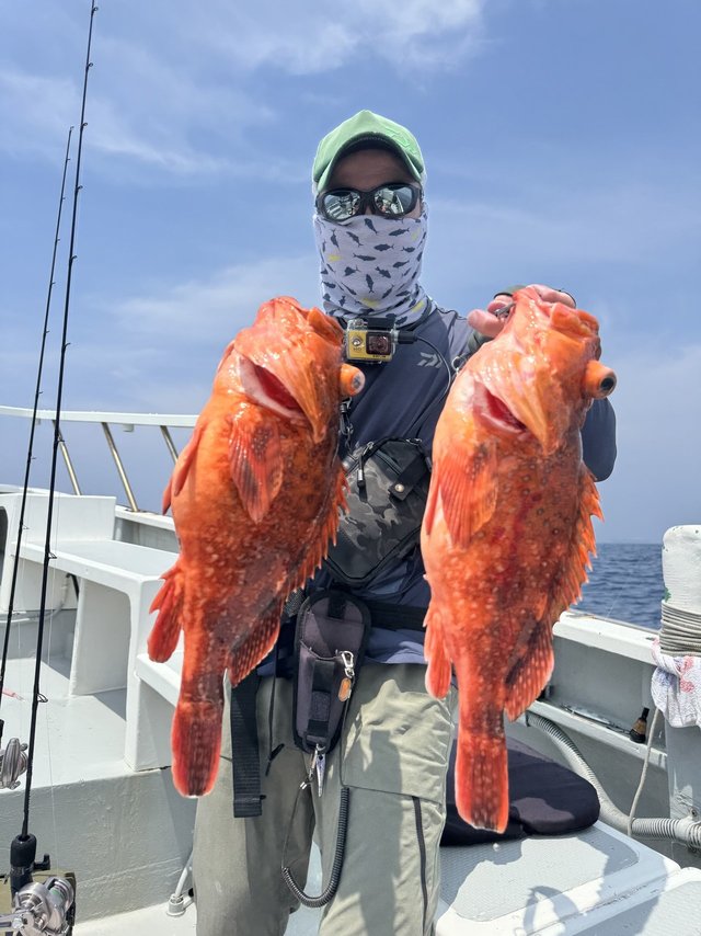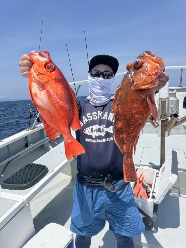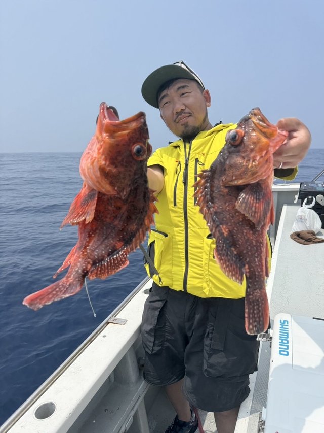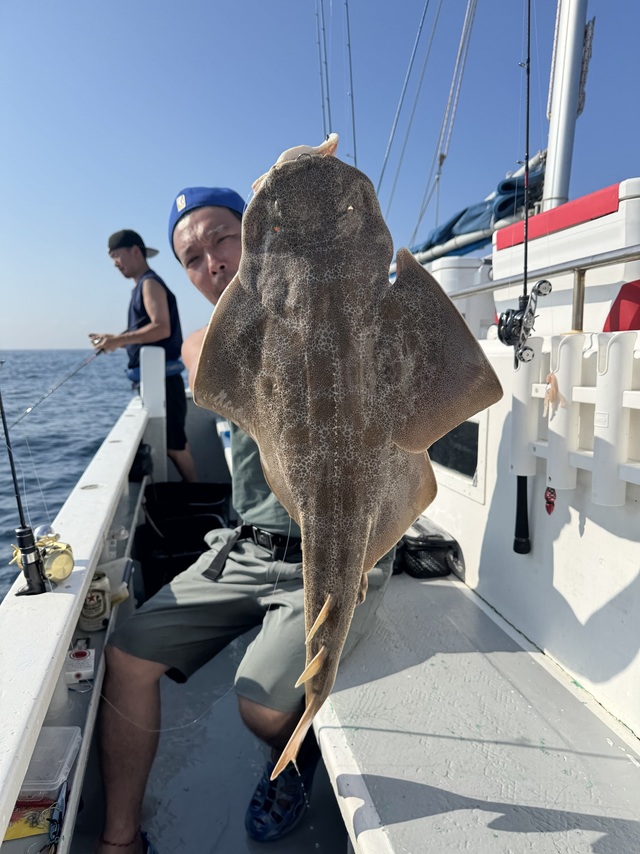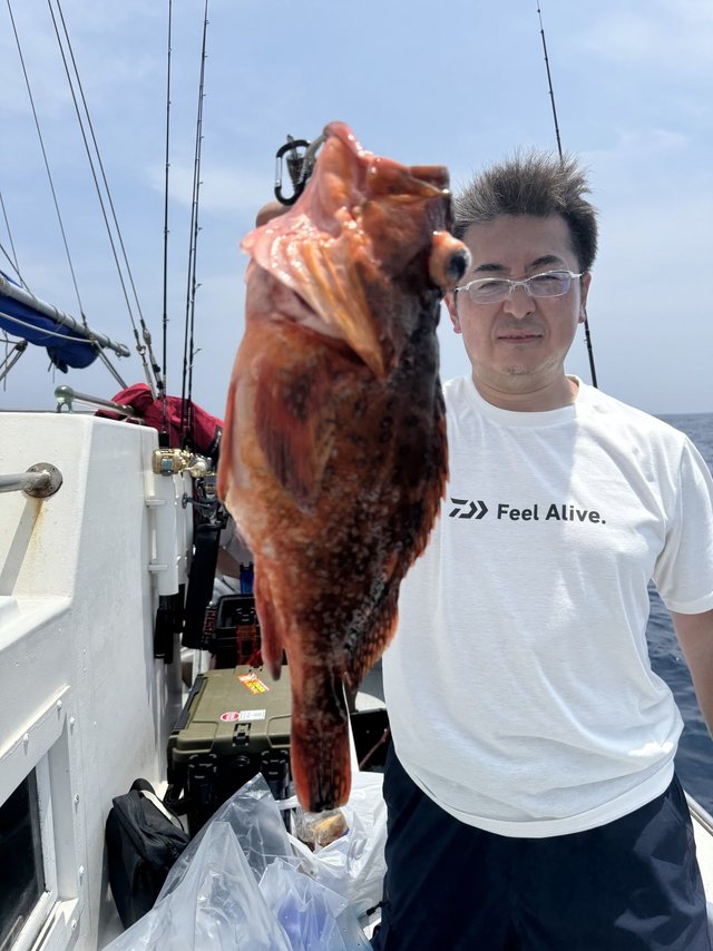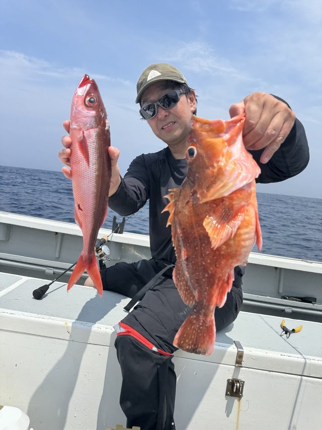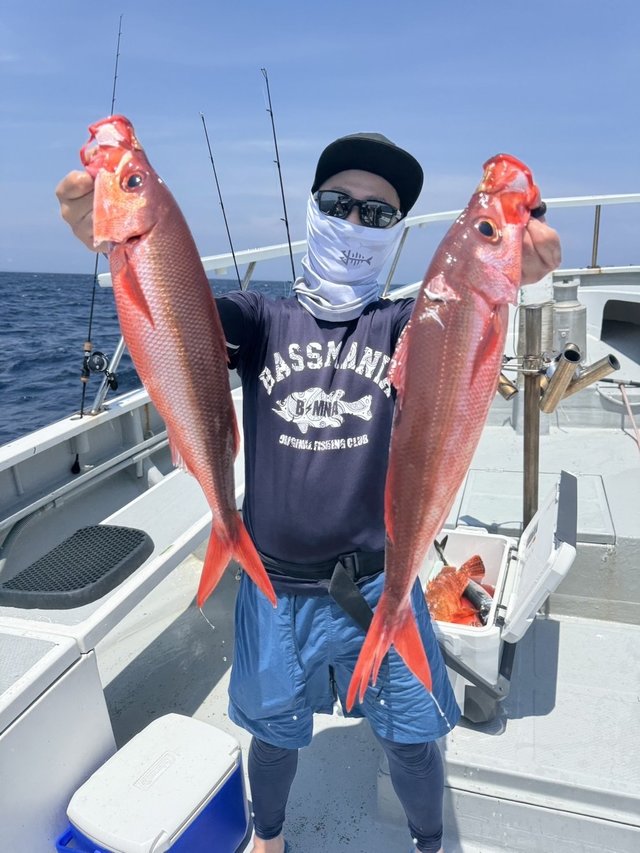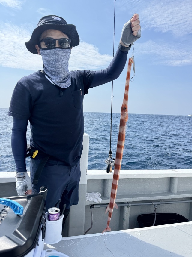 (マエソ)30cm 合計1匹 7/2近海スロー船 潮の流れ緩み 反応に入るとゲスト多彩にアタリ活発でした! 大物のアタリも数回あって 根に潜られたり切られたりもありましたが 久々にBIGな神龍も(^^) 土日のご予約も各船受付中です! チャレンジお待ちしております! 明日は 3日(木)の 乗合船はテンヤルアー船のみ出船! ガラガラです! 4日(金) 一隻チャーターの為 テンヤルアー船または近海スロー船 先にご予約集まった釣物で出船!受付中 5日(土) 午前近海スロー船空きあり 午前テンヤルアー船空きあり 午後テンヤルアー船空席多数 6日(日) 午前近海スロー船受付中空席多数 午前テンヤルアー船空席多数