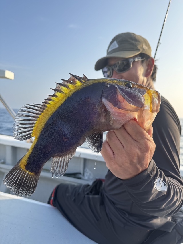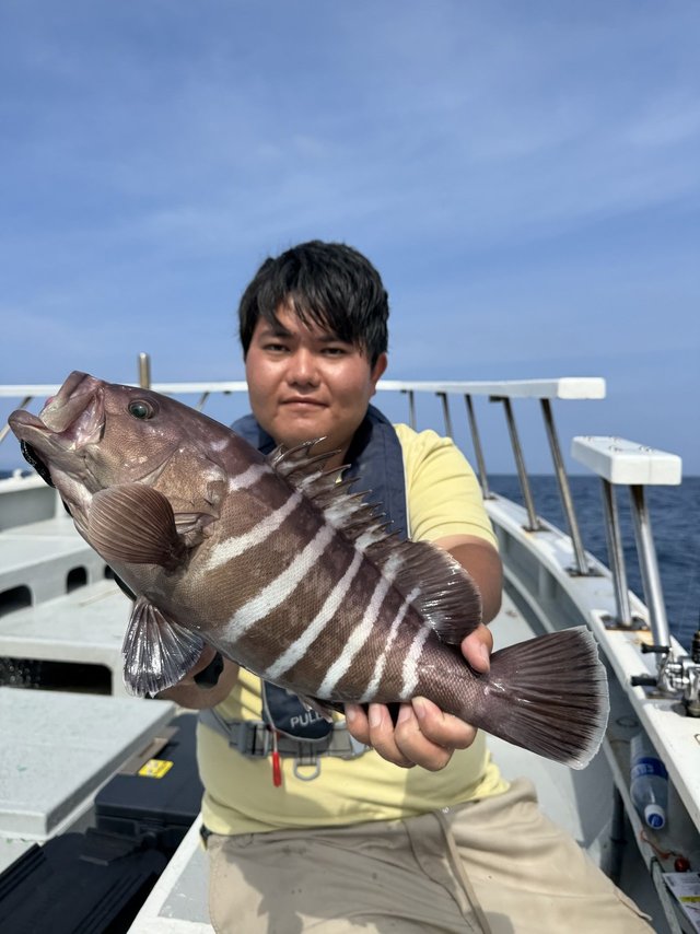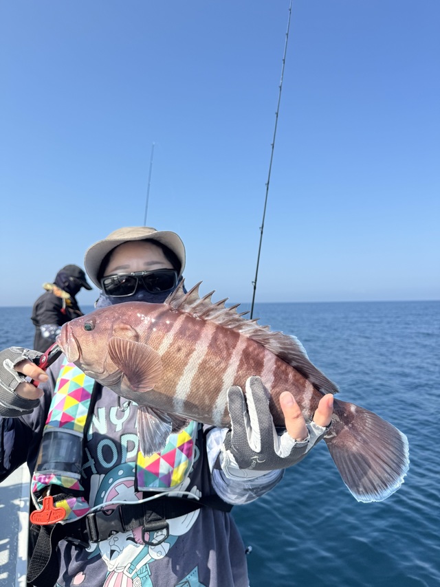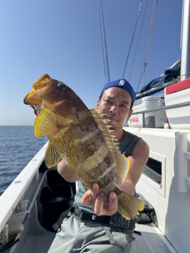 (マエソ)30cm 合計1匹 7/1午前テンヤルアー船 今日から7月スタート! 今日は底の潮が流れないからか あちこち回ってもなかなかアタリが出ず 苦戦しましたが、少し底潮が 流れ出すとアタリが出始めて 良型のホウキハタ浮上ー!! マハタもトリプルヒットがあったり アカハタ、アヤメカサゴ、オニカサゴ、 ヒメダイ、ヤガラ、カンダイ、トラフグ と魚種多彩にGETできました! 明日からも多彩に狙っていきましょー!