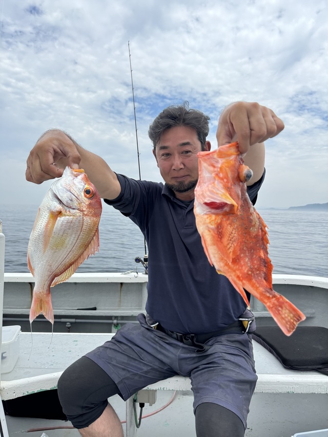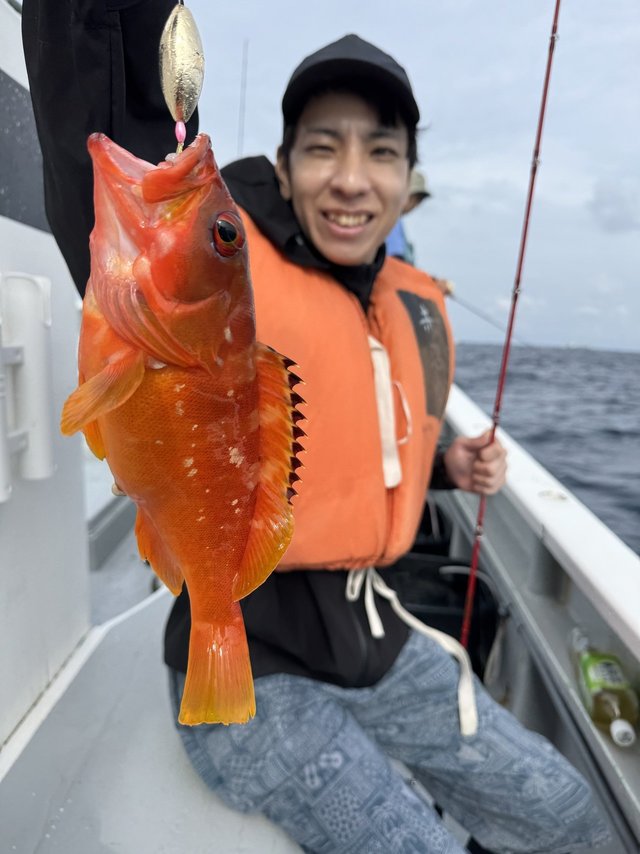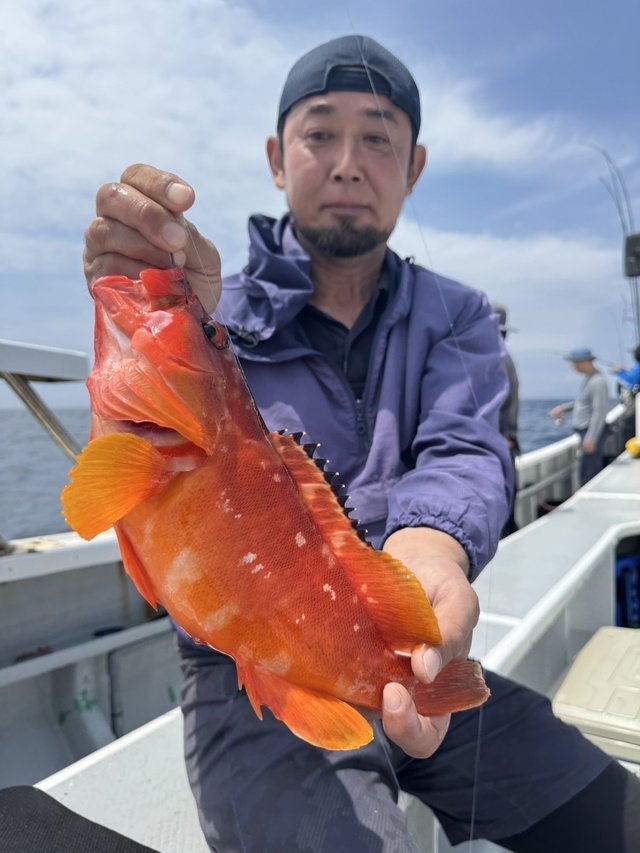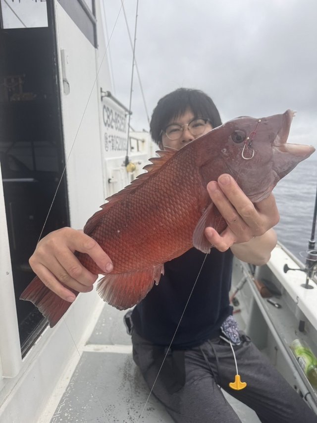 (マエソ)30cm 合計1匹 6/16近海スロー船 昨日の風も収まり出船できました! 朝イチのポイントは潮の流れも良く 沖を目指して移動しました! 二枚潮でしたがぶっ飛んだ潮は無くて 最初は良型のムツや根魚など美味しい 高級ゲストが流す度にヒット あり!で期待しましたが 段々と二枚潮キツくなってくると アタリも悪くなり失速でした 明日はシケ予報の為出船中止です! 18日(水)~ ご予約お待ちしております!