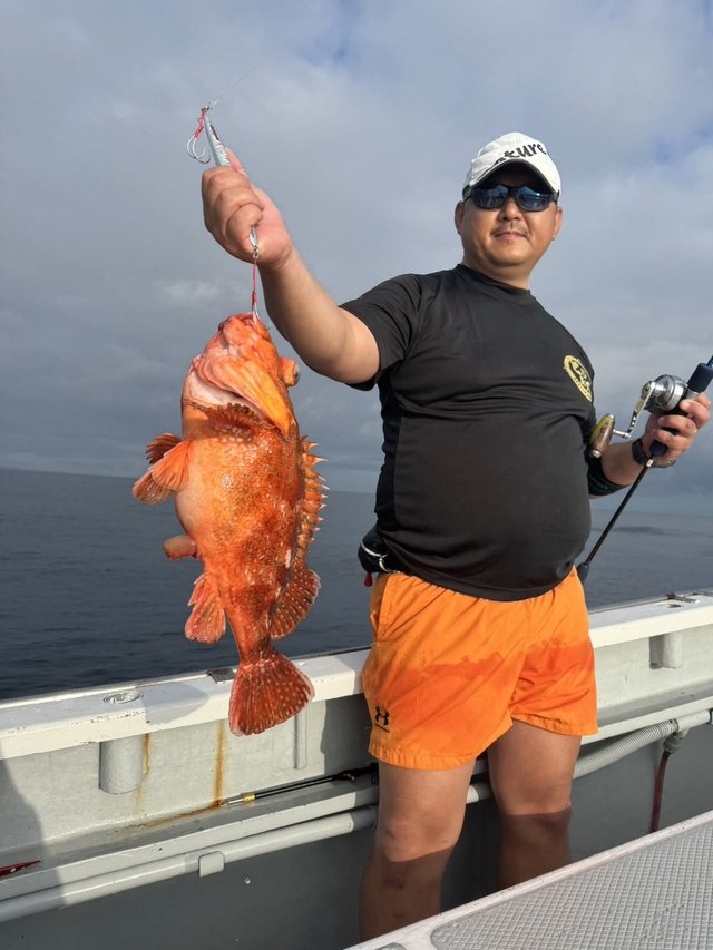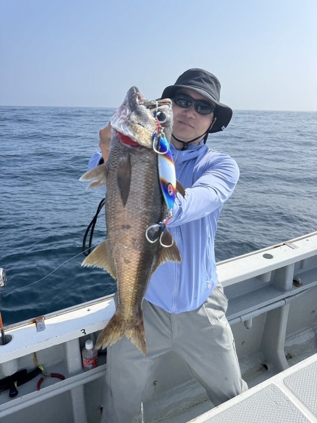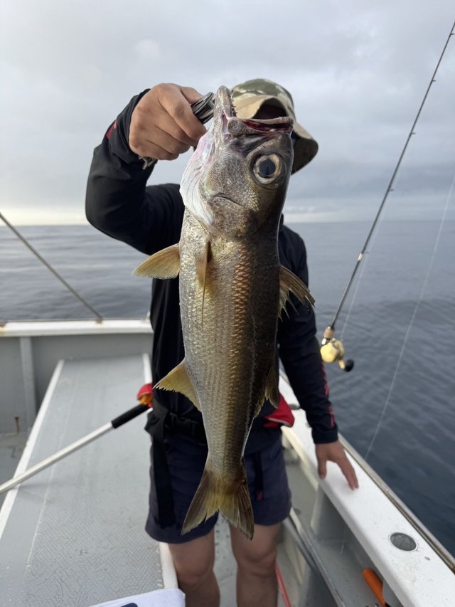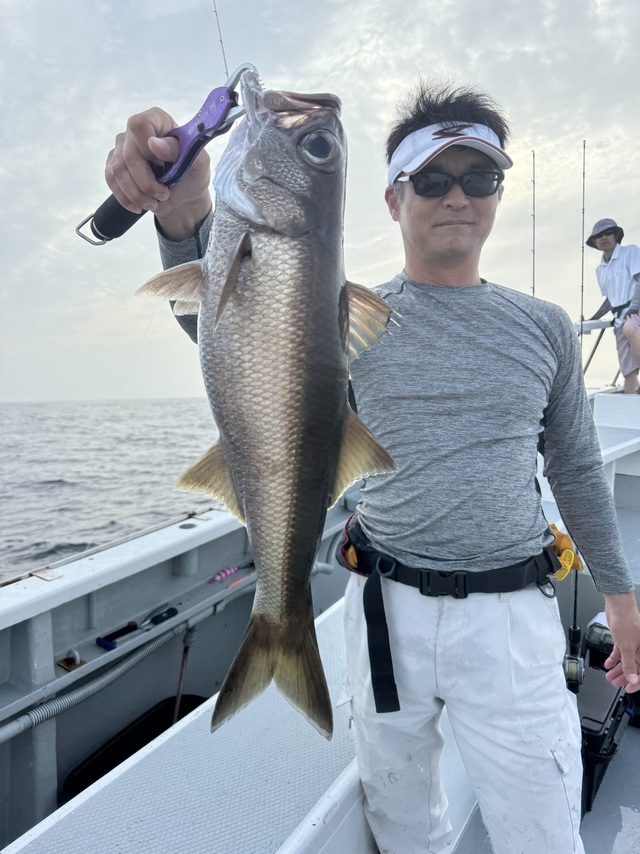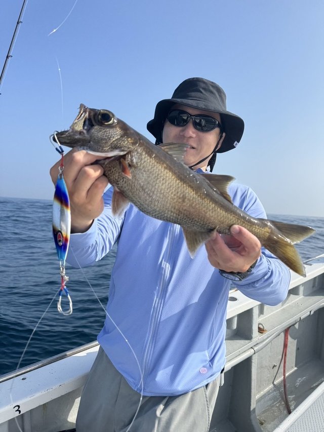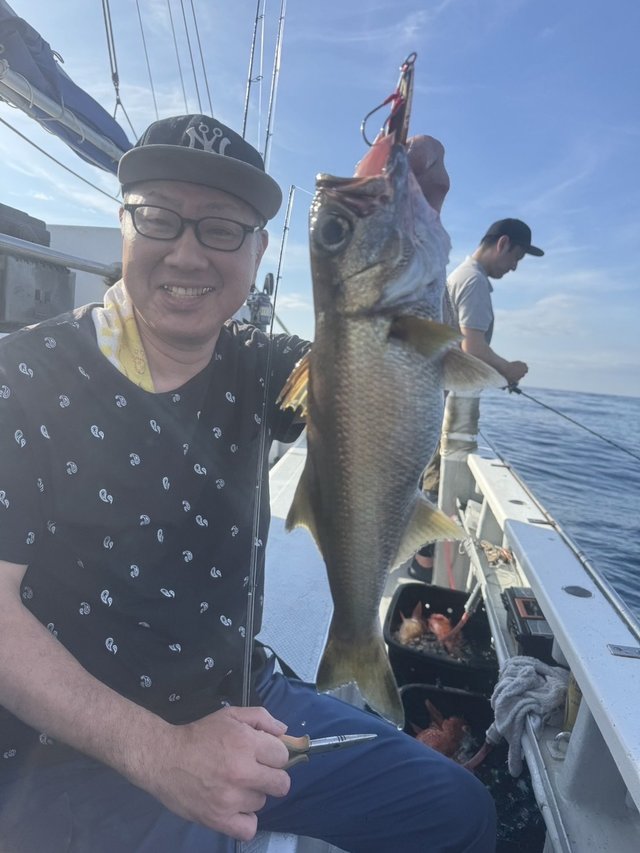 (マエソ)35cm 合計1匹 6/20近海スロー船 デカムツ、ラッシュ! デカンコ、ラッシュ! マハタGET!! とアタリの良い時間続き 盛り上がりました! 今日も高級ゲストでお土産バッチリ でした! 明日からも期待して行きましょう! 潮は速いです!なるべく重たいジグを 持ってきてください! 明日20日(金)も テンヤルアー船 近海スロー船 にてご予約お待ちしております!