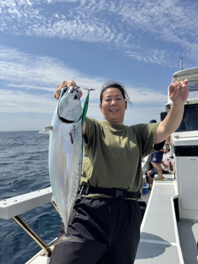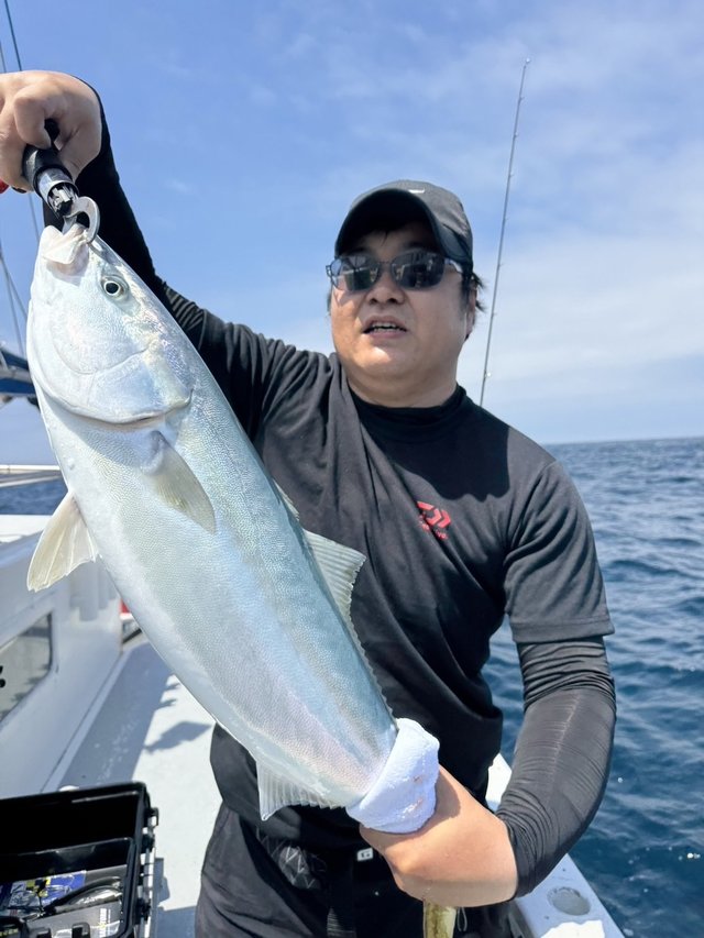 (マエソ)30cm 合計1匹 6/18午前テンヤルアー船 青物活性高くナブラや鳥山もあって バラシも多くありながらワラサ良型が良くヒットしてくれました!! マハタやアカハタもポツリとヒット ありました! 状況に合わせて仕掛けや誘い方を 変えながら色々狙ってみてください! 明日からも色々狙っていきましょー!