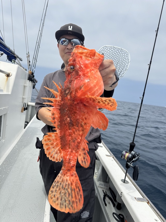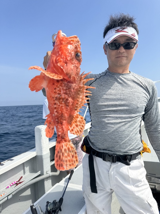 (マエソ)30cm 合計1匹 6/16午前テンヤルアー船 簡単にアタリが出る感じではありません でしたが魚種多彩にポツポツとヒットあり! 良型青物のヒットもありましたが 惜しくもバラシでした パタパタとアカハタ、カサゴ、 オオモンハタと根魚のヒットする 流しもありました! 明日はシケ予報の為出船中止です! 18(水)~ ご予約お待ちしております!