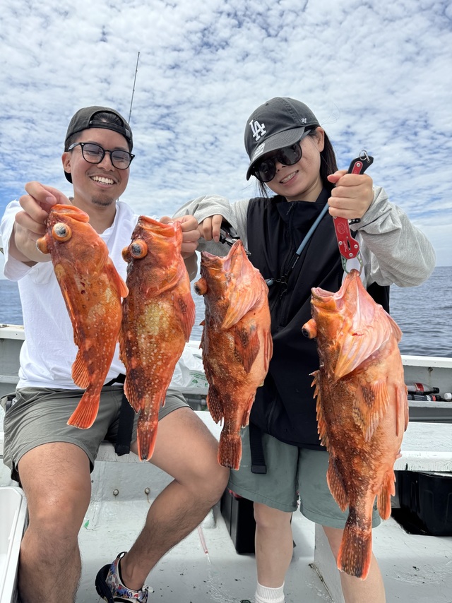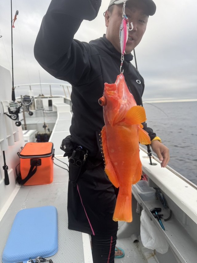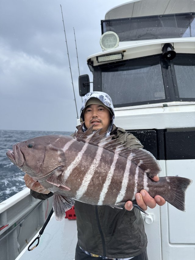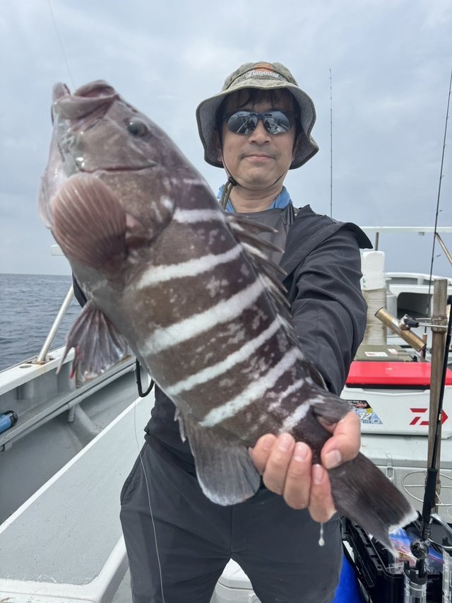 6/10午前近海スロージギング船 雨の中でしたが張り切って行ってきました! イシナギは2ヒット1キャッチ! 34キロGET!!! マハタも2ヒットありましたが どちらもバラシでした 他にカンコやカガミダイがポツリと! 海底からジグ3つGETできた方も!笑 明日は定休日です。 12日(木)~またお待ちしてます!