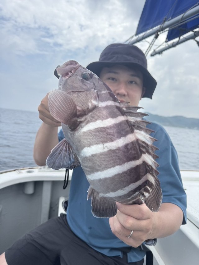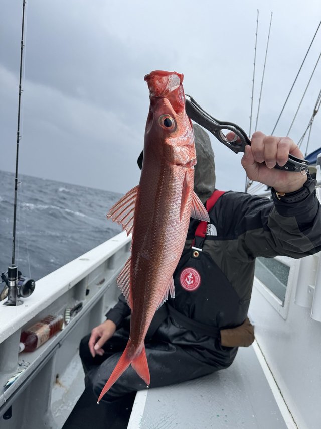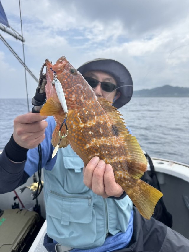 (マエソ)35cm 合計1匹 6/8午後ジギングタイラバ船 午後からも行ってきました! 水深広く探っていき場所によって 派手に連発は無く ポツポツの喰いでしたが こちらも魚種多彩に 美味しいゲスト達が!! 他にアヤメ、アカハタ、サバなど ヒットパターンを探して 何目釣れるかも楽しみですね!! 午後ジギングタイラバ船 毎週土日募集中です! ご予約お待ちしてます!