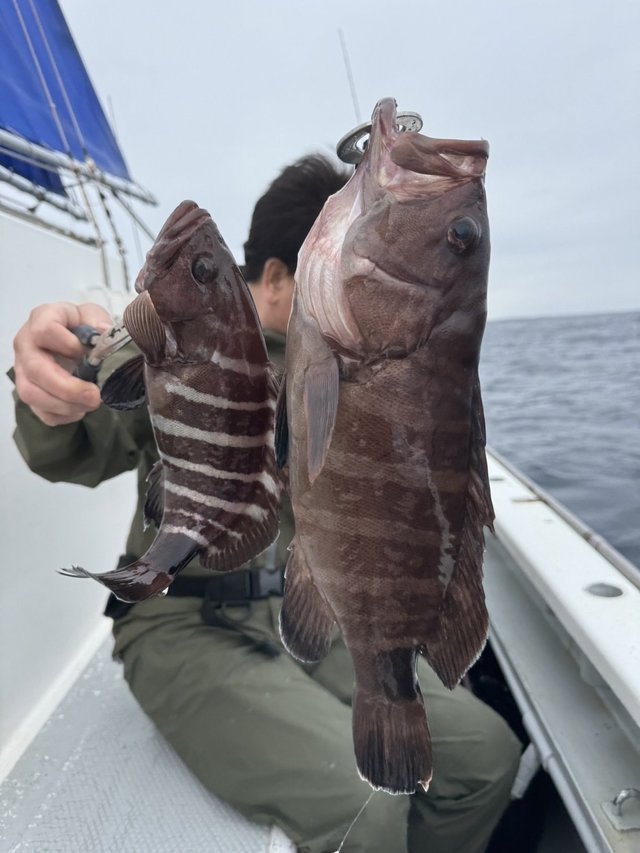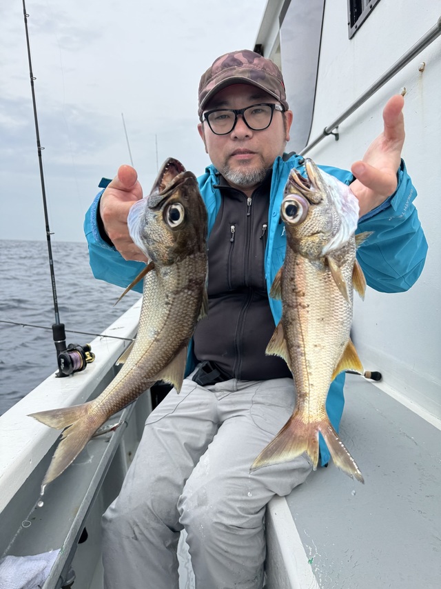 (マエソ)30cm 合計1匹 5/29午前近海スロージギング船 定休日明け今日は2隻に分かれて 出船しました! 潮が速く難易度の高い1日でしたが 上手くアタリを出していけた方は 本日も高級ゲストが!! 今日はイシナギも浮上し 良型のマハタに デカムツ3.7キロ、デカンコ と盛り上がれました! モンスターサイズのヒラメも 海面まできましたが タモミスでバラシでした 申し訳ありませんでした(><) 速潮に対応できるようジグは なるべく重たい物を 持ってきてください! 明日は悪天候予想の為 出船中止します!