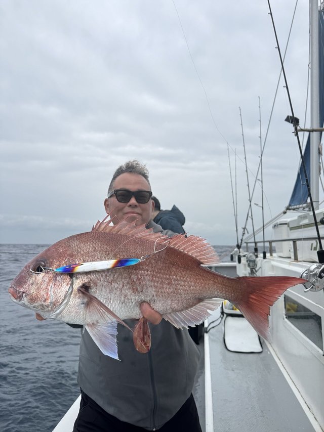 (マエソ)30cm 合計1匹 5/27午前近海スロージギング船 今日も張り切って行ってきました! 二枚潮で難しい中でしたが 皆さん集中して頑張っていただき マダイ、ムツ、デカンコと高級ゲスト GETできました! マハタらしき強いアタリもありましたが 少しやり取りした後にバラシでした 最後まで頑張っていただきありがとうございました! 明日は定休日になります。