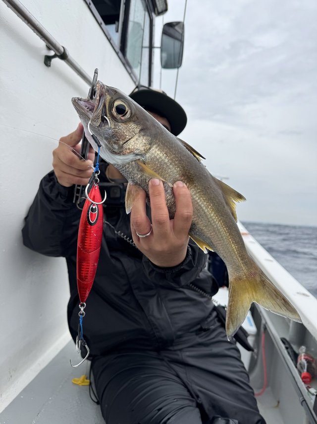 (マエソ)30cm 合計1匹 6/1テンヤルアー船 本日よりテンヤルアーでの出船! 潮が速めで浅場中心での1日でした 居心地の悪い潮なのか魚の活性も悪く パタパタと簡単に当たりが出る感じでは 無かったですが仕掛けや誘いの合う方は 終始アタリの出ている方も居ました 1発大型のヒットもありましたが 惜しくもブレイクしてしまいました 良い潮流れに期待して 超魚種多彩に狙って行きましょう! 条件の良い日は深場も探りますので 仕掛けの重さは幅広くご準備ください! 明日からも 近海スロー船 テンヤルアー船 へ出船!お待ちしてます!