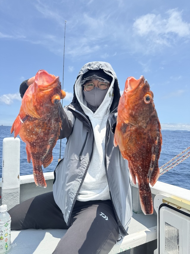 (マエソ)30cm 合計1匹 5/24午前スロージギング船 潮の流れ速く難しかったですが 良型カンコのアタリは良くポツポツと ヒットしてくれました! カンパチ6キロオーバーも顔を出して 盛り上がりました! 次回からも頑張ります!! 明日はシケ予報の為中止になりました。 26日(月)は LJタイラバ船 近海スロー船 にて出船!お待ちしております!