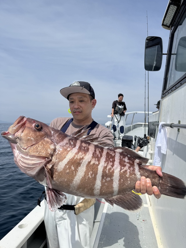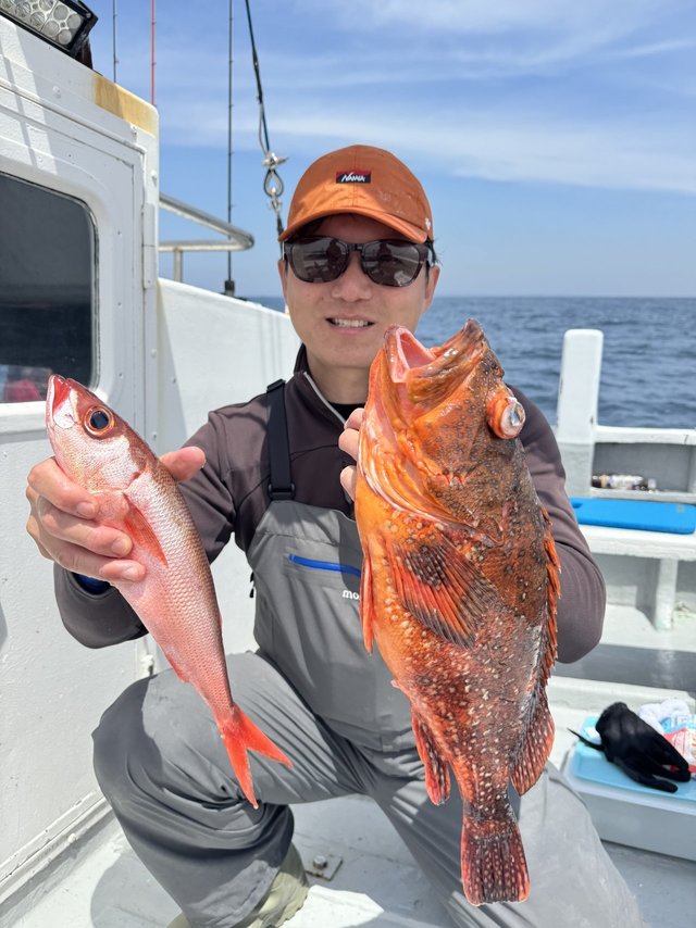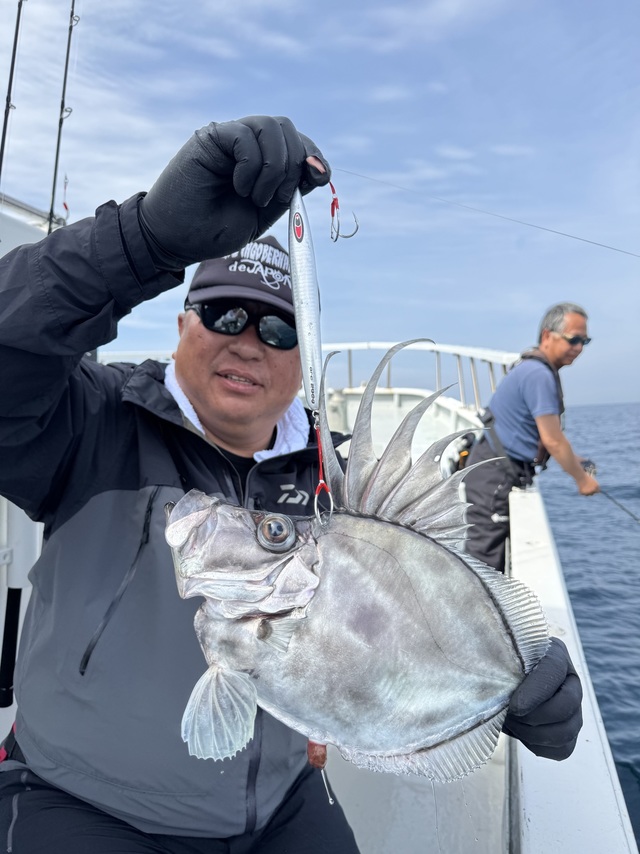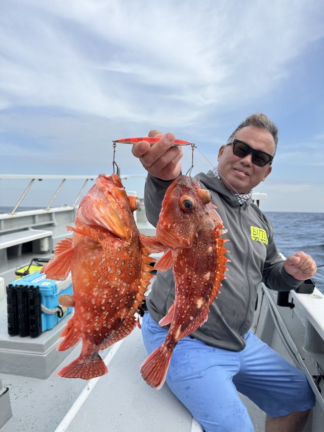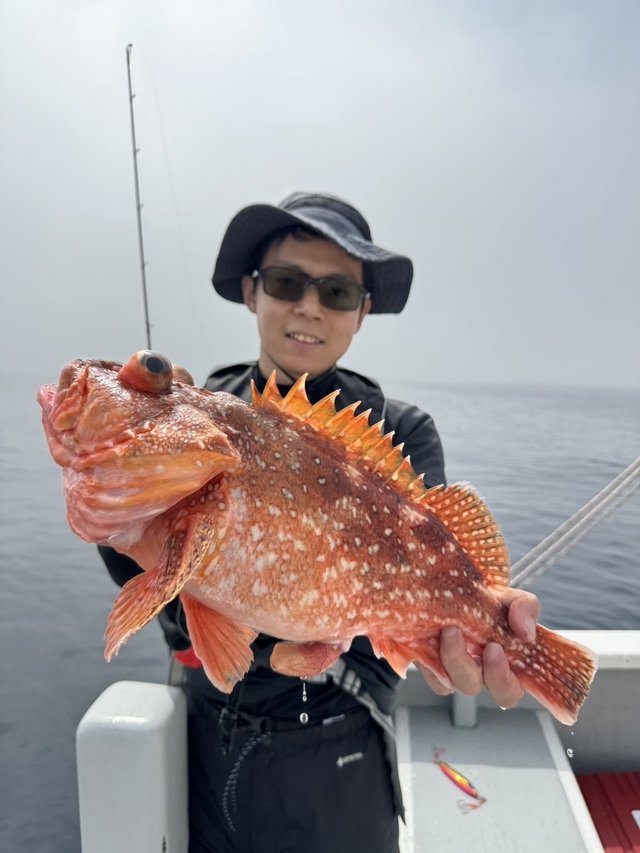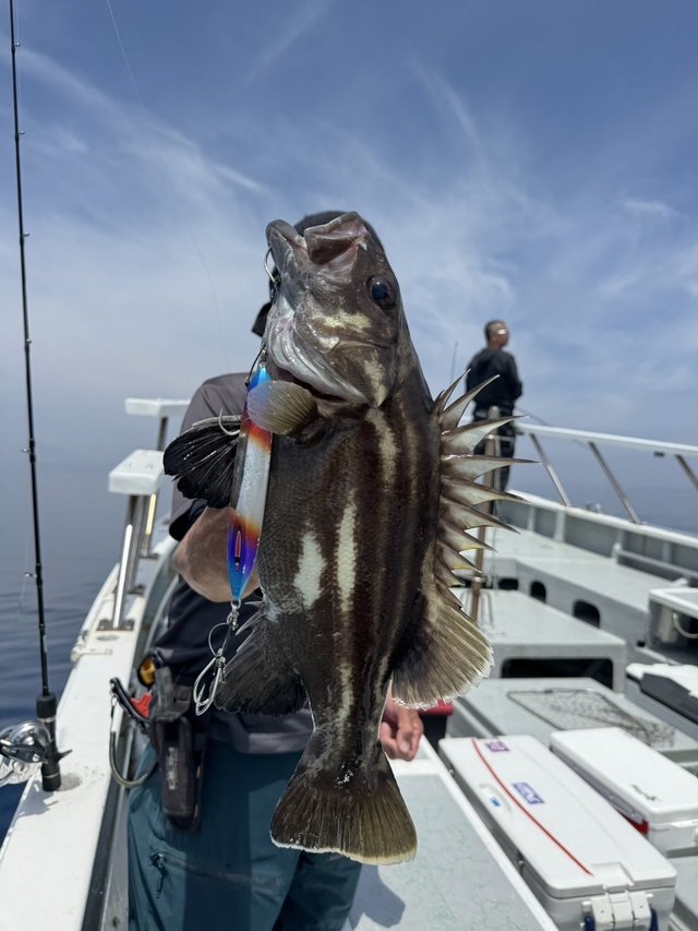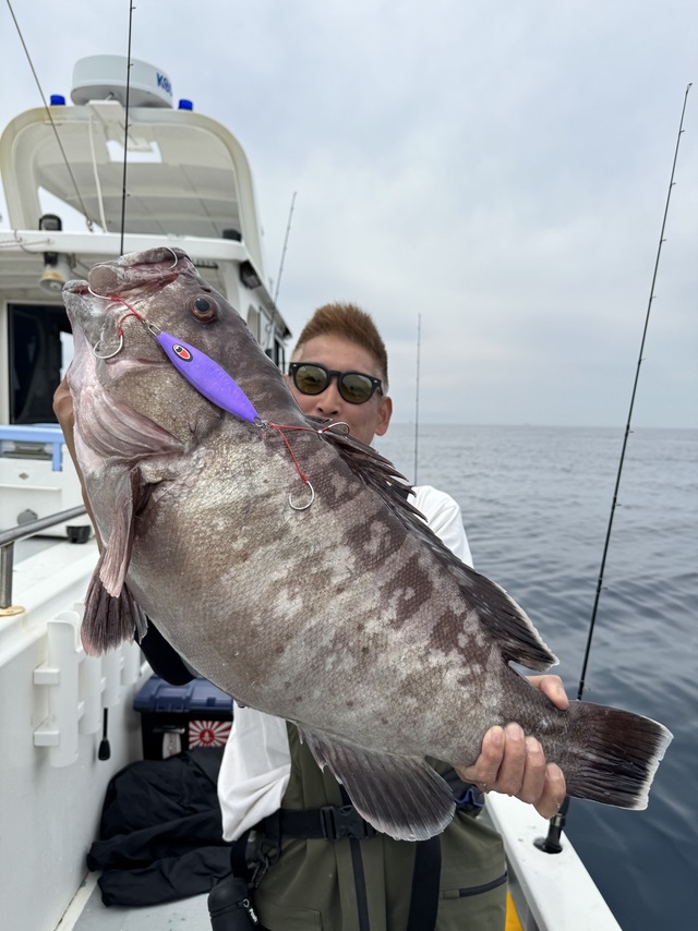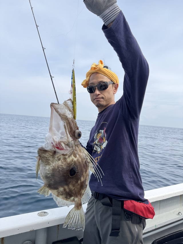 5/19午前スロージギング船 昨日のシケ明け本日は出船できました! 朝イチから鳥山ナブラと賑やかで バラシもありながら ワラサがヒットしてくれました!! その後は色々狙ってポイント回って イシナギ浮上ー!! カンコ、カガミダイ、 オニカサゴなど底物がポツリポツリとあがり楽しめました! 明日はまた予報が悪くお休みします 21日(水)よりご予約お待ちしてます! デカイの狙っていきますよー!!