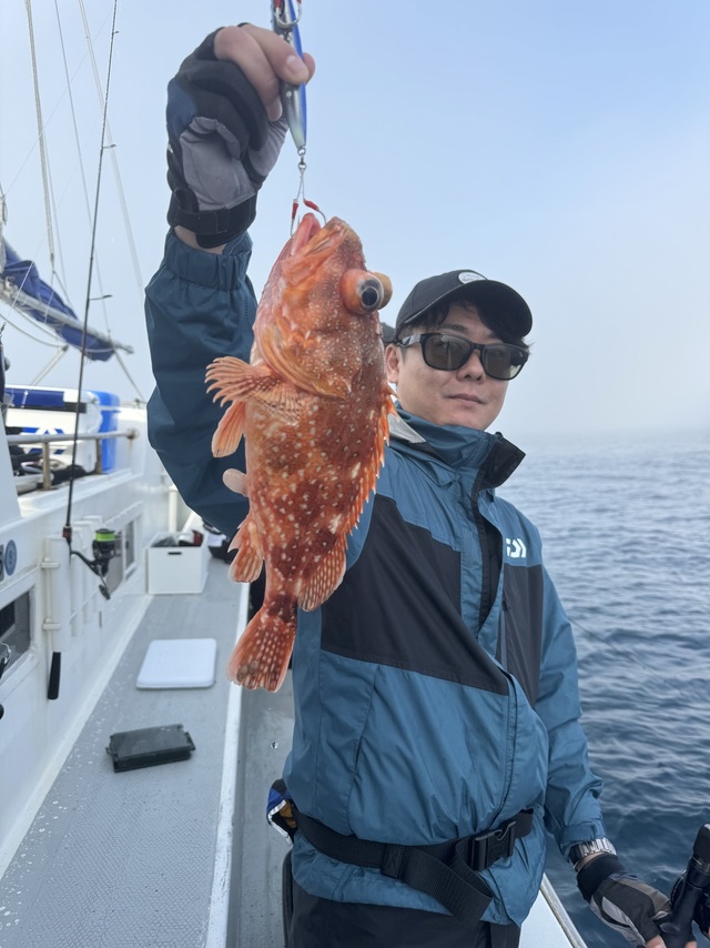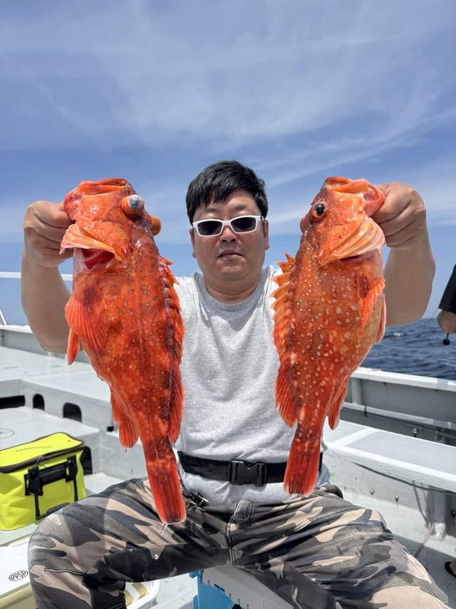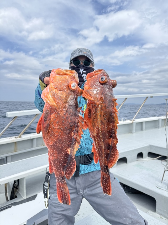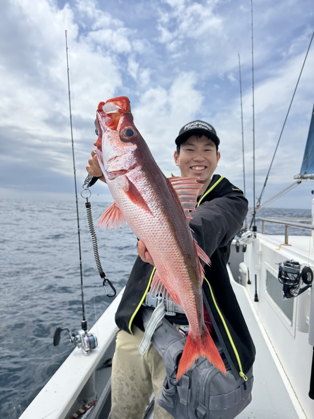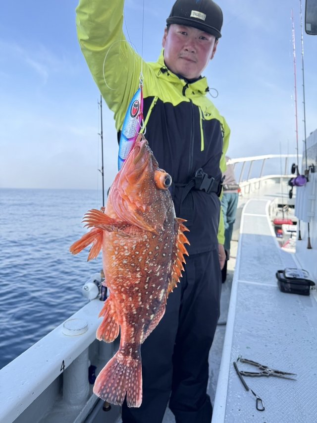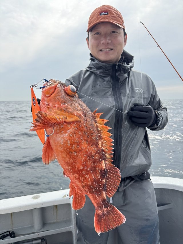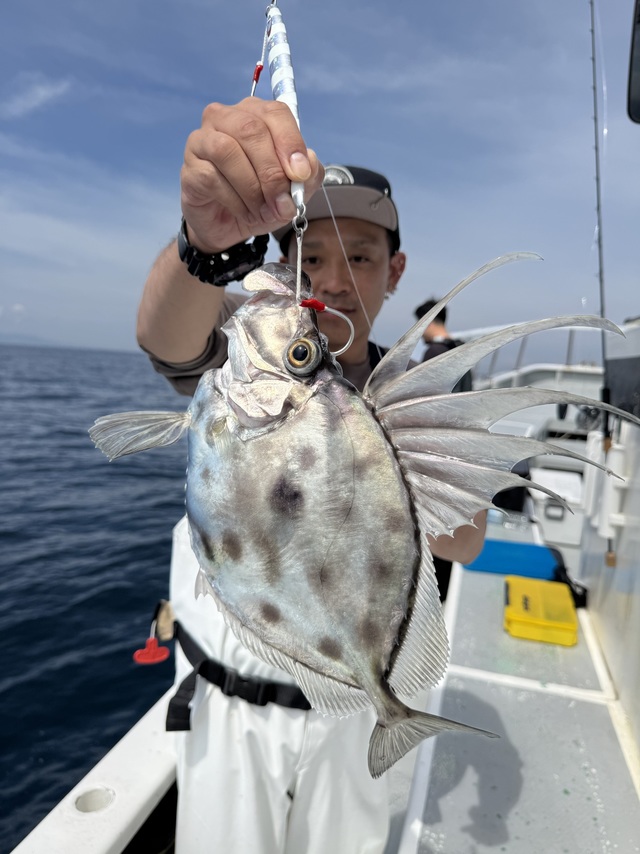 5/19午前スロージギング船 昨日のシケ明け本日は出船できました! 朝イチから鳥山ナブラと賑やかで バラシもありながら ワラサがヒットしてくれました!! その後は色々狙ってポイント回って イシナギ浮上ー!! カンコ、カガミダイ、 オニカサゴなど底物がポツリポツリとあがり楽しめました! 明日はまた予報が悪くお休みします 21日(水)よりご予約お待ちしてます! デカイの狙っていきますよー!!