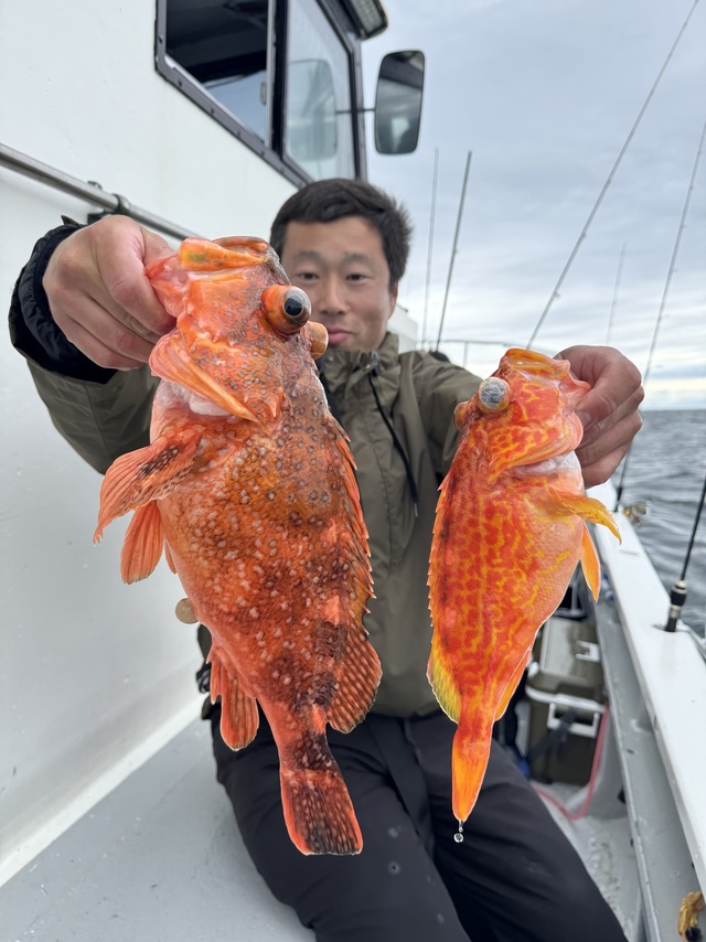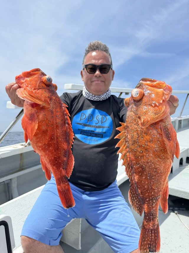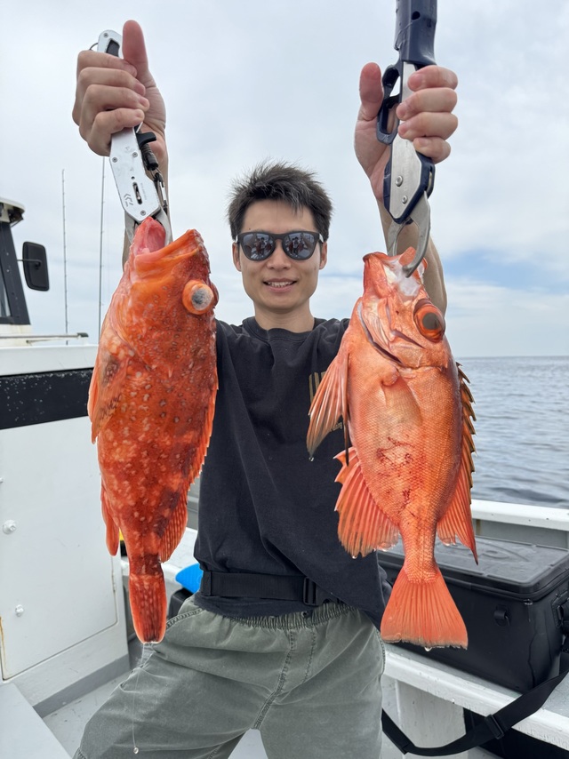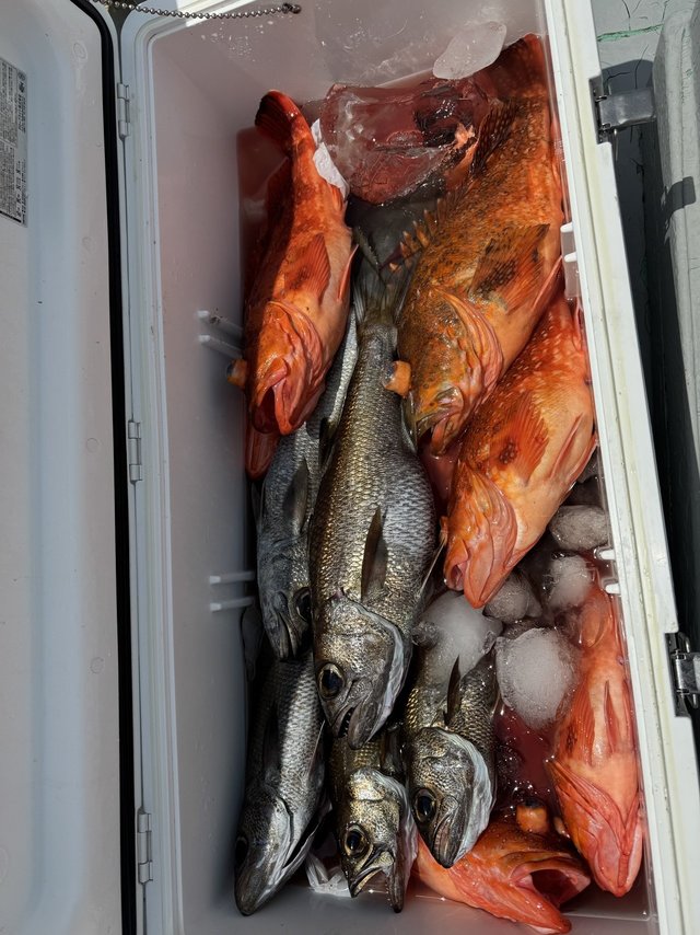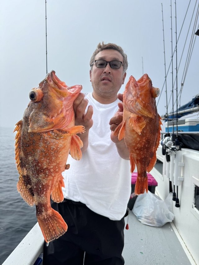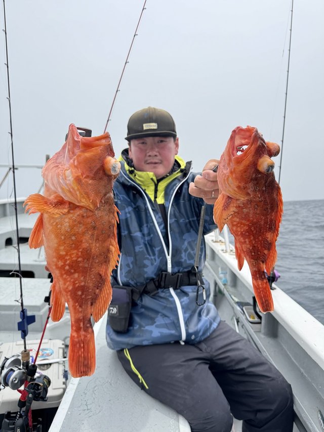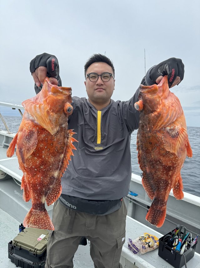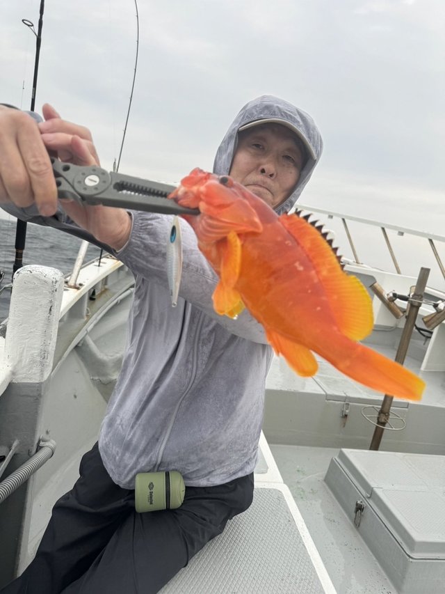 5/19午前スロージギング船 昨日のシケ明け本日は出船できました! 朝イチから鳥山ナブラと賑やかで バラシもありながら ワラサがヒットしてくれました!! その後は色々狙ってポイント回って イシナギ浮上ー!! カンコ、カガミダイ、 オニカサゴなど底物がポツリポツリとあがり楽しめました! 明日はまた予報が悪くお休みします 21日(水)よりご予約お待ちしてます! デカイの狙っていきますよー!!