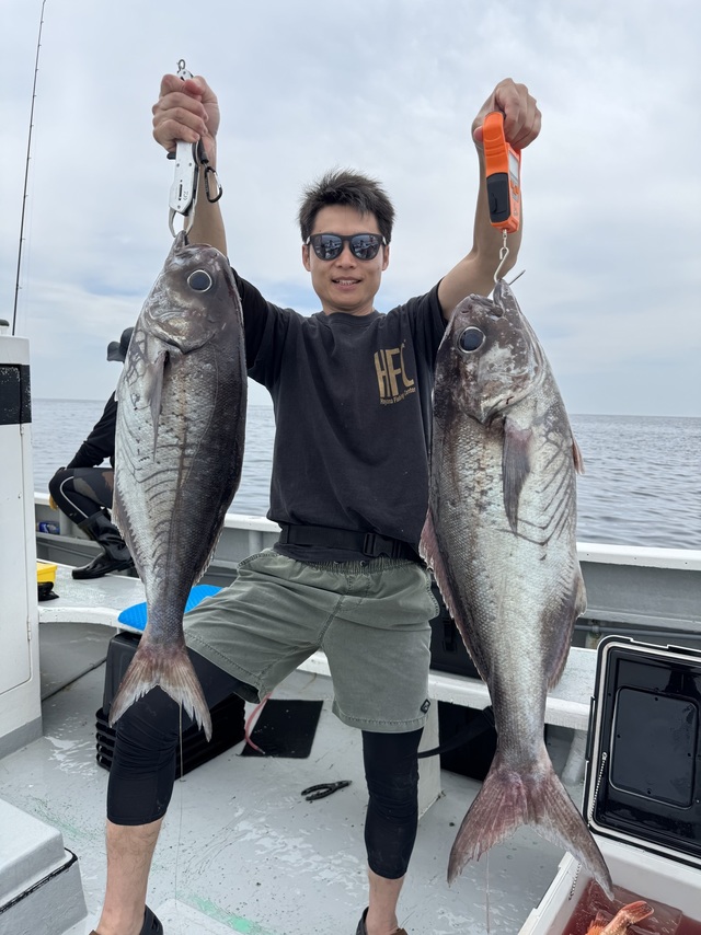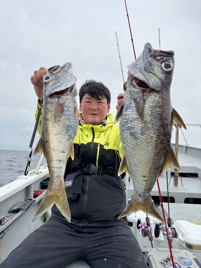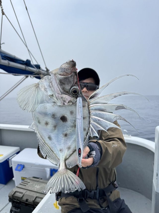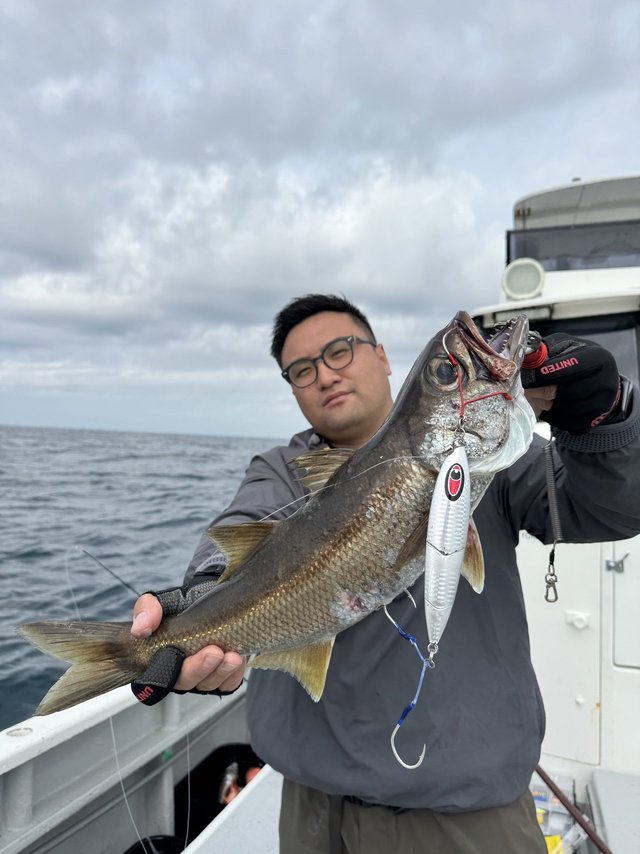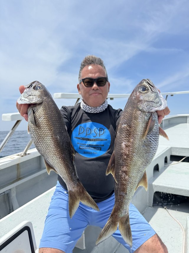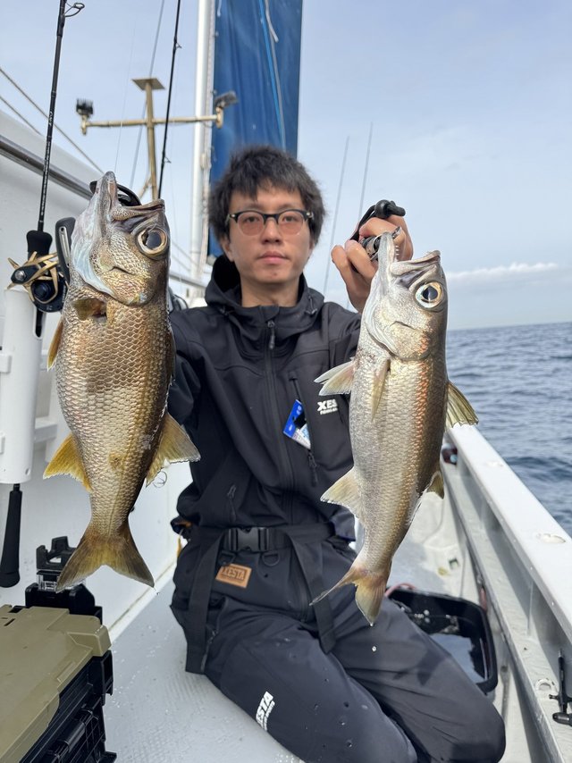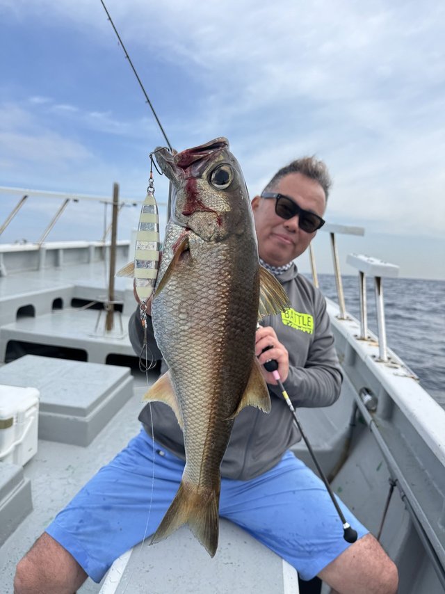 (マエソ)30cm 合計1匹 5/17午前スロージギング船 朝はベタ凪で沖のポイント広範囲に 回ってみました! ベイトの反応よく見れましたが 二枚潮で釣りづらくアタリが少なめでした 天気悪い中最後までありがとうございました! また良い流れに期待して頑張ります! 明日18日は予報悪くお休みします。 19日よりご予約お待ちしておりまーす!