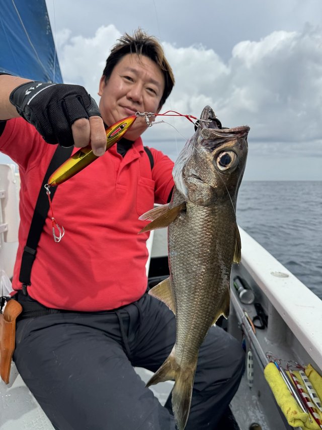 (マエソ)30cm 合計1匹 5/16午前スロージギング船 今日もベタ凪で出船できました! 今日も魚種多彩にヒットありながら メタボリックマハタ8.1キロ浮上! 5キロオーバーも! イシナギもヒットしましたがバラシでした サイズ良さそうでしたね 明日からも色々狙って行きましょう!