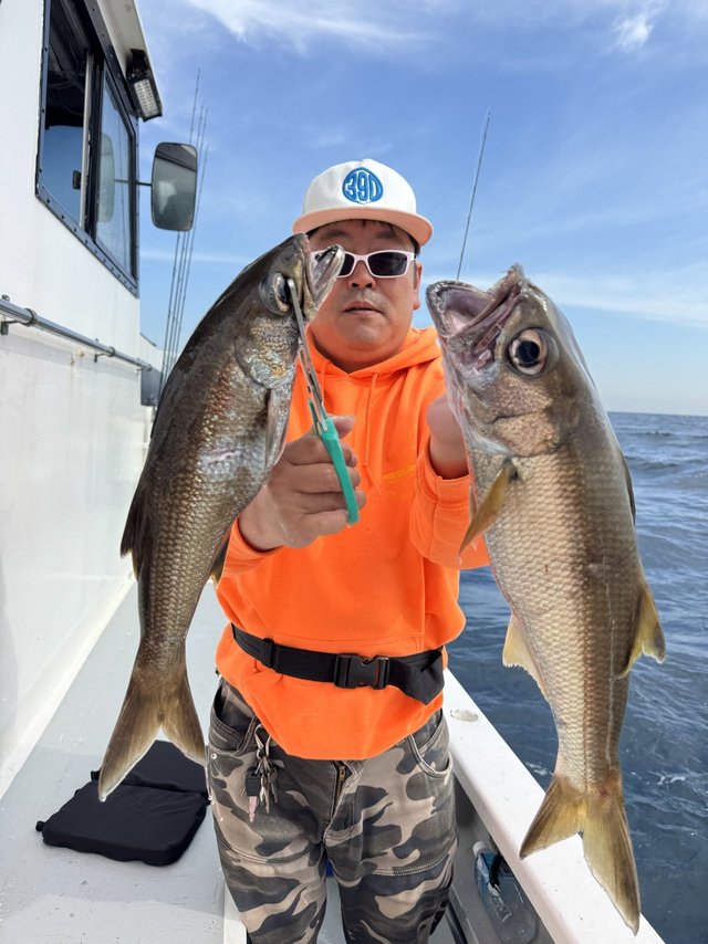(マエソ)30cm 合計1匹 5/16LJタイラバ船 本日はキャンセルもあり寂しくも2名様での出船でした! 朝イチから青物の群れに当たり バタバタとヒットヒットーの絶好調! 良い方で10本以上キャッチでした! 明日からも色々狙って行きましょー!