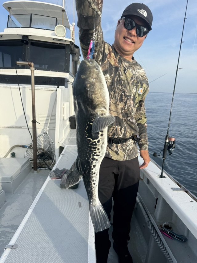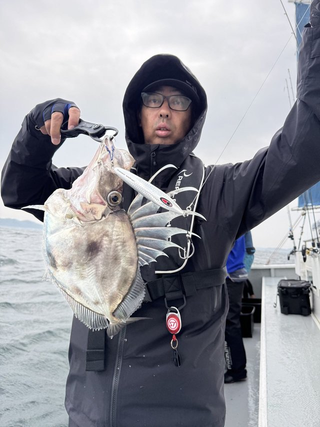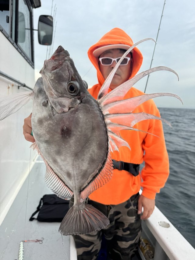 (マエソ)30cm 合計1匹 5/13午前スロージギング船 張り切って行ってきました! 潮の流れ良くアタリ好調でした! デカンコ、デカムツのバリバリタイムや 大型のヒラメも上がり高級ゲスト複数 GETで皆さんクーラーホクホクでした! 明日は定休日でお休みです 15日(木) 近海スロー船空席多数! LJタイラバ船空席多数! ベタ凪予報でご予約お待ちしております!