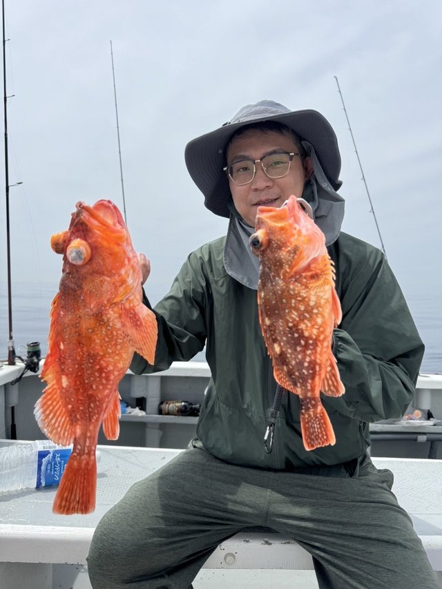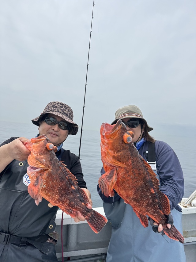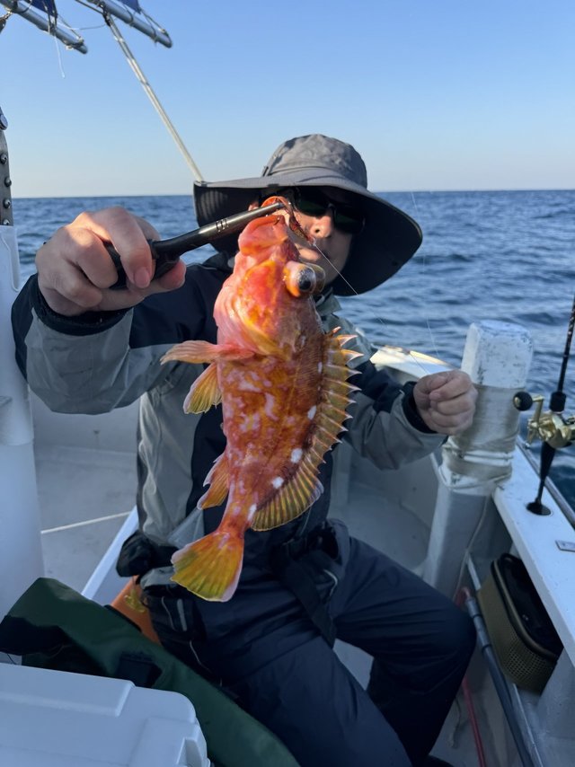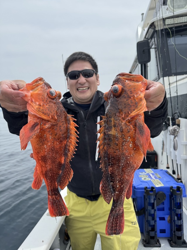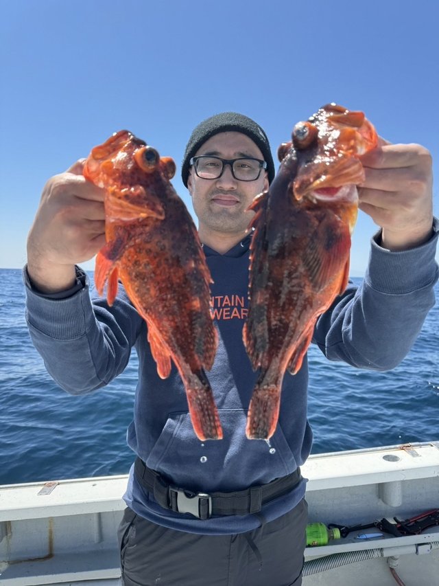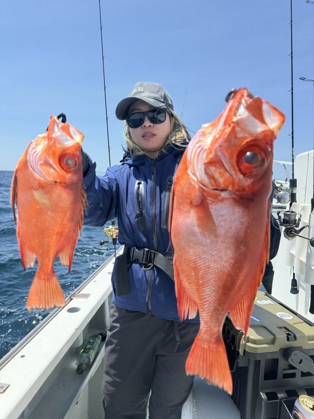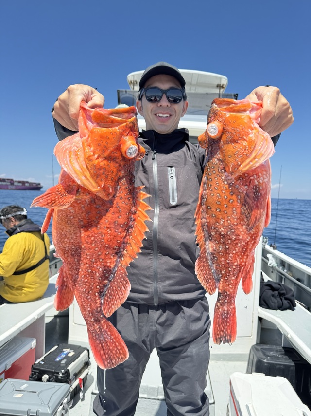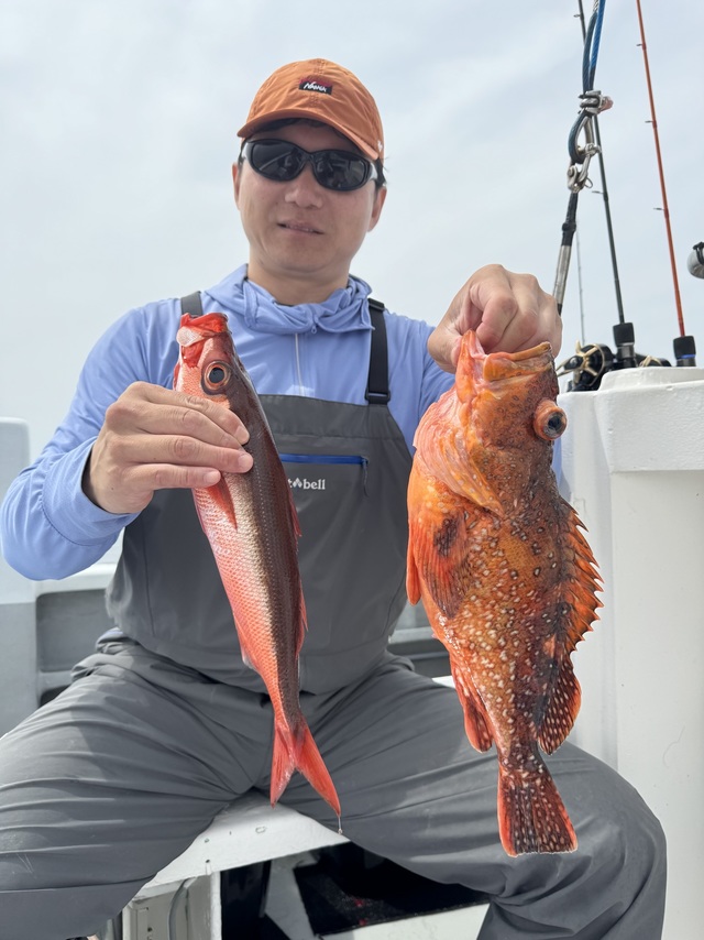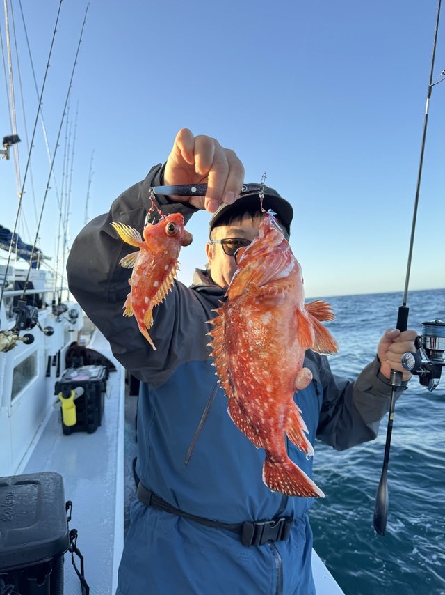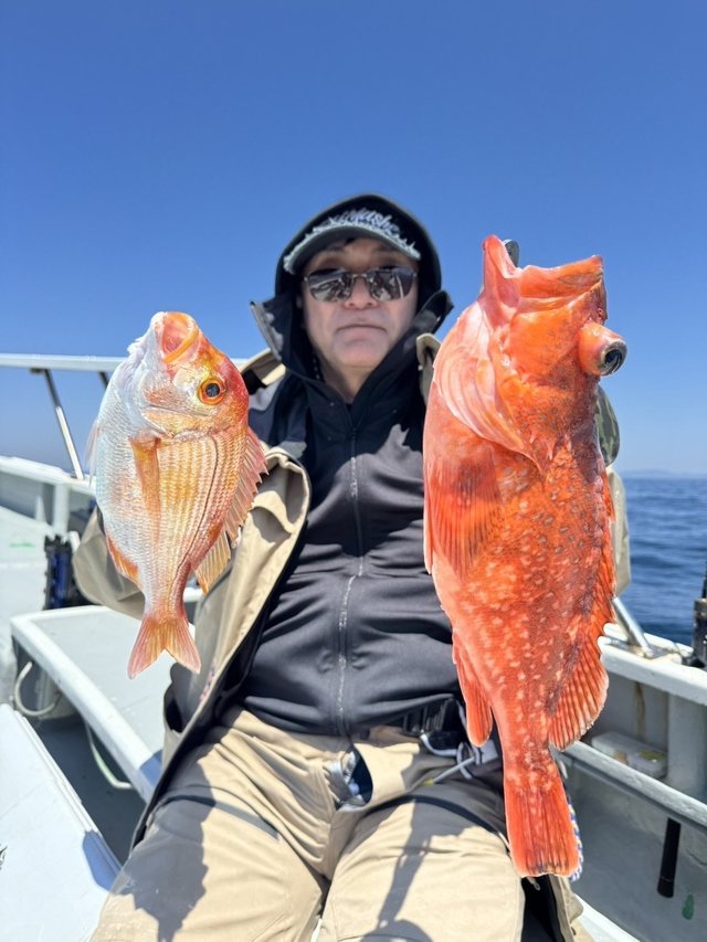 (マエソ)30cm 合計1匹 5/1LJタイラバ船 午前船 凪良く広範囲に捜索! 青物ナブラがあったりと賑やかな感じでしたがアタリは控えめでした! 良いところに当たるとサイズのいい根魚が連発に当たる場面もありでした! ベイトも多く期待していきましょう! 午後船 開始よりアタリ良く底物中心に 喰い活発でした!ビギナー様も 魚種多彩にキャッチで楽しめました! 明日5月2日は休船します! 5月3日(土) 午前LJタイラバ船受付終了 午後中深海ジギング船空席多数 5月4日(日) 午前LJタイラバ船1名様空きでました 午前近海スロー船受付終了 5月5日(月) 午前近海スロー船受付終了 午前LJタイラバ船受付終了 5月6日(火) 午前LJタイラバ船空席多数 午前近海スロー船空席多数