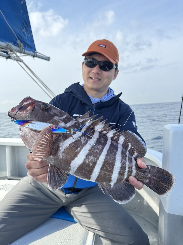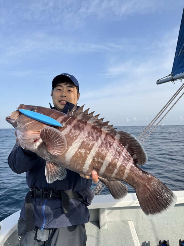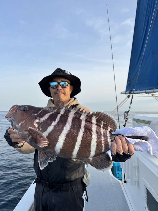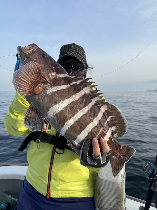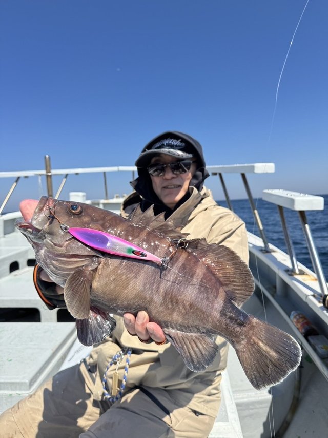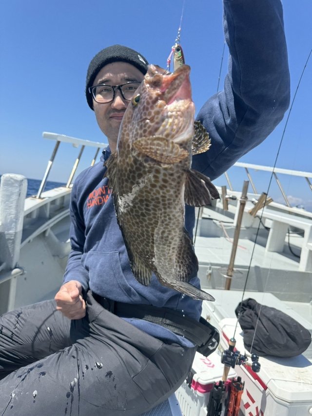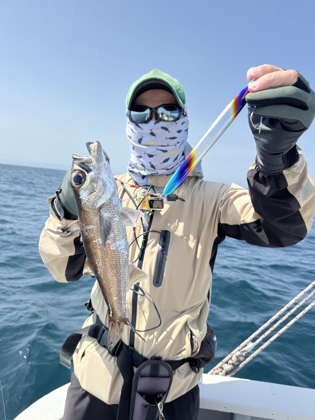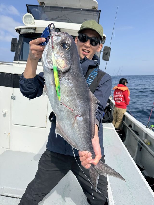(マエソ)30cm 合計1匹 5/1午前スロージギング船 凪良く出船できました! 今日もイシナギ浮上ーー! 2ヒット1キャッチ! 潮緩く釣りやすい潮で魚種多彩に ヒットしてくれました! 他にもマハタや良型のバラシも数回あり! 次回もいい潮に期待して色々狙って いきましょう! 明日5月2日は休船します! 5月3日(土) 午前LJタイラバ船受付終了 午後中深海ジギング船空席多数 5月4日(日) 午前LJタイラバ船1名様空きでました 午前近海スロー船受付終了 5月5日(月) 午前近海スロー船受付終了 午前LJタイラバ船受付終了 5月6日(火) 午前LJタイラバ船空席多数 午前近海スロー船空席多数