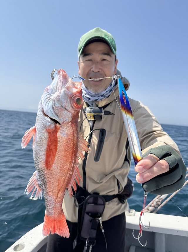 (マエソ)30cm 合計1匹 5/3午前SLJ~LJ~タイラバ船 今日は2隻で行ってきました! 根魚アタリ良い時間あり アヤメ、カンコ、オニ、メバル、 キントキ、マハタなど パタパタと上がる流しもありました! ワラサのナブラも出ましたが一瞬でした 青物も回遊中なので期待していきましょう! 明日5月4日は休船します 5月5日(月) 午前近海スロー船受付終了 午前LJタイラバ船受付終了 午後中深海ジギング船空席多数 午後ジギングタイラバ船空席多数 5月6日(火) 午前LJタイラバ船空席多数 午前近海スロー船空席多数 午後中深海ジギング船空席多数