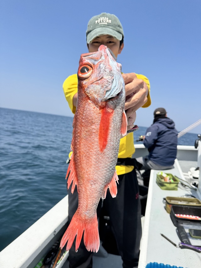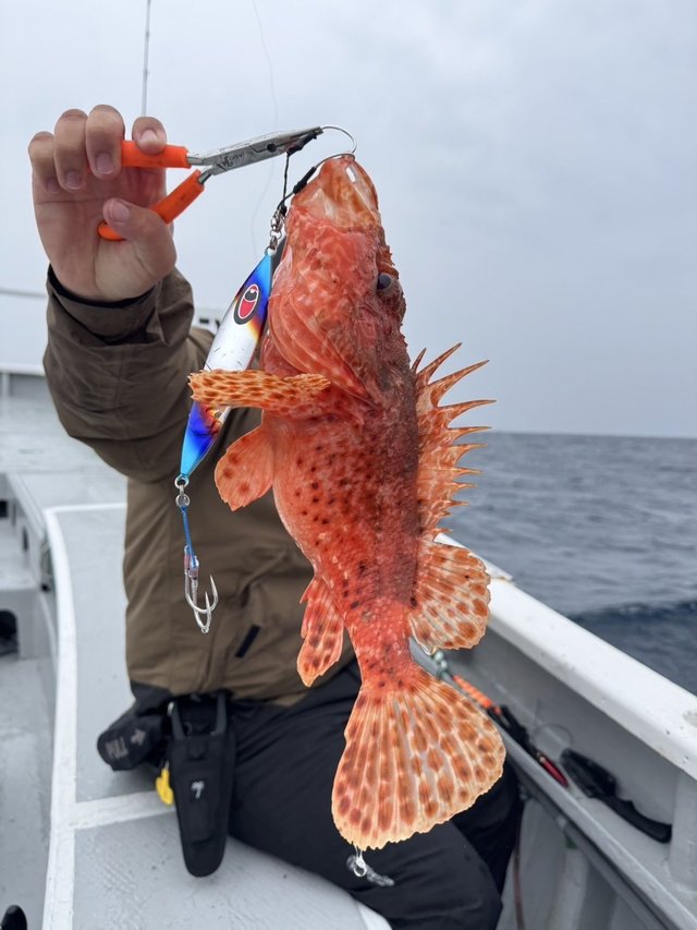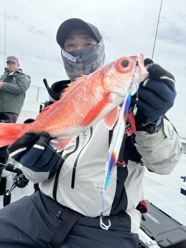 (マエソ)30cm 合計1匹 4/17午前中深海ジギング船 久しぶりの出船でした! 終始アタリはポツポツ出てくれました! 良型アカムツ浮上ーー!! メヌケのアタリも数回出ましたが バラシ多くなんとか一本キャッチ! これからも期待していきましょう!