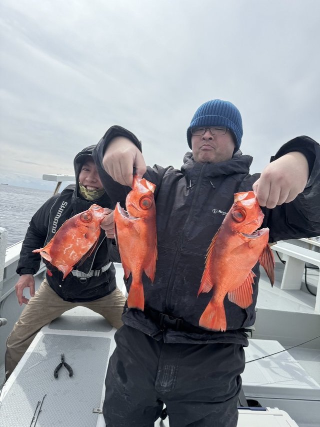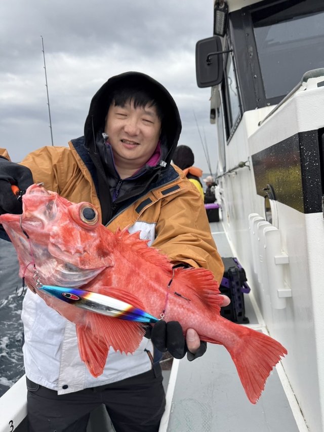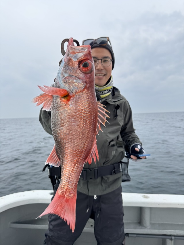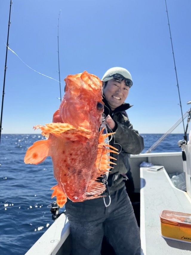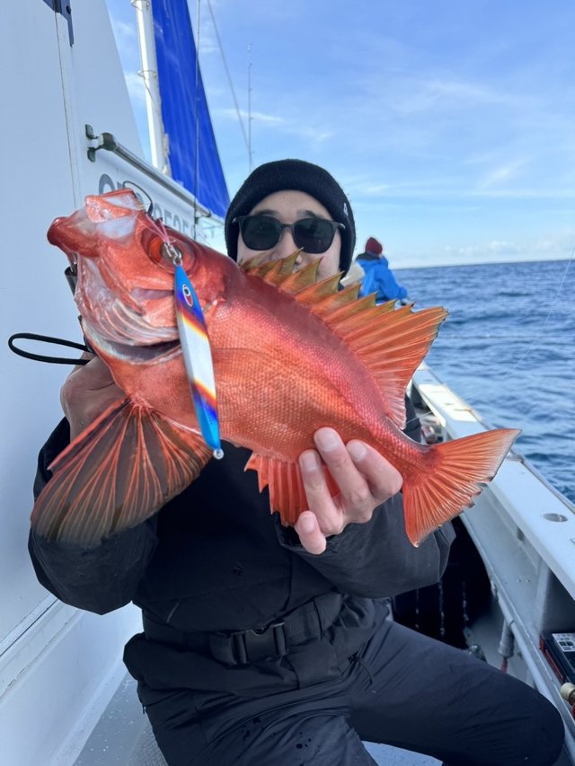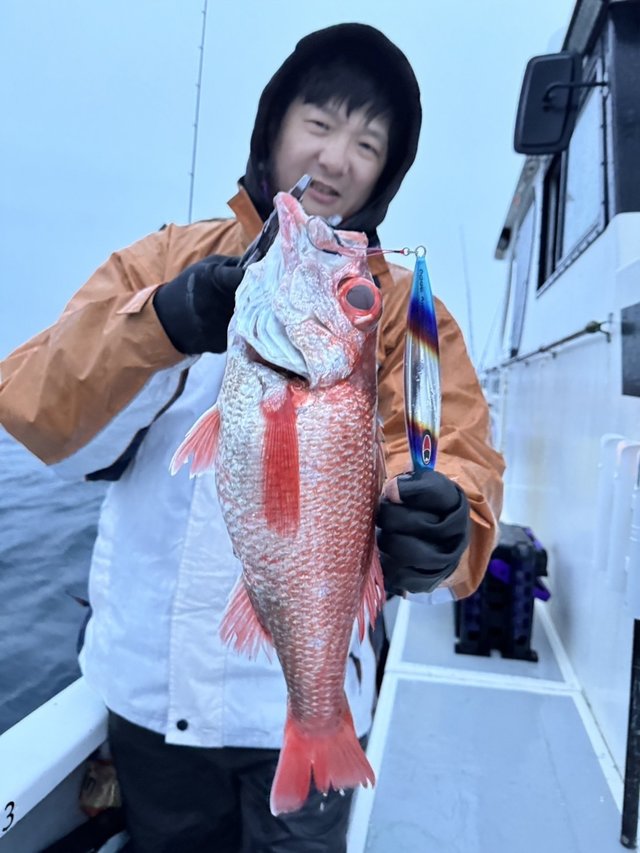 (マエソ)30cm 合計1匹 3/24午前中深海ジギング船 シケ明けベタ凪の海へ出船できました! 単発のヒットでしたが今日は 赤いのが浮上ーー!! アカムツもメヌケもgoodサイズでした! 明日からも期待していきましょう!