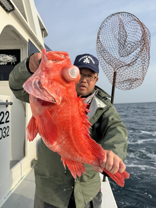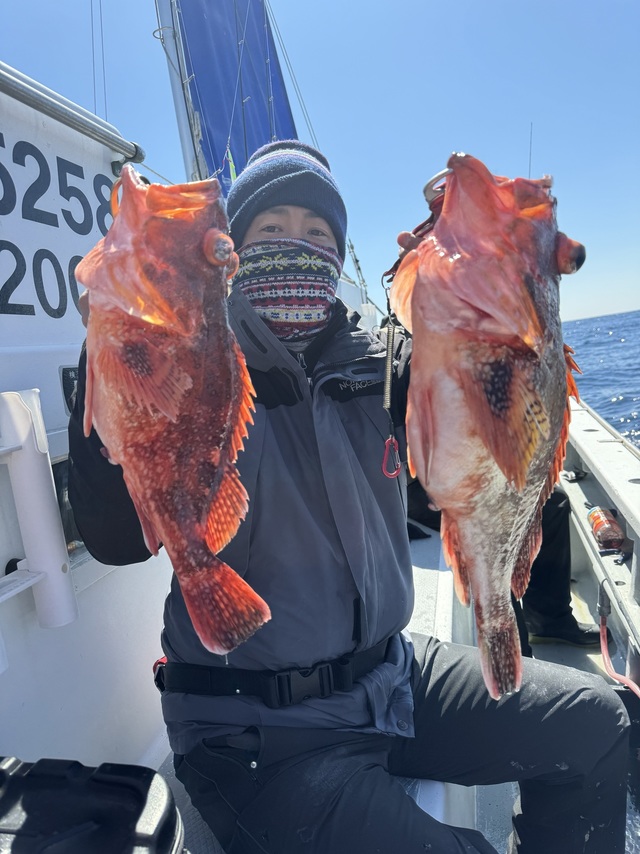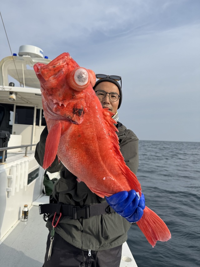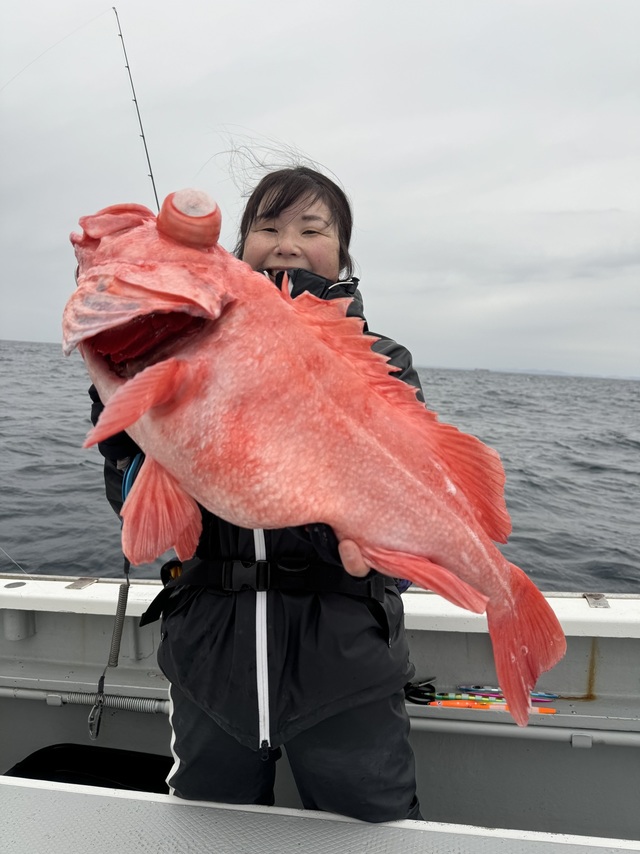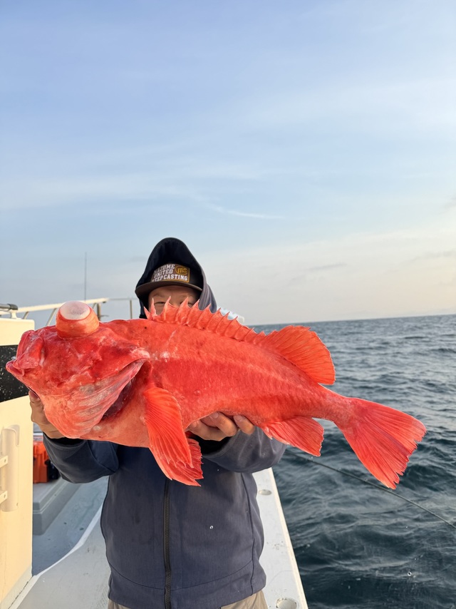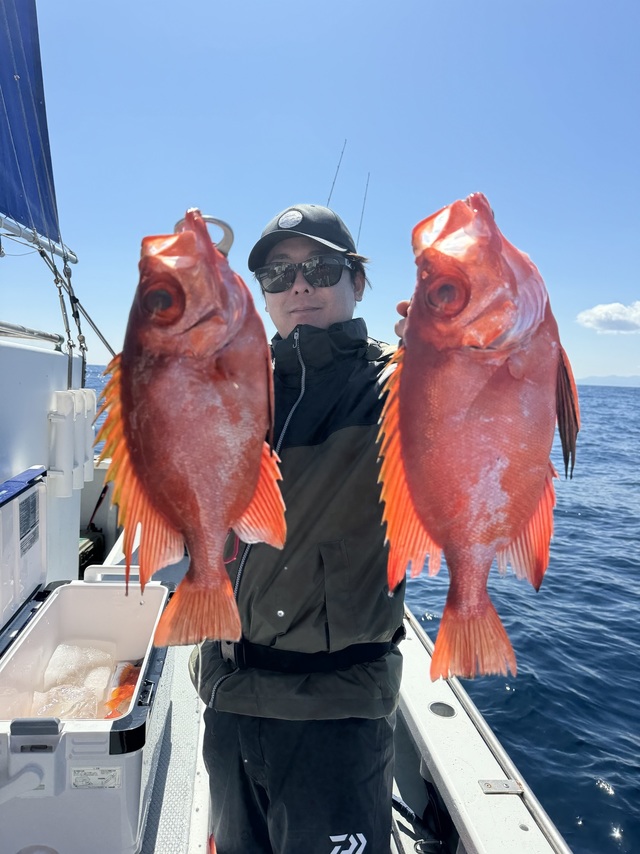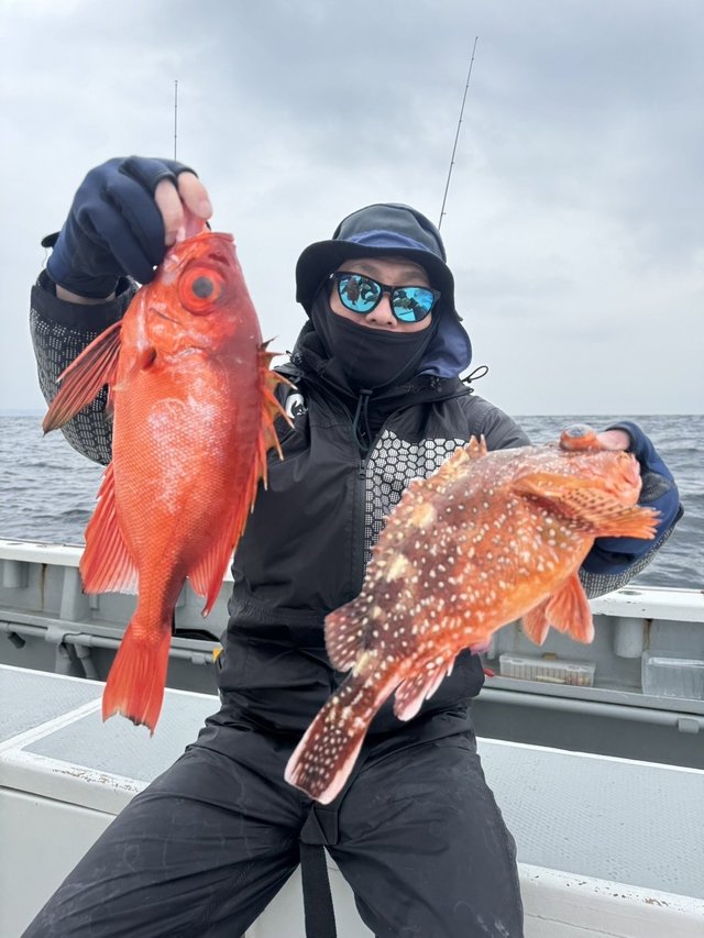 (マエソ)30cm 合計1匹 3/24午前中深海ジギング船 シケ明けベタ凪の海へ出船できました! 単発のヒットでしたが今日は 赤いのが浮上ーー!! アカムツもメヌケもgoodサイズでした! 明日からも期待していきましょう!