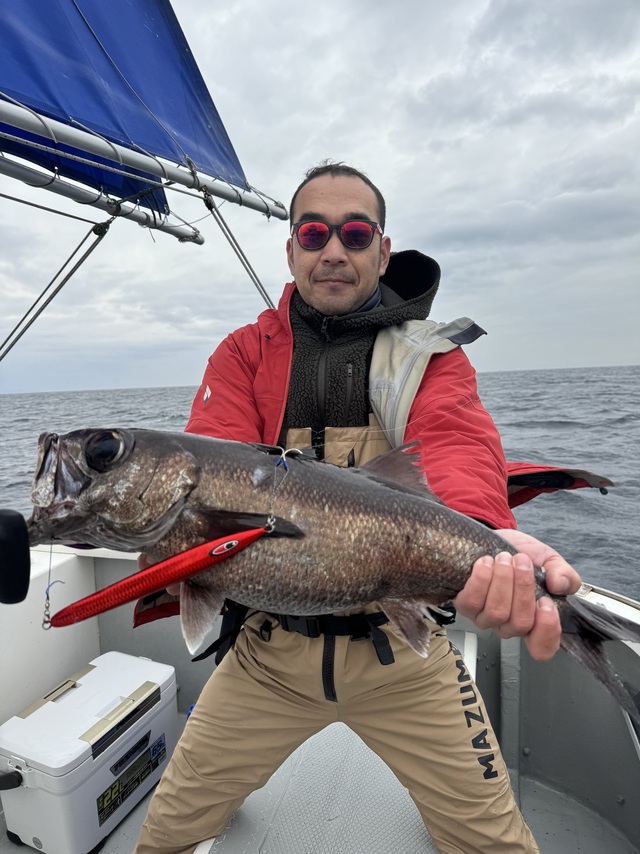 (マエソ)40cm 合計1匹 シケでお休み中ですが 明日24日(月)は良い凪になりそうです 中深海便 LJ~タイラバ便 出船確定!ガラガラです! お待ちしてます!