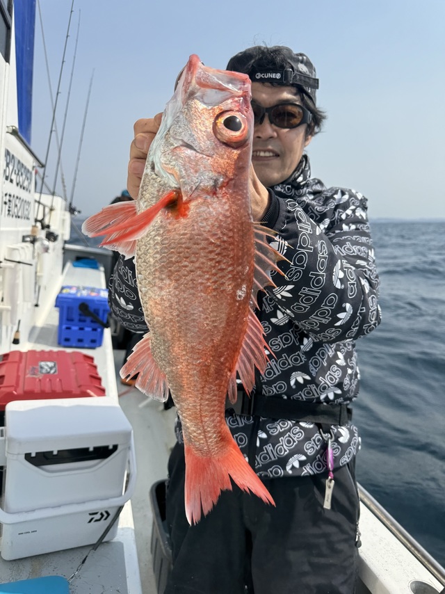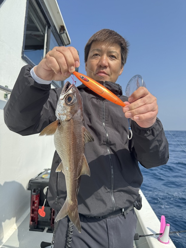 (マエソ)35cm 合計1匹 3/25中深海ジギング船 凪で暖かく釣り日和になりました! 開始からゲストは多彩でアタリは 続いてましたがピアやギスの 攻撃が激しめ! 数回怪しいアタリありましたが 途中で外れてしまいました(TT) 後半最近では少し浅めに移動して 1キロ良型のアカムツGETーー!! もう少し潮の流れがあると 盛り上がりそうですが!! ジグは250~400g位でご準備ください 明日は定休日になります 27日(木)は凪予報!お待ちしてます!