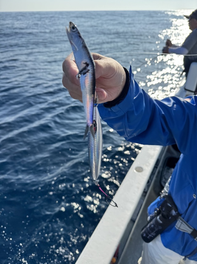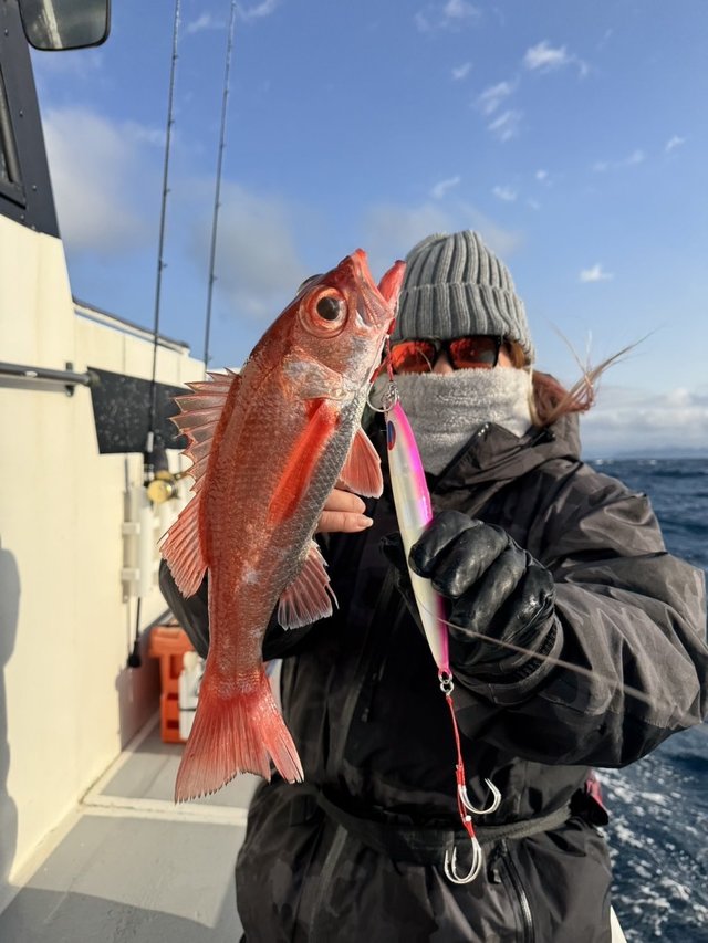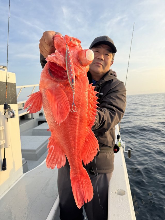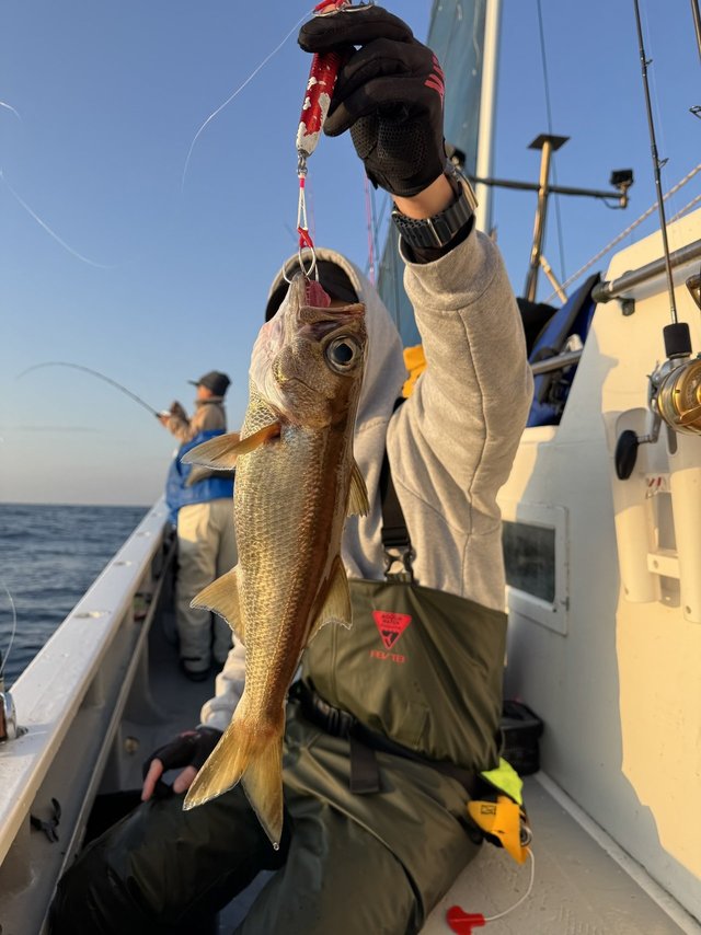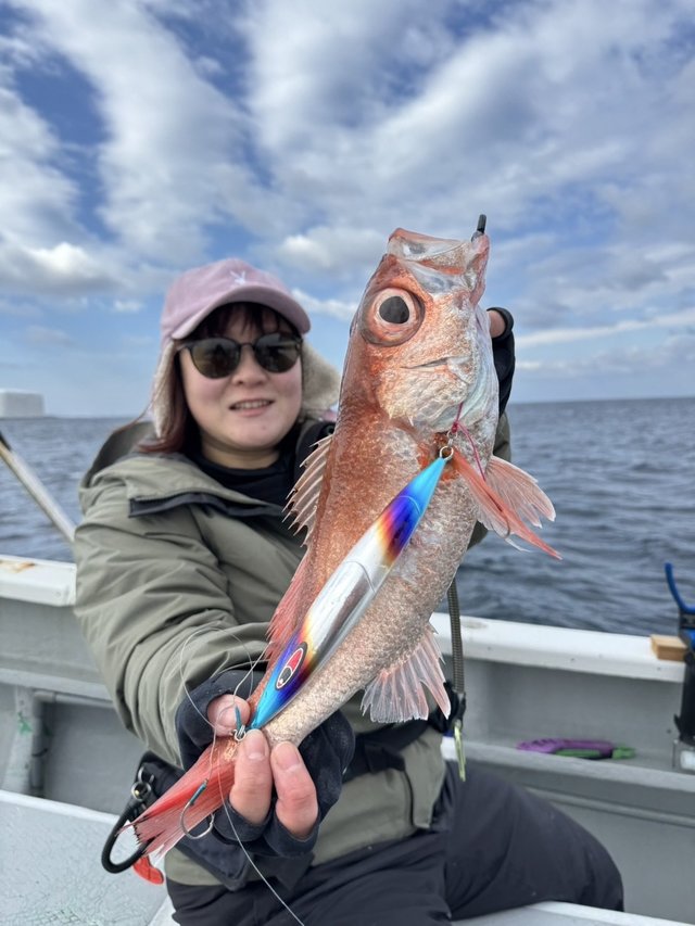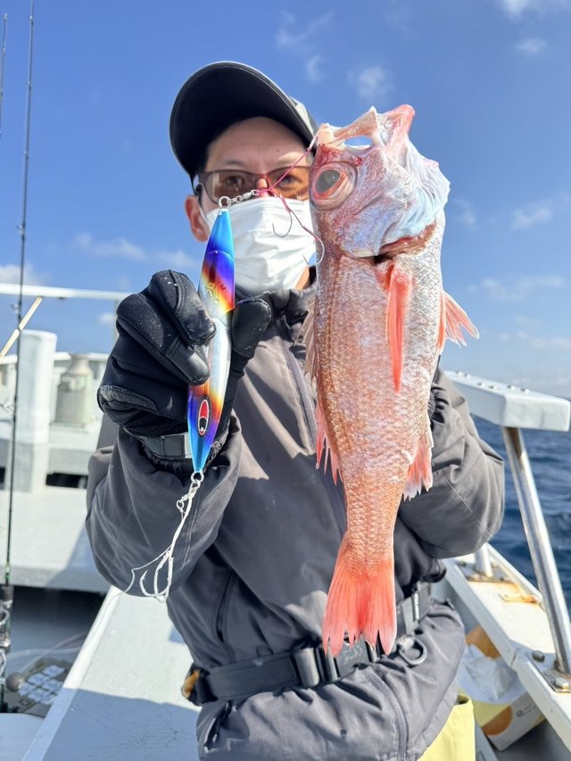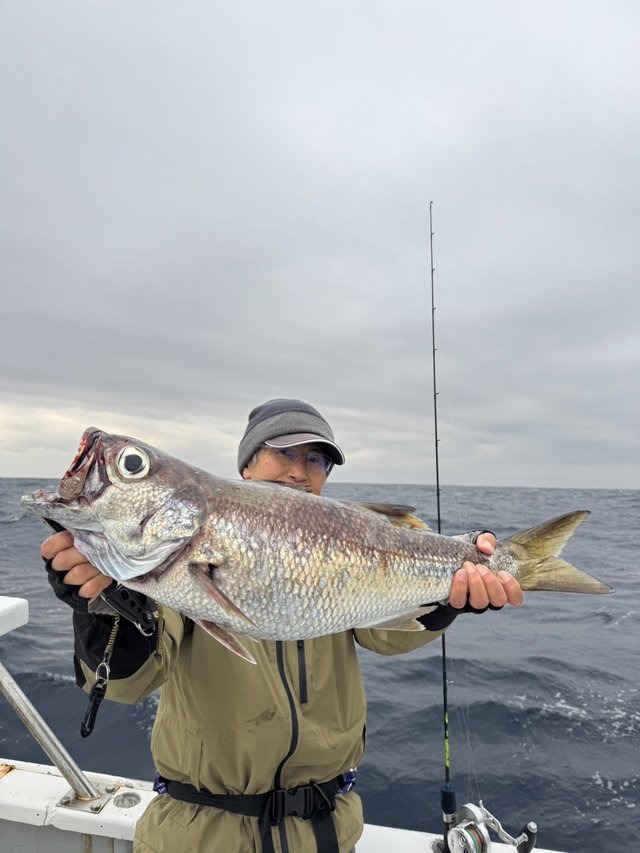 (マエソ)30cm 合計1匹 3/10午前スロージギング船 前半は予報と違い風が強めで 潮も昨日までと真逆の潮が速めでした! どのポイントでもウッカリは今日もよく顔見せてアタリは続いていました! 潮変わりのタイミングで 大型メダイにマダイもGET!! 他にも重量感あるバラシありでした! 明日からも良い流れに期待していきましょう! 明日は 近海スロー船 中深海ジギング船 で出船!!