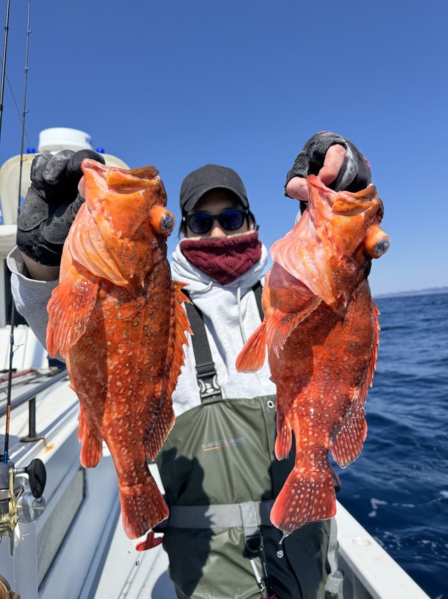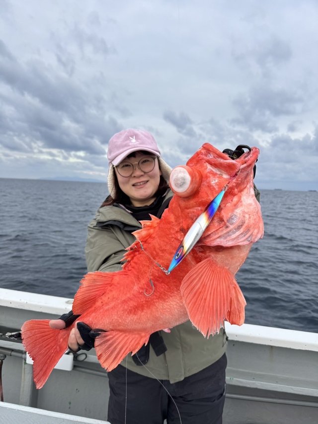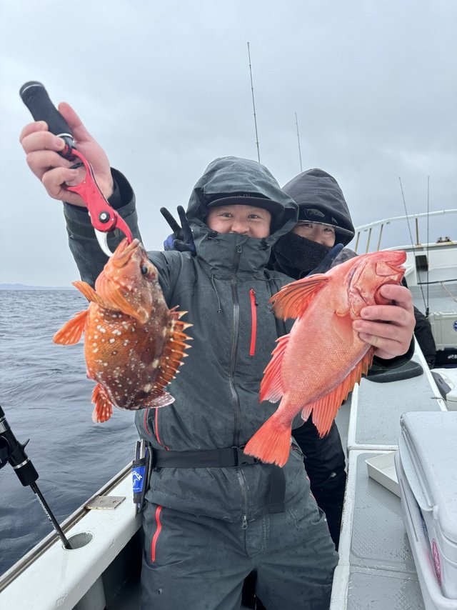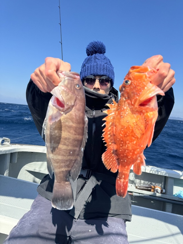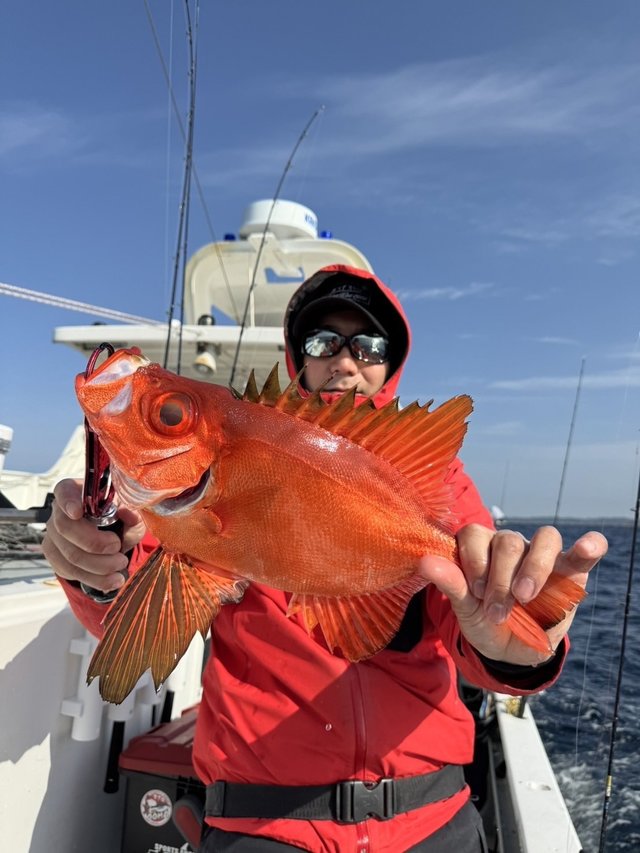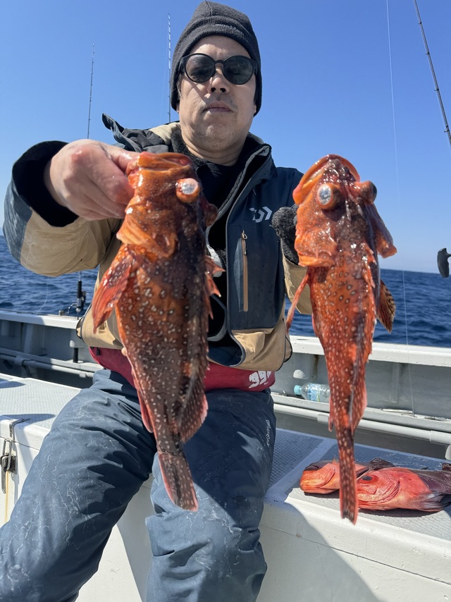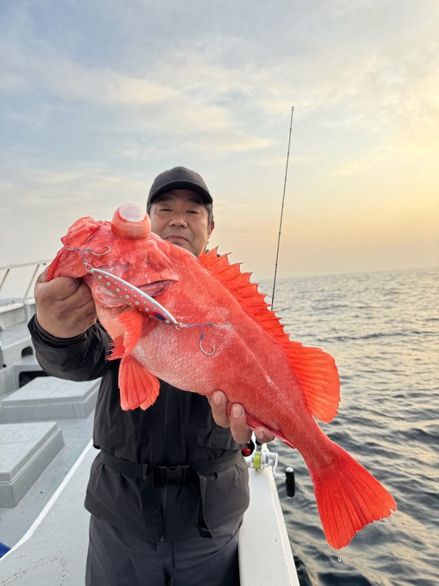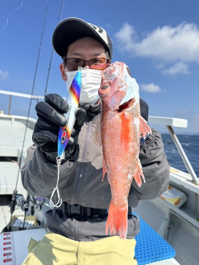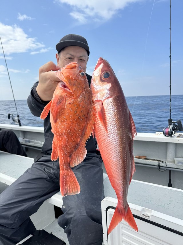 (マエソ)40cm 合計1匹 3/13午前中深海ジギング船 定休日明け ベタ凪快晴の釣り日和になりました! 2名様で出船しました! 釣りやすい潮でアタリ多くあり バラシもありながら 良型アコウにアカムツ浮上ーー!! バッチリ楽しんでいただけました! これからも期待していきましょう! 15日(土)午後中深海ジギング募集中です!