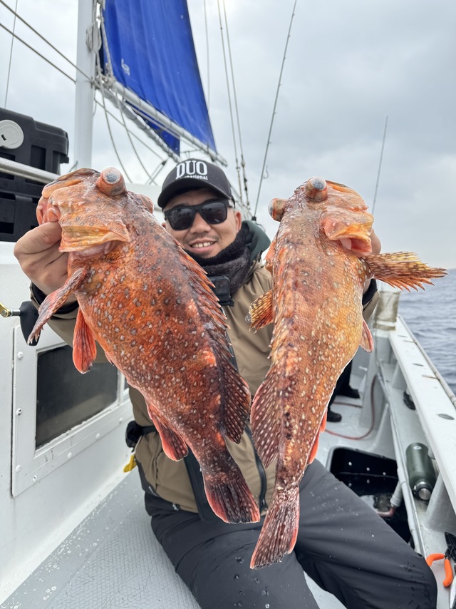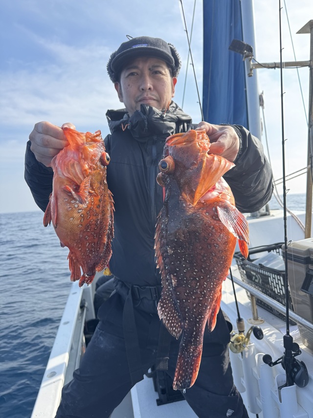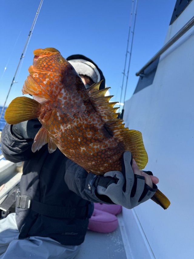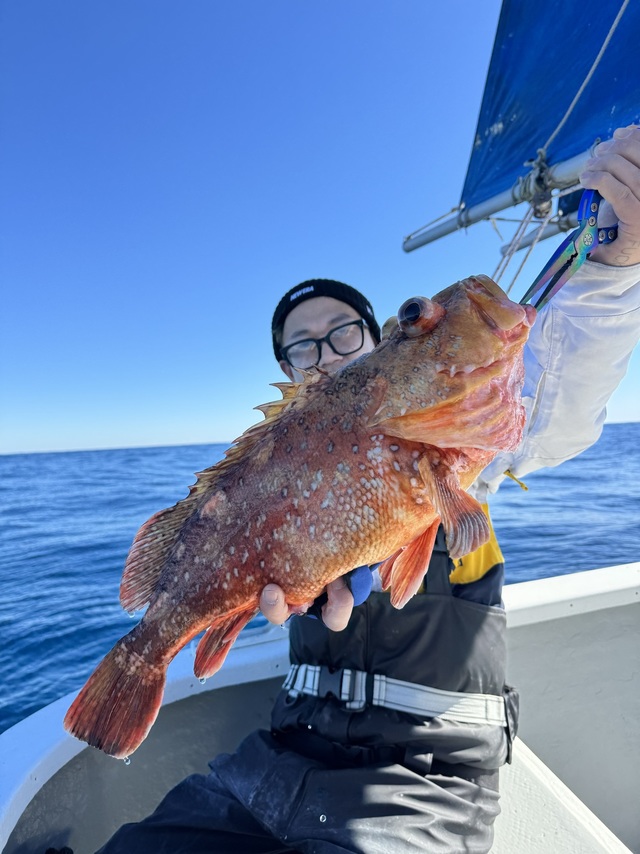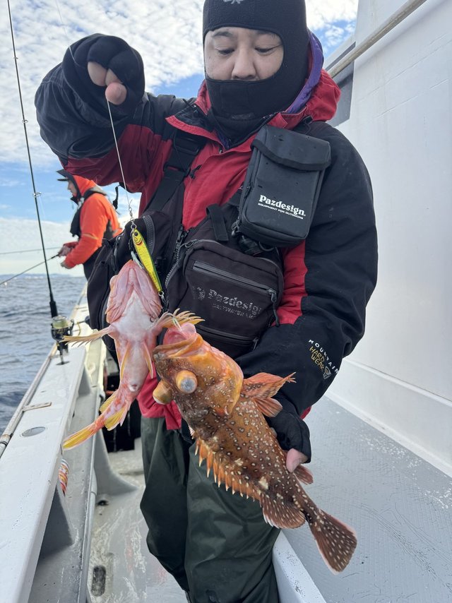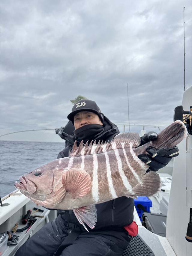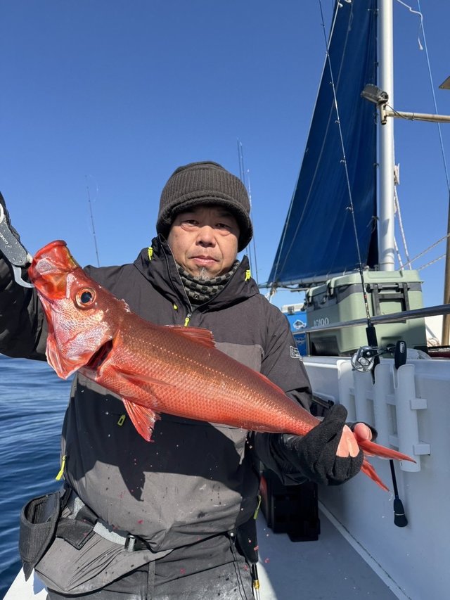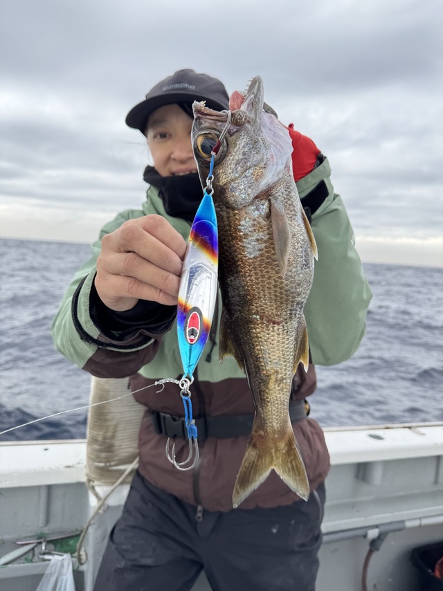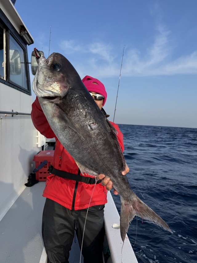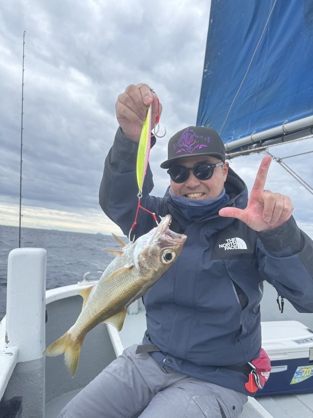(マエソ)35cm 合計1匹 2/3午前スロージギング船 今日は終始釣りやすい潮で アタリ活発に! カンコの良型がパクパクと合間で 丸っとしたマハタやメダイ、ムツなど GETでした!! 明日からしばらくシケが続きそう~ 次回出船時より集合時間変更します 午前船5時30分 午後船13時30分 になります。宜しくお願い致します!