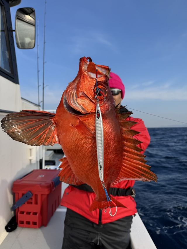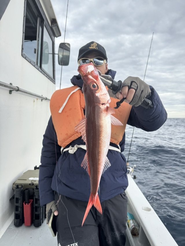 (マエソ)35cm 合計1匹 1/31スロージギング船 今日は天候回復し釣り日和に! 活性が高い感じでは無かったけど ウッカリ、キントキ、ハチビキなどが ポツリポツリとヒットしてくれました 正体不明の大型バラシが2回有りでした ! 明日も出船確定! 色々狙って行きましょうー!
