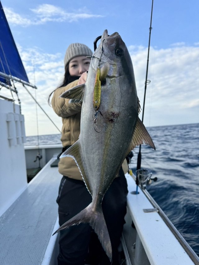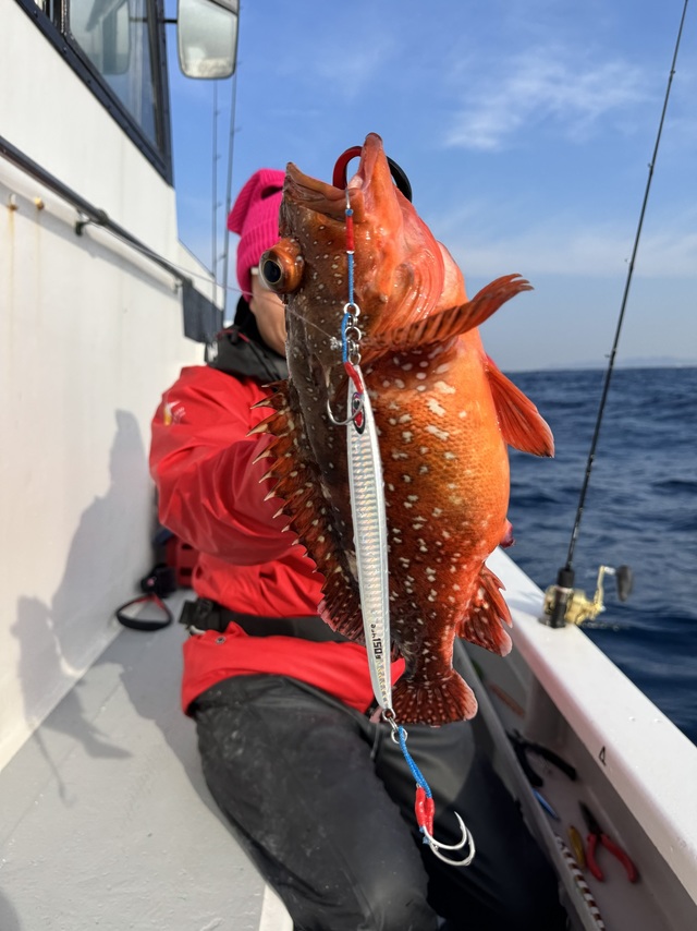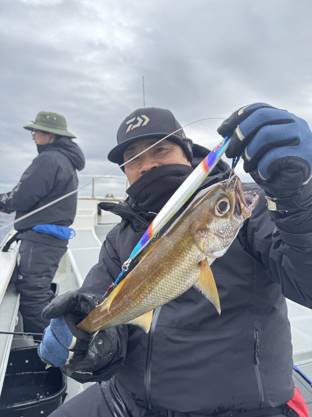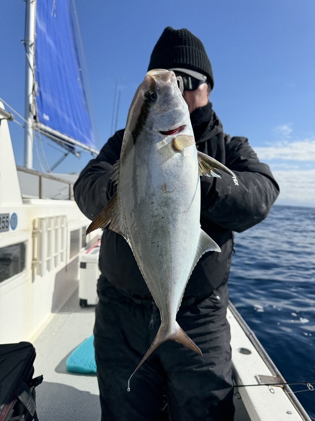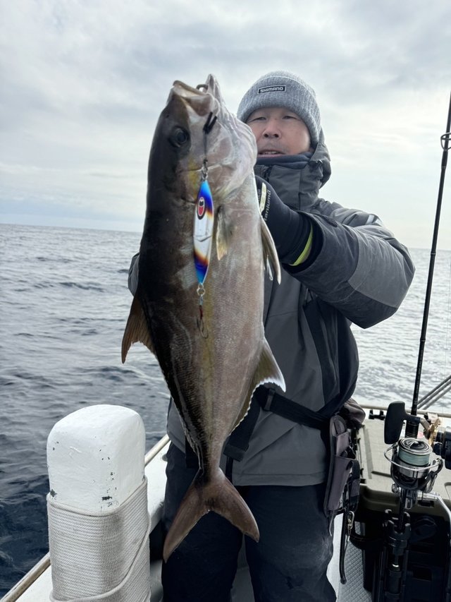 (マエソ)30cm 合計1匹 2/1午前スロージギング船 潮目悪く二枚潮であちこちと 走り回りましたが カンコや、アヤメがポツリポツリと マハタらしき良型ヒットも一回 ありましたが惜しくもバラシでした! いい潮流れに期待しましょう! 明日は天候と道路状況を考慮して 出船中止にしました 3日(月) スロージギング船募集中です!