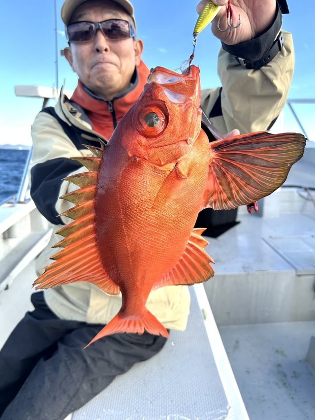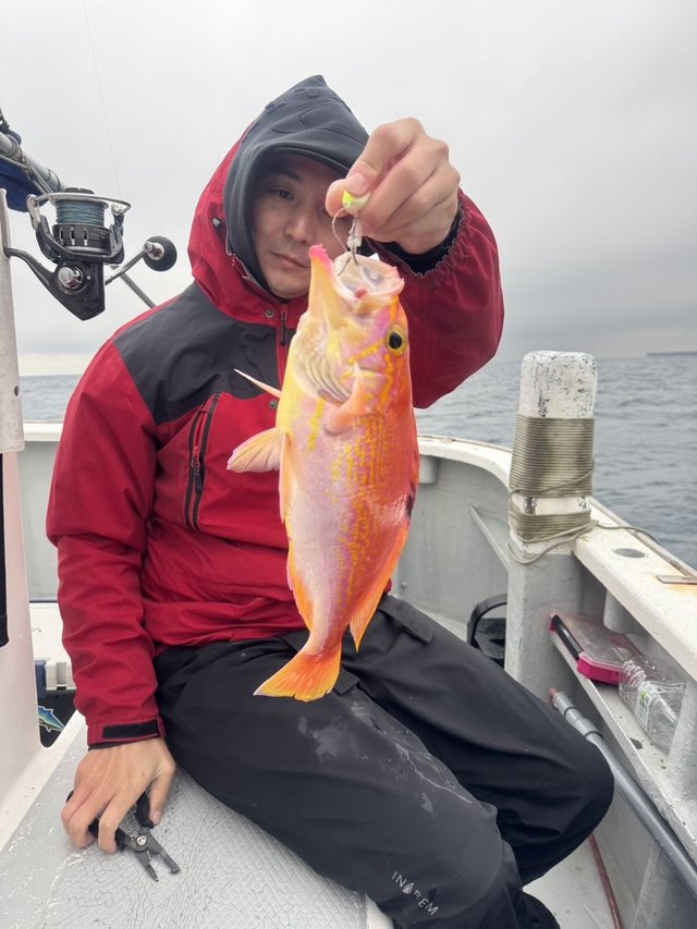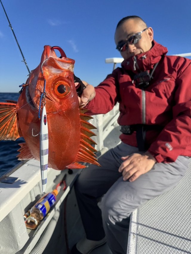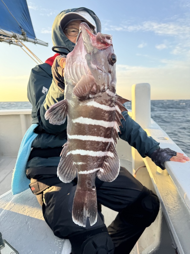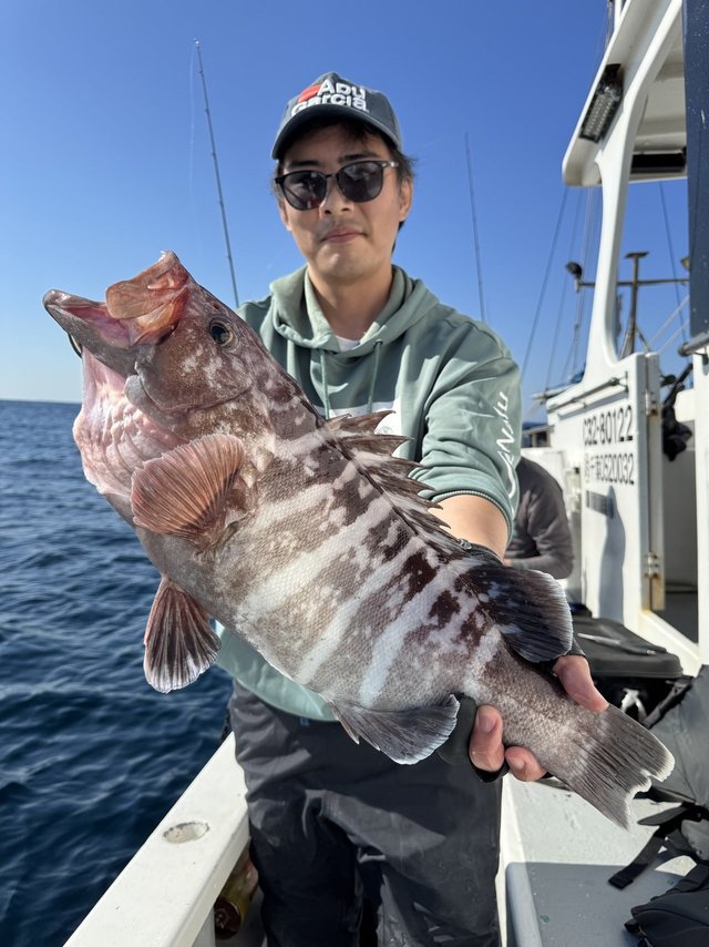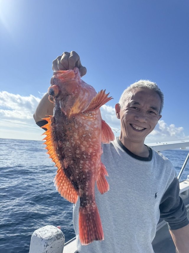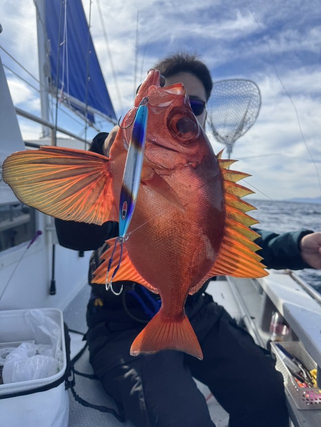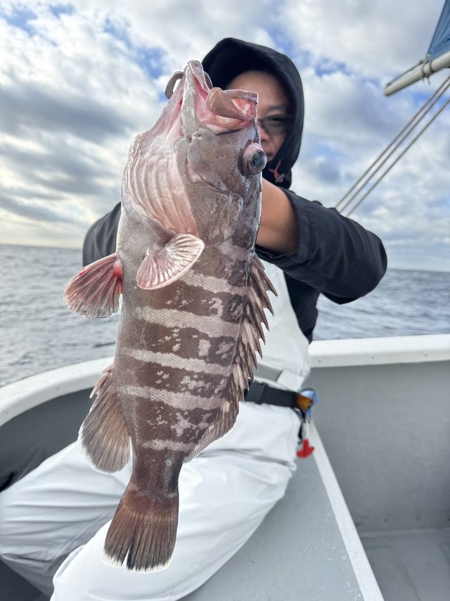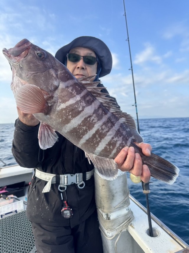 (マエソ)30cm 合計1匹 11/10午前近海スロー船 ベタ凪で出船できました! 潮の流れなくポイント転々と回って ハチビキラッシュがありながら メダイ、カンコ、オニ、アヤメ、メバル、 マトウダイ、キントキなどキャッチ! ハタらしきアタリ2回ありましたがバラシでした! 一隻はオニ、カンコ狙いのチャーター船で喰い活発で良型多数でバッチリでした デカイの狙っていきますよ~!