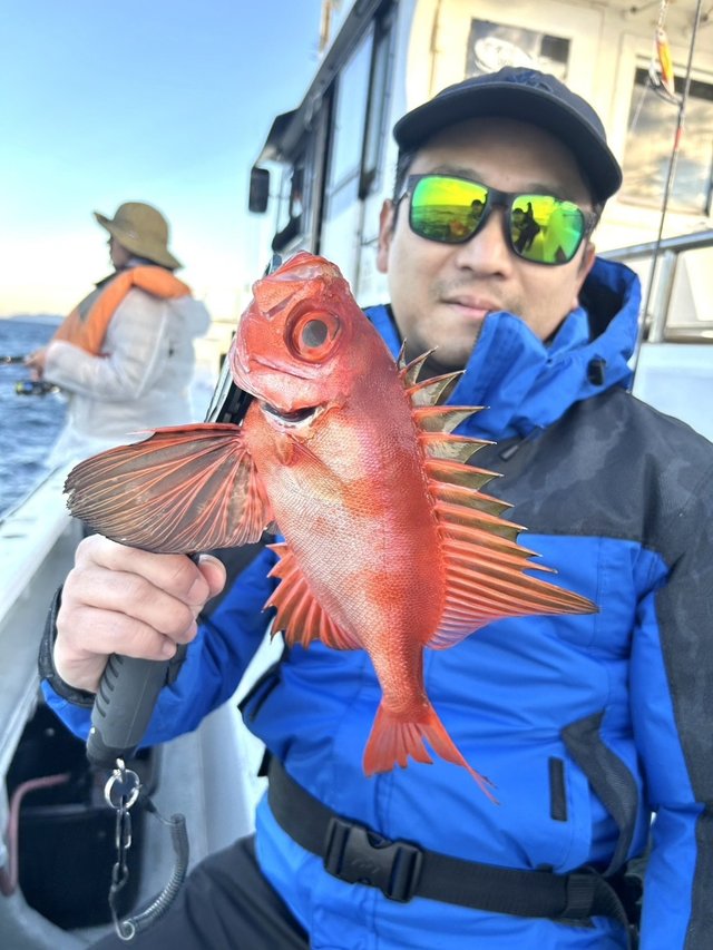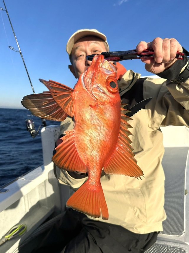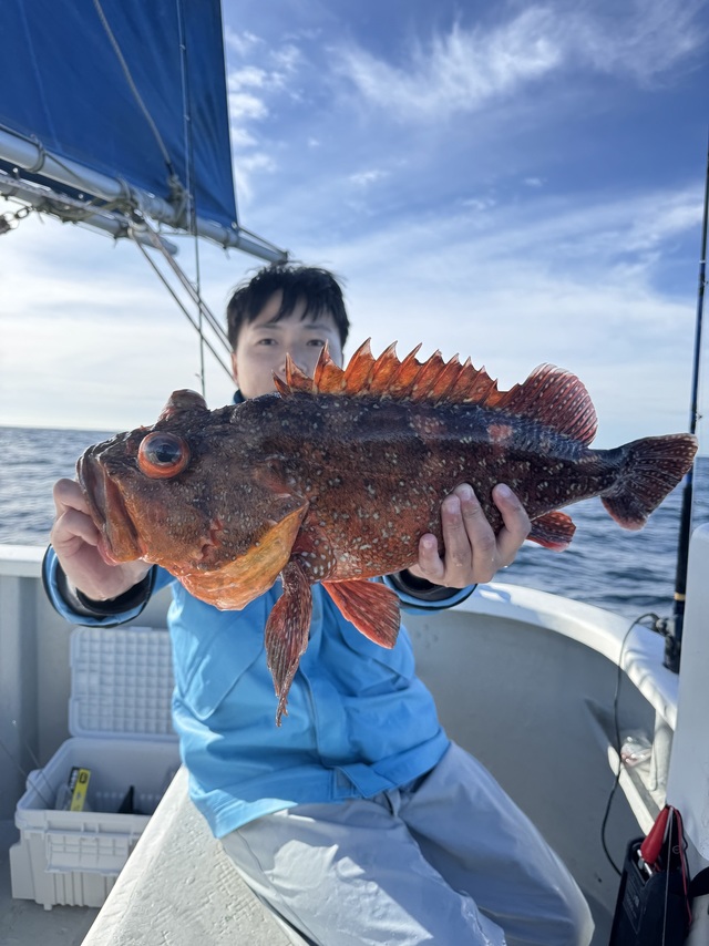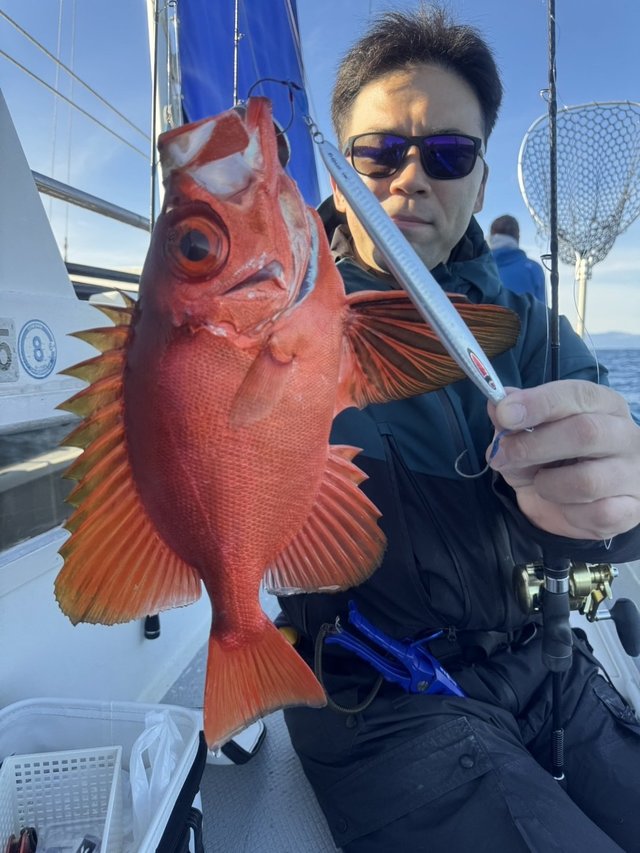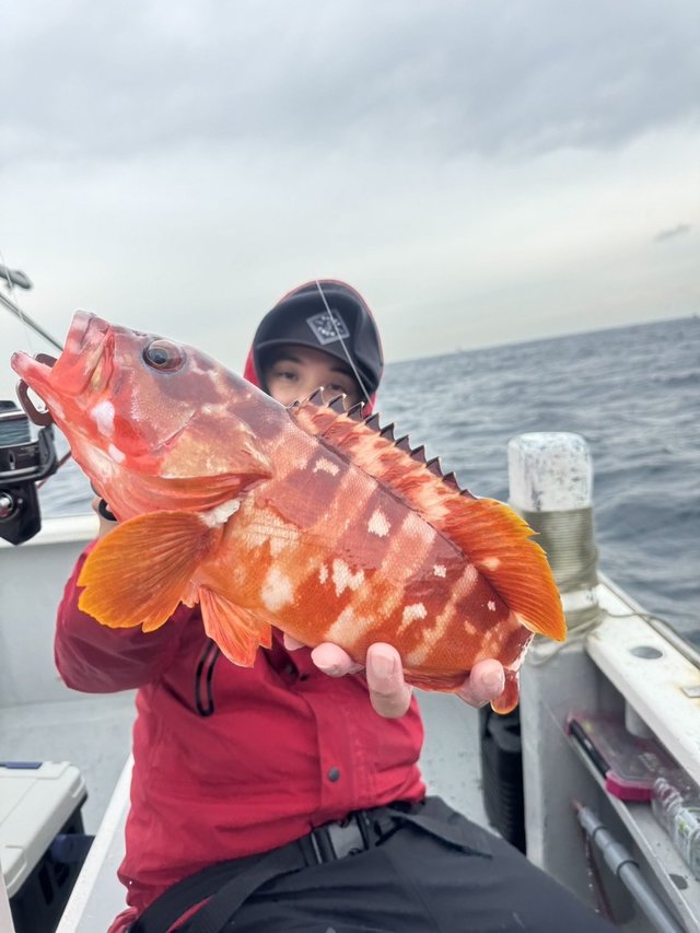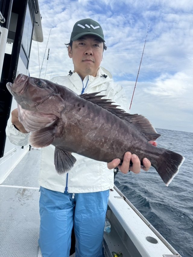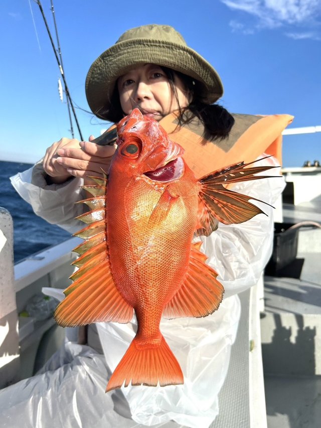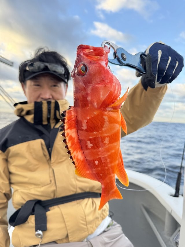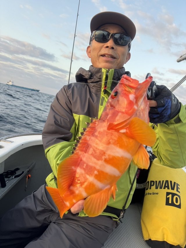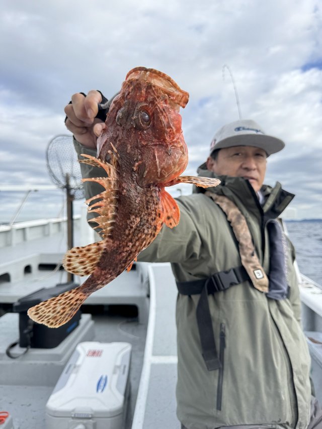 (マエソ)30cm 合計1匹 11/10午前近海スロー船 ベタ凪で出船できました! 潮の流れなくポイント転々と回って ハチビキラッシュがありながら メダイ、カンコ、オニ、アヤメ、メバル、 マトウダイ、キントキなどキャッチ! ハタらしきアタリ2回ありましたがバラシでした! 一隻はオニ、カンコ狙いのチャーター船で喰い活発で良型多数でバッチリでした デカイの狙っていきますよ~!