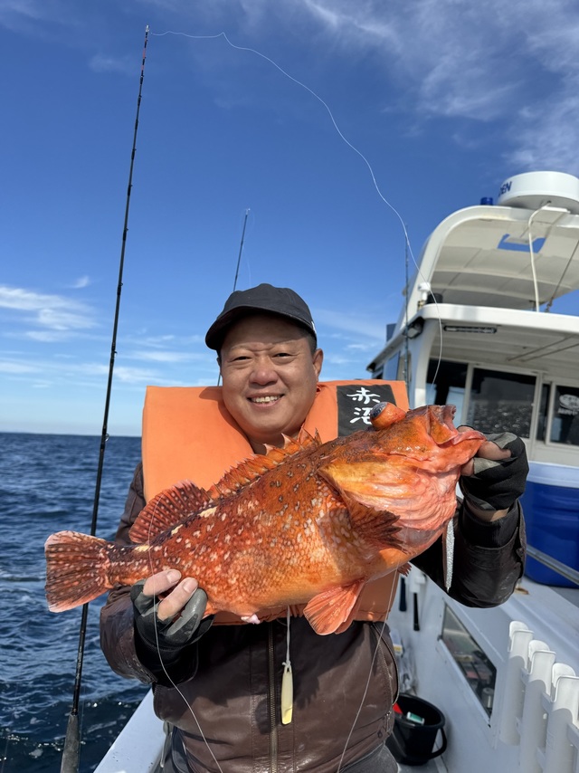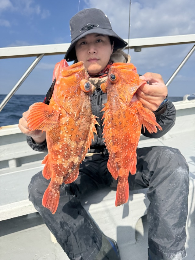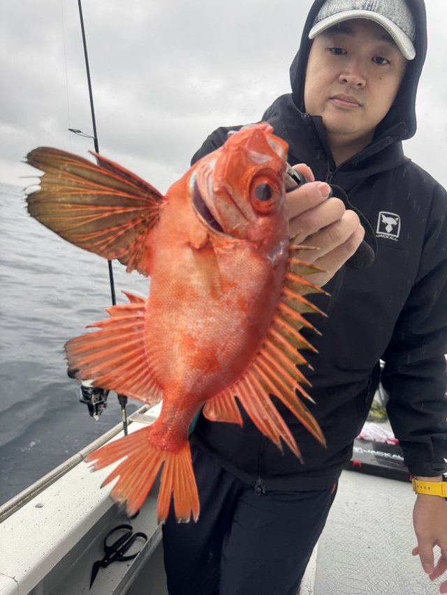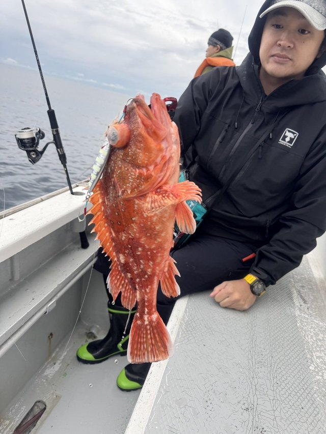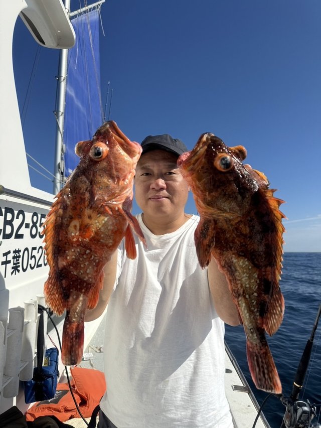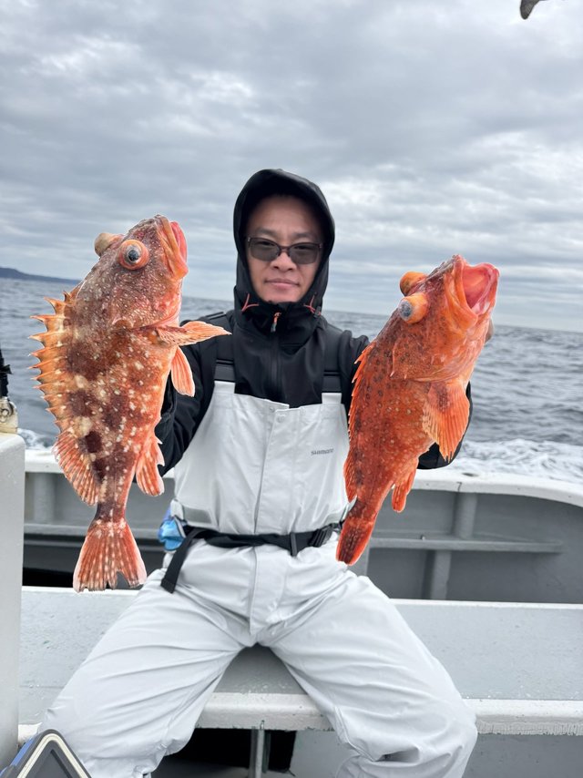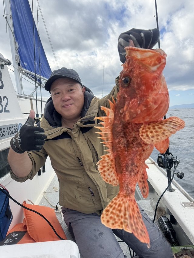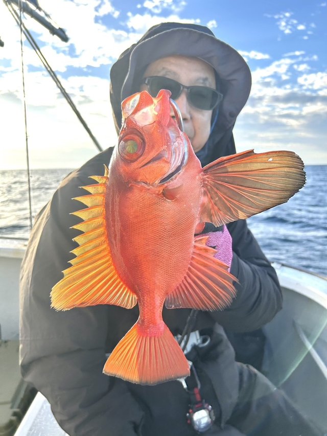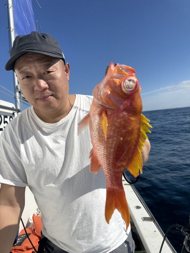 (マエソ)30cm 合計1匹 11/10午前近海スロー船 ベタ凪で出船できました! 潮の流れなくポイント転々と回って ハチビキラッシュがありながら メダイ、カンコ、オニ、アヤメ、メバル、 マトウダイ、キントキなどキャッチ! ハタらしきアタリ2回ありましたがバラシでした! 一隻はオニ、カンコ狙いのチャーター船で喰い活発で良型多数でバッチリでした デカイの狙っていきますよ~!