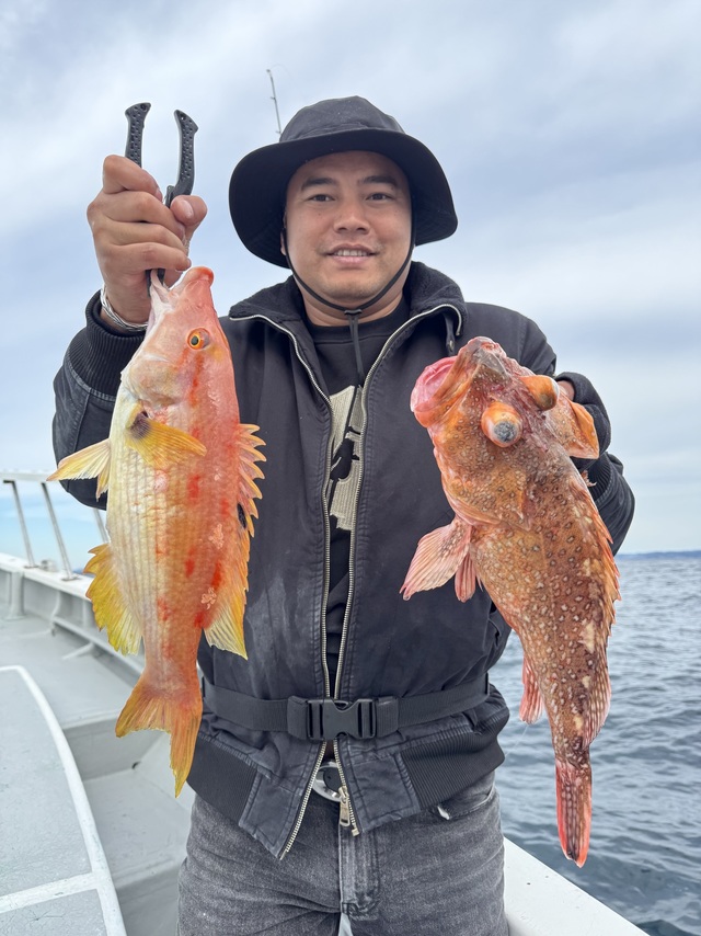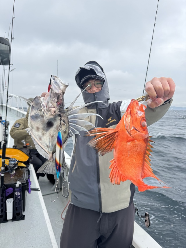 (マエソ)30cm 合計1匹 11/13テンヤルアー船 浅場、深場と転々と周り 大物ヒットこそありませんでしたが 多彩にポツポツとヒットありでした! 明日は更に範囲を広げて 色々狙ってみます! 明日14日(金) 午前テンヤルアー空席多数 午前近海スロー空席多数 午後ティップラン空席多数 15日(土) 午前船満席 午後船満席 16日(日) 午前近海スロー満席 午前テンヤルアー船2名様空き出ました 午後ティップラン空席多数