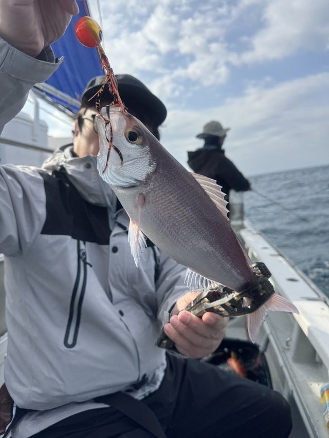 (マエソ)30cm 合計1匹 11/11午前テンヤルアー船 本日はテンヤルアー船のみ出船しました! どのポイントも潮流れず浅場から深場まで 広範囲に移動繰り返してやっていきました! いい反応に当たれて大鯛2匹浮上ー!! マハタやアカハタ、カンコ、アヤメ などポツリとヒットありました! 次回からも色々狙っていきましょう! 明日(水)は定休日です